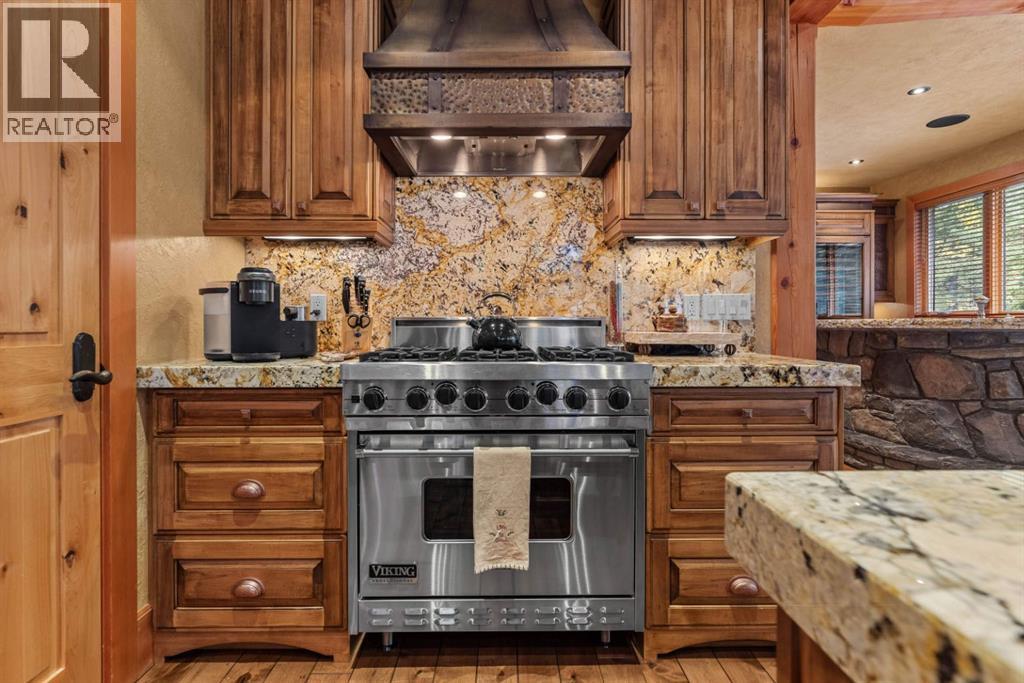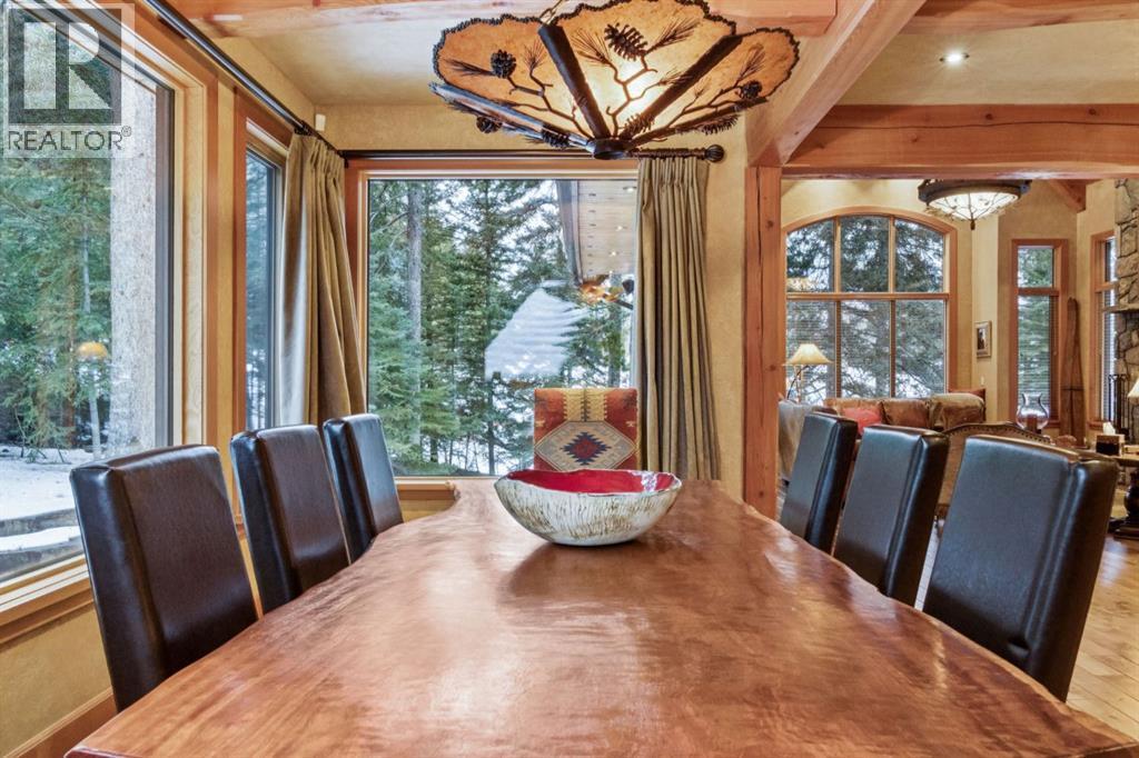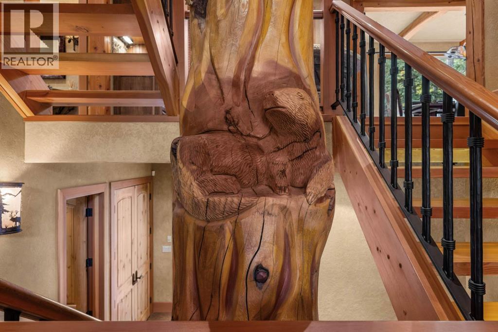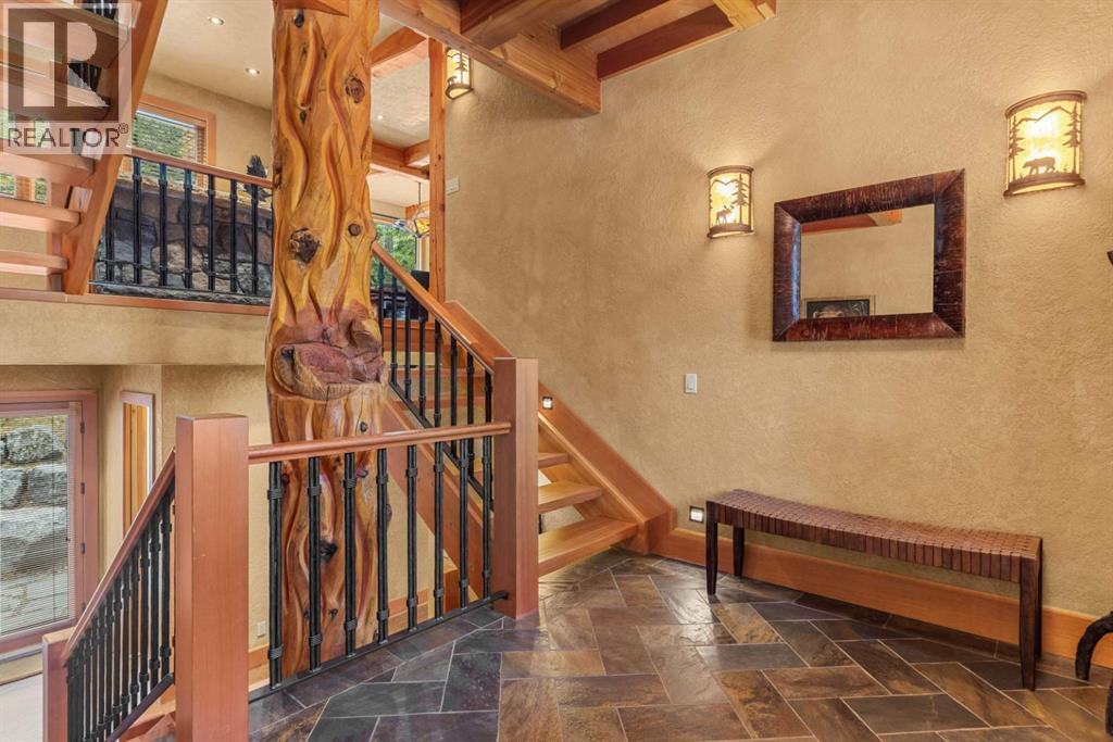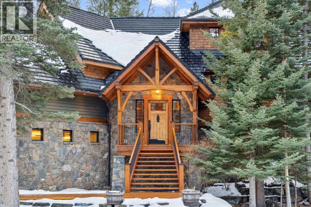Located in Cairns on the Bow, just minutes from the gates of Banff National Park, this custom 4,000+ sq ft timber-frame residence offers a rare blend of privacy, warmth, and mountain character. Set on a beautifully treed 17,642 sq ft lot within Canmore’s only gated community, the home combines natural seclusion with exceptional craftsmanship.Inside, soaring fir-paneled ceilings and the timeless elegance of Italian plaster set a warm and sophisticated tone throughout. The open-concept layout seamlessly connects the principal living spaces, ideal for both intimate family moments and grand entertaining. The great room is anchored by a striking Rundle stone wood-burning fireplace, creating a natural gathering space that radiates warmth and character. The kitchen pairs custom cabinetry with Sub-Zero and Viking appliances, thoughtfully designed for everyday living and effortless entertaining. The primary suite offers a peaceful retreat with treetop views and a spa-inspired ensuite finished in Marinace granite and travertine, complete with a jetted tub.Additional highlights include two spacious guest bedrooms, a home theatre, a versatile recreation room, a dedicated home office, and a custom bar — offering flexibility for family and guests alike. Outdoors, professionally landscaped grounds feature natural stonework, a built-in BBQ, and a cozy fire pit, creating the perfect setting for year-round mountain living.A rare opportunity to own a timeless timber-frame home in Cairns on the Bow, where privacy, nature, and thoughtful design come together in perfect harmony. https://163cairns.info/ (id:6769)