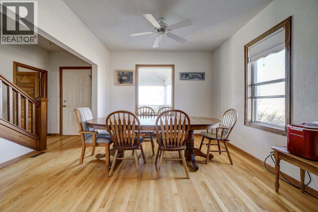 Welcome to the MD of Pincher Creek. Situated on 3.66 acres, 4 km south of the Town of Pincher Creek, this turn of the Century four bedroom, two bathroom, heritage home is rich in character and charm. Original doors and moldings blend beautifully with modern updates. Enjoy a large eat in country kitchen, separate dining room as well as a spacious living room, perfect for family time and entertaining. All upstairs bedrooms feature walk in closets. Relax on the west facing veranda and enjoy striking mountain views and sunsets. Features include an OHV shed, mounded concrete root cellar to store winter vegetables and seeds, plus 6 granaries. A charming circa 1900 , 8 stall barn with loft storage completes this unique property, offering the perfect balance of country living and convenient proximity to town. (id:6769)