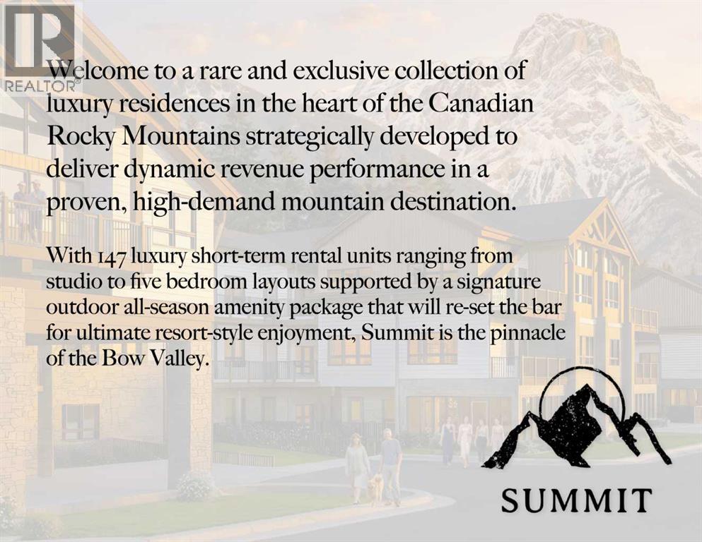 This well-designed 147-unit resort-style development is ideally located in the heart of the Bow Valley, surrounded by the Canadian Rockies and minutes from Canmore, Kananaskis, and Banff. The project features a strategic mix of short-term rental and tourist-zoned units, complemented by resort-style amenities including two outdoor hot tubs, outdoor heated year-round pool, multiple fire pit gathering areas, two cedar saunas, a fitness centre, and a shared workspace. Ground-floor commercial spaces provide everyday convenience and enhance the overall functionality of the community. With immediate access to outdoor recreation and limited new supply in the Bow Valley, this development offers strong lifestyle and investment appeal. (id:6769)