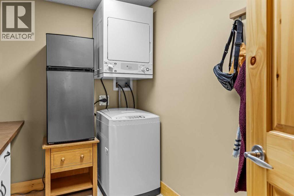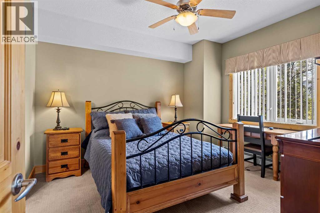 This thoughtfully laid out 2-bedroom, 2-bathroom corner unit offers 1,237 sq ft of bright, open-concept living space, featuring two spacious primary suites—each with its own ensuite. The main living area is enhanced by new luxury vinyl plank flooring, while two peaceful decks provide quiet outdoor retreats backing onto serene wooded greenspace—just steps from the Bow River. Owners enjoy access to a first-class clubhouse with an indoor pool, indoor/outdoor hot tub, sauna, steam room, fitness centre, theatre, event space, and games area with billiards, table tennis, and shuffleboard. Complete with titled underground parking and a secure storage locker, this is low-maintenance living in one of Canmore’s finest adult communities. Furnishings Negotiable. -Listing Agents are Related to the Sellers. (id:6769)