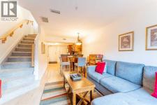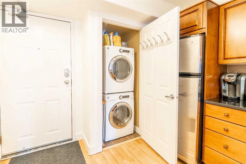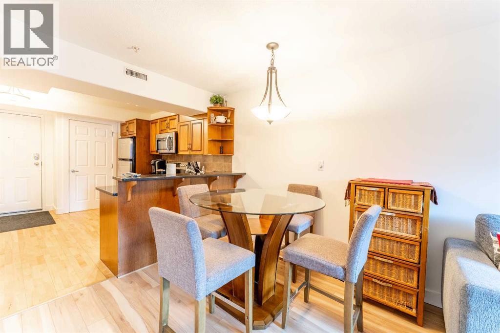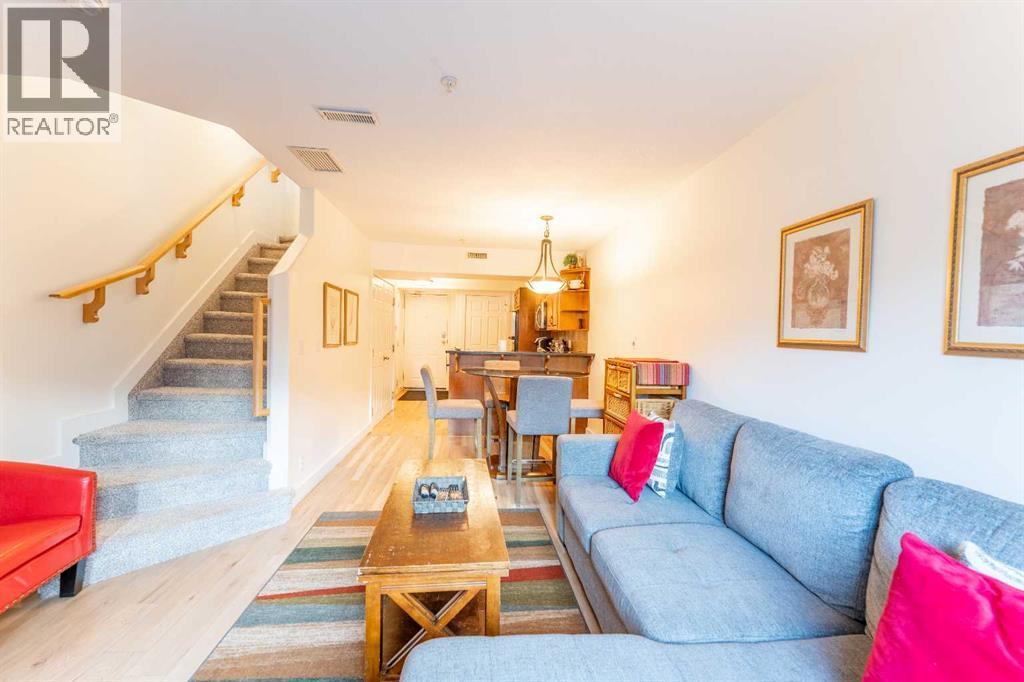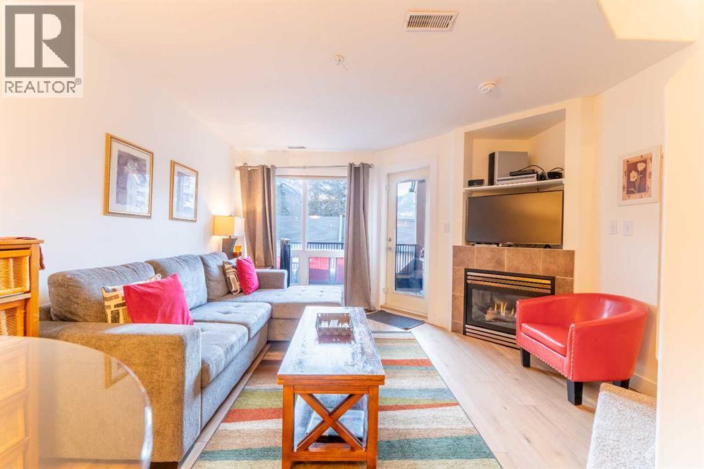 220 Alpine Village is a well-maintained two bedroom bi-level condo with Tourist Home zoning, giving you the flexibility to short-term rent, use it personally, or do both. The listing price includes GST.783 sq ft with a bright, functional layout that makes excellent use of the space. The main level includes the kitchen, dining area, laundry, and living room, creating a practical flow for both everyday living and guest stays. The living room features a gas fireplace and large south-facing windows that bring in strong natural light and mountain views throughout the day.The kitchen, finished with stainless steel appliances, opens comfortably to the dining space. A new washer and dryer are conveniently located just off the kitchen on the main level.The bi-level design separates living and sleeping areas for added privacy. Both bedrooms feature vaulted ceilings and oversized windows that frame views of the Three Sisters and keep the rooms feeling open and bright. With two full bathrooms and bedrooms on separate levels, the layout works well for families, couples, or short-term guests.Outside, enjoy a private south-facing deck with a BBQ, ideal for summer evenings and morning coffee.Parking and storage are convenient features here. One underground parking stall is included, along with a privately assigned storage locker. A key highlight is the private exterior entry. You have your own front door and walk directly into the unit, offering more of a townhouse-style feel while still benefiting from condo ownership.Located in the valley bottom, you are within easy walking distance to Main Street shops, restaurants, groceries, and pathway access, while still positioned slightly off the busiest stretch.Two bedroom Tourist Home properties at this price point are limited in Canmore. If you are looking for a flexible investment or a low-maintenance mountain property with income potential, this one delivers strong value in a central location. (id:6769)