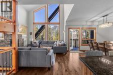 Soaring ceilings, timber frame accents, and panoramic mountain views set the tone the moment you walk in. Offering almost 3,000 square feet of thoughtfully designed living space, this mountain retreat blends scale with warmth. An open-riser staircase adds architectural flair and enhances the true chalet feel. With multiple decks and a walkout level built for entertaining, the home is designed for both gathering and quiet escape.The main level features a gourmet kitchen with stainless steel appliances, alder cabinetry, granite counters, BBQ deck access, and a spacious dining nook. The great room showcases floor-to-ceiling windows and a cozy gas fireplace framed by valley views. Tucked around the corner is a convenient half bath and a generous bedroom with private ensuite and its own coffee deck.Upstairs offers a loft/office plus two additional bedrooms, each with its own ensuite, including a steam shower in the primary. Wake up to Lady Mac out back or Big Sister out front from the primary suite. The walkout level includes a second living room with fireplace, games area, wet bar, 4-piece bath, and hot tub patio backing onto green space and pathway.A double attached garage provides room for all your mountain gear, and the high-end mechanical system, including boiler and heat recovery, reflects the quality throughout. Furniture is included, making this a true turnkey opportunity—just move in and enjoy mountain life. (id:6769)