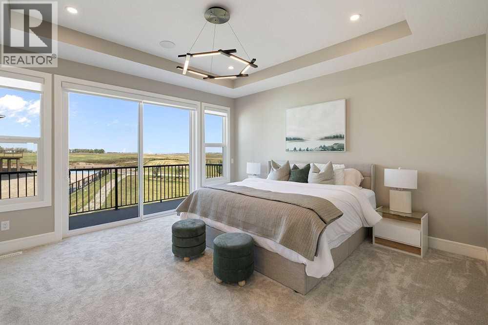 Welcome to 301 Limestone Bay in prestigious Goldwyn Prairie Estates, where refined modern farmhouse design meets the serenity of estate living just moments from Calgary’s vibrant city centre.This exceptional 2-storey residence offers 2,977 sq. ft. of meticulously crafted living space, perfectly blending timeless architectural charm with contemporary luxury. A triple attached garage and striking curb appeal set the tone for the elegance that awaits inside.Step through the grand entry into an airy open-concept floor plan featuring 9’ ceilings on the main floor, 8’ doors, and a breathtaking open-to-below living room that fills the home with natural light and architectural drama. Thoughtfully designed for both everyday comfort and upscale entertaining, the main level also includes a versatile den and a full bathroom, ideal for guests or multigenerational living.At the heart of the home is a fully custom chef’s kitchen, complete with premium finishes and a dedicated spice kitchen for elevated culinary experiences. Seamlessly connected to the dining and living areas, the space flows onto a 220 sq. ft. rear deck, creating the perfect indoor-outdoor lifestyle for gatherings or quiet evenings overlooking the prairie landscape.Upstairs, discover four spacious bedrooms, each designed with comfort and privacy in mind. The upper level includes a generous bonus room and four full bathrooms, highlighted by two luxurious en-suites connected by a Jack & Jill concept, offering both sophistication and functionality.Indulge daily in the home’s exclusive SPA PACKAGE, featuring: Under-cabinet lighting with motion sensors, Heated floors, Steam shower with tile base, Rainfall showerhead set in a ceiling feature, 10mm frameless glass swing doorand Low-profile curb shower. Every detail has been curated to deliver a private wellness retreat within your own home.Escape the urban hustle and embrace the tranquillity of prairie estate living in Goldwyn. Here, residents enjoy unparall eled peace, privacy, and expansive surroundings. As night falls, experience breathtaking views of starlit skies unobstructed by city lights — a rare luxury just minutes from Calgary’s core. (id:6769)