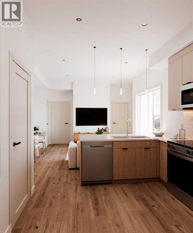 This 1-bedroom, 1-bath CORNER UNIT offers pristine interior selections, brand-new stainless steel appliances, 10-year new home warranty, and an unbeatable location! Located on a quiet street just minutes from downtown Banff’s cafés, restaurants, and everyday amenities, McHardy Residences presents a rare opportunity to own a newly built home designed for full-time mountain living. The open-concept layout provides practical, comfortable living for those who call Banff home year-round including a generous living room, sun bathed front deck, and in suite laundry. Set in a peaceful neighborhood yet just moments from the energy of downtown, this unique property delivers the lifestyle locals are looking for: space, serenity, and a true connection to the mountains. Additional storage lockers provide valuable room for all your mountain gear. (id:6769)