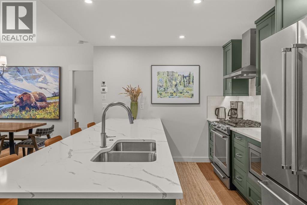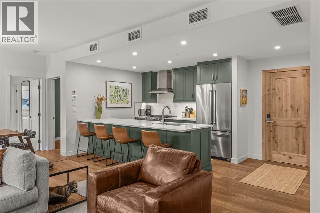 Tourist zoned and revenue-ready in Spring Creek! Across the street from Bridgette Bar and an easy scenic stroll to shops, restaurants and Main Street, Canmore. This is a rare opportunity in Timberstone Lodge, offering 4 bedrooms, 3 full bathrooms, and a southwest corner position on the third floor with scenic mountain views. Designed for guest comfort and strong short-term rental appeal, the open-concept layout features generous sized gathering spaces, a highly functional kitchen with KitchenAid stainless steel appliances, quartz countertops, and solid wood cabinetry. Step outside to an oversized covered deck (over 30 feet long!) with room to BBQ, dine, and lounge. Two spacious, primary-style bedrooms each offer beautiful ensuites. One with dual sinks, a soaker tub, and a modern curbless shower. The second includes a walk-in closet, another five-piece ensuite, and a private water closet. Two additional bedrooms and the 3rd full bath, provide a rare short term rental option for groups to enjoy the convenience of staying together in one property. Underground heated parking and storage complete this amazing opportunity. Spring Creek’s superior craftsmanship includes BUILT GREEN certification, with geothermal heating and cooling. Enjoy Timberstone’s amenities including an outdoor hot tub with mountain views and a fitness room, plus an unbeatable Spring Creek lifestyle. A standout short-term rental package in one of Canmore’s most in-demand vacation rental spots! (id:6769)