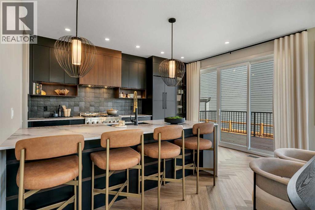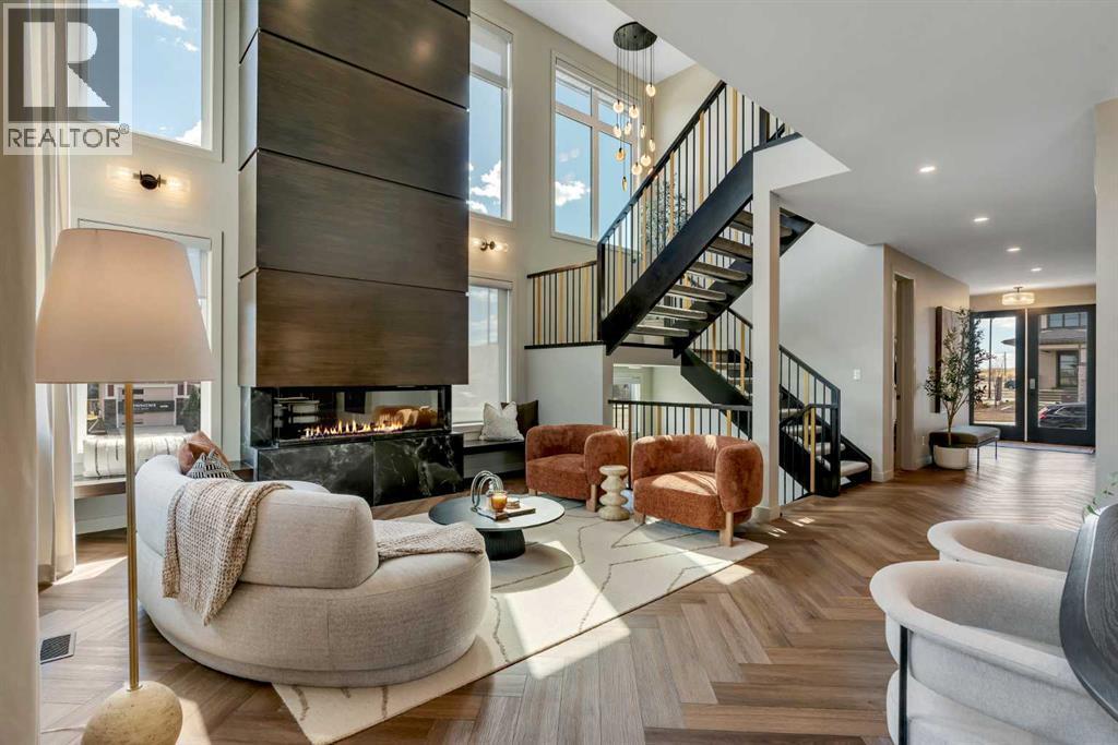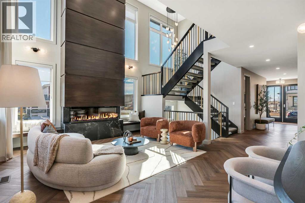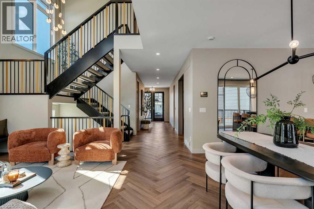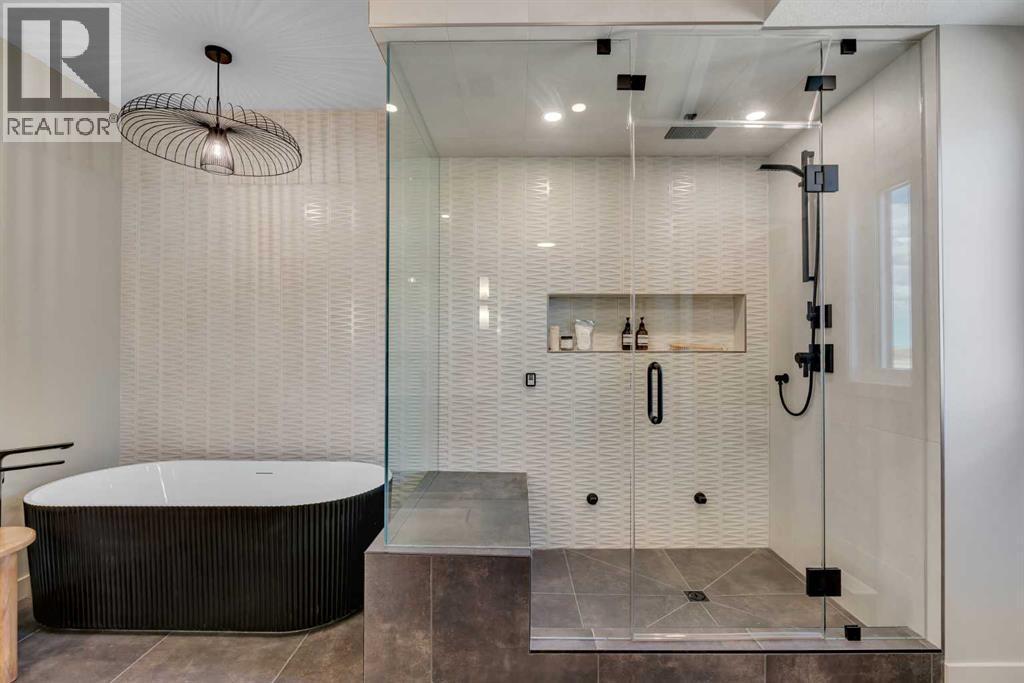 *Watch the Cinematic Showhome Video* A stunning opportunity to own a luxurious, fully upgraded SHOWHOME built by one of the most premium builders of Alberta - Aspen Creek Designer Homes. Get ready to be mesmerized as this specular home offers all the bells and whistles you have been dreaming of. Whether you're in in the market to buy a primary residence or an investment property with no time constraint, then this leaseback opportunity is for you - sit back and we will pay you the return! Almost 5000 SQFT of living space | Corner Lot | Triple Car Garage | Hardie Board Siding | Triple Pane Windows | 6 Bedrooms + 5 Full Bathrooms | Beautiful Open to Below Concept | Flex Room/Great Room | High-End Designer Finishings | Chef's Dream Kitchen | Fully Loaded Spice Kitchen | Elegant Lighting | Custom Feature Walls | 4 Bed Up (2 have their own ensuites) | Builder Grade Finished Basement | Oversized Deck. The moment you step in you'll be amazed on how bright and open this floor plan is. Upgraded engineered hardwood flooring throughout with a wide glass door sets up the tone. The main floor bedroom servers perfectly for multi-generational comfort along with an upgraded full bathroom with extra drawers, a standing glass shower and sleek floor to ceiling tiles. The flex room offers flexibility to use as a great room or to set up your work from home station with custom wall work and pot lights. The showstopper living room with high soaring ceilings and extra windows throughout perfectly showcases how luxury shall look like! Whether you love entertaining people or want the live life the royal style - this magnificent space has tons of natural light. The dreamy chef's kitchen with waterfall island, upgraded quartz countertops, upgraded stylish faucets, two-toned cabinets, open cubes with custom lighting, glass shelves, polished brick style backsplash, top of the notch appliances including a gas stove and a panelled fridge. A fully loaded spice kitchen with tons of cabinets space a nd its own set of appliances. A custom mud room with tile, hangers, and extra storage space. Walking upstairs, you'll be impressed by open riser steps, the unique black and gold railings, 9 feet ceilings, and 8 feet doors. 4 Bedrooms (2 with their own ensuites) including the beautiful primary bedroom with a statement chandelier, custom feature wall, a walk-in close with mdf shelvings, and a spa-like ensuite with heated floors, premium matte black fixtures, under the cabinets lights, wrap around glass shower, and a soaker tub. A huge bonus room - an excellent spot for your movie nights! 3 other spacious bedrooms with another full bathroom and a laundry room with extra storage and a sink completes this level. A fully finished basement - Over 1,000 square feet of additional living space including a highly upgraded wet bar with plenty of cabinet space, custom shelves, glass backsplash and a beverage fridge. Alongside you have a gorgeous gym room, a bedroom, a full bath and a massive rec area. (id:6769)