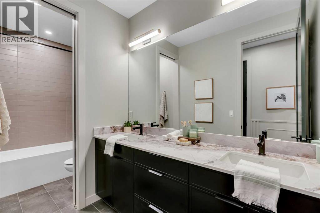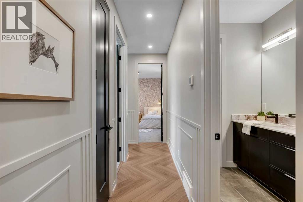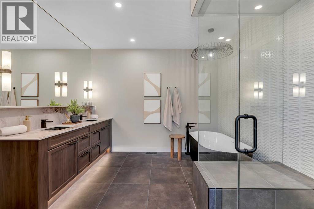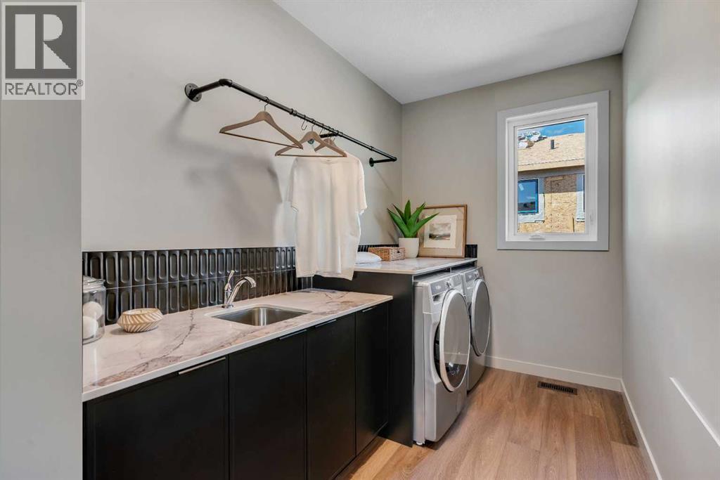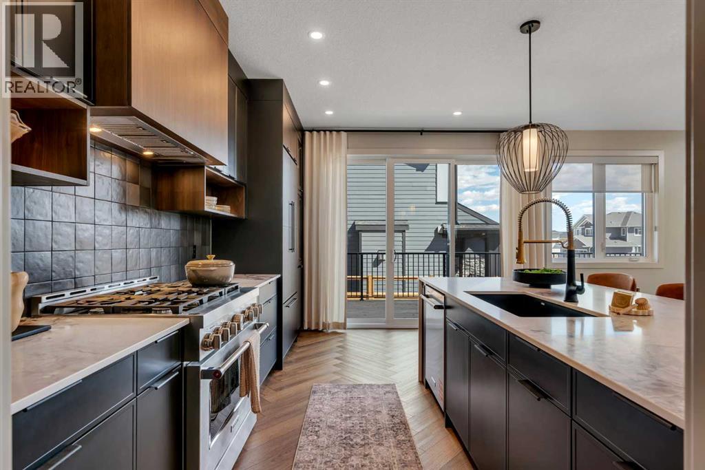 *Watch the Cinematic Showhome Video* A stunning opportunity to own a luxurious, fully upgraded SHOWHOME built by one of the most premium builders of Alberta - Aspen Creek Designer Homes. Get ready to be mesmerized as this specular home offers all the bells and whistles you have been dreaming of. Whether you're in in the market to buy a primary residence or an investment property with no time constraint, then this leaseback opportunity is for you - sit back and we will pay you the return! Almost 5000 SQFT of living space | Corner Lot | Triple Car Garage | Hardie Board Siding | Triple Pane Windows | 6 Bedrooms + 5 Full Bathrooms | Beautiful Open to Below Concept | Flex Room/Great Room | High-End Designer Finishings | Chef's Dream Kitchen | Fully Loaded Spice Kitchen | Elegant Lighting | Custom Feature Walls | 4 Bed Up (2 have their own ensuites) | Builder Grade Finished Basement | Oversized Deck. The moment you step in you'll be amazed on how bright and open this floor plan is. Upgraded engineered hardwood flooring throughout with a wide glass door sets up the tone. The main floor bedroom servers perfectly for multi-generational comfort along with an upgraded full bathroom with extra drawers, a standing glass shower and sleek floor to ceiling tiles. The flex room offers flexibility to use as a great room or to set up your work from home station with custom wall work and pot lights. The showstopper living room with high soaring ceilings and extra windows throughout perfectly showcases how luxury shall look like! Whether you love entertaining people or want the live life the royal style - this magnificent space has tons of natural light. The dreamy chef's kitchen with waterfall island, upgraded quartz countertops, upgraded stylish faucets, two-toned cabinets, open cubes with custom lighting, glass shelves, polished brick style backsplash, top of the notch appliances including a gas stove and a panelled fridge. A fully loaded spice kitchen with tons of cabinets space a nd its own set of appliances. A custom mud room with tile, hangers, and extra storage space. Walking upstairs, you'll be impressed by open riser steps, the unique black and gold railings, 9 feet ceilings, and 8 feet doors. 4 Bedrooms (2 with their own ensuites) including the beautiful primary bedroom with a statement chandelier, custom feature wall, a walk-in close with mdf shelvings, and a spa-like ensuite with heated floors, premium matte black fixtures, under the cabinets lights, wrap around glass shower, and a soaker tub. A huge bonus room - an excellent spot for your movie nights! 3 other spacious bedrooms with another full bathroom and a laundry room with extra storage and a sink completes this level. A fully finished basement - Over 1,000 square feet of additional living space including a highly upgraded wet bar with plenty of cabinet space, custom shelves, glass backsplash and a beverage fridge. Alongside you have a gorgeous gym room, a bedroom, a full bath and a massive rec area. (id:6769)