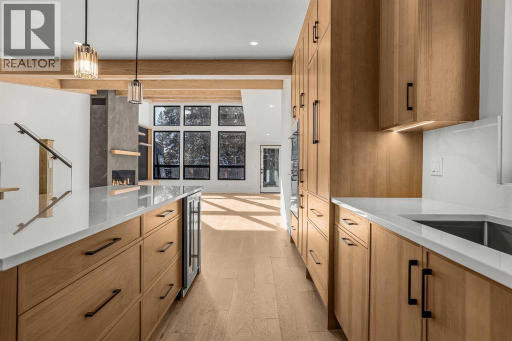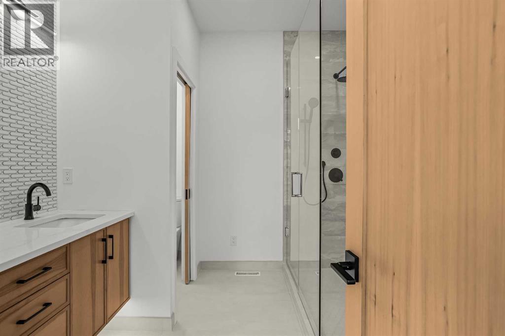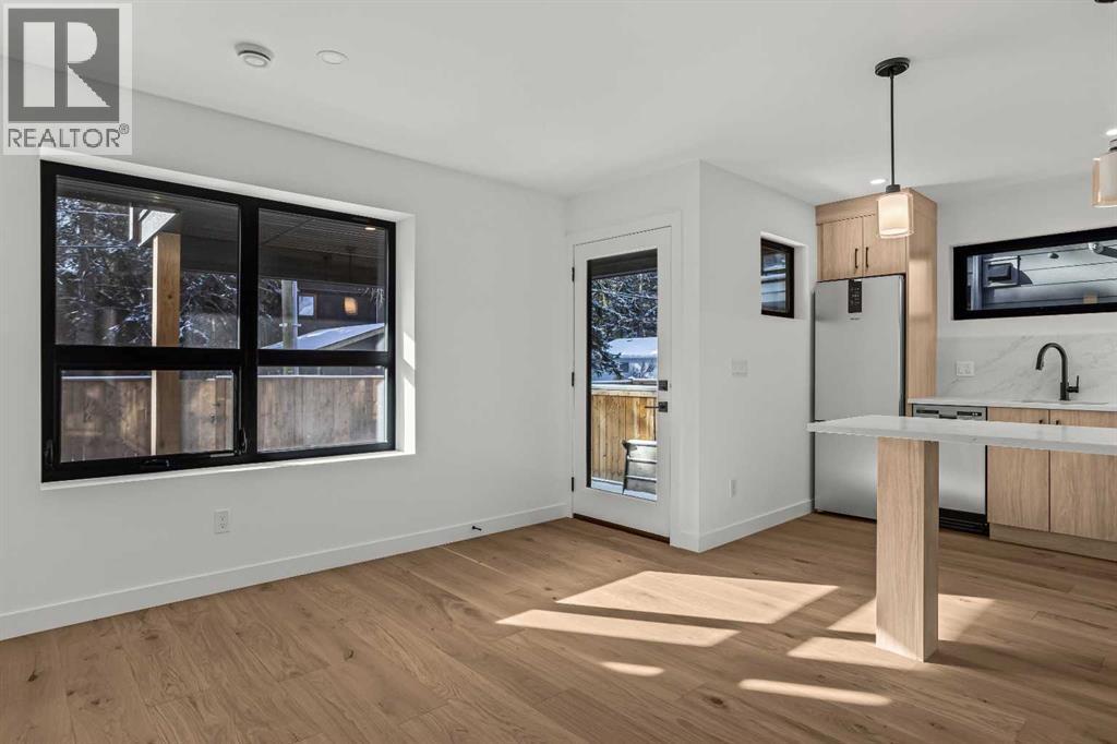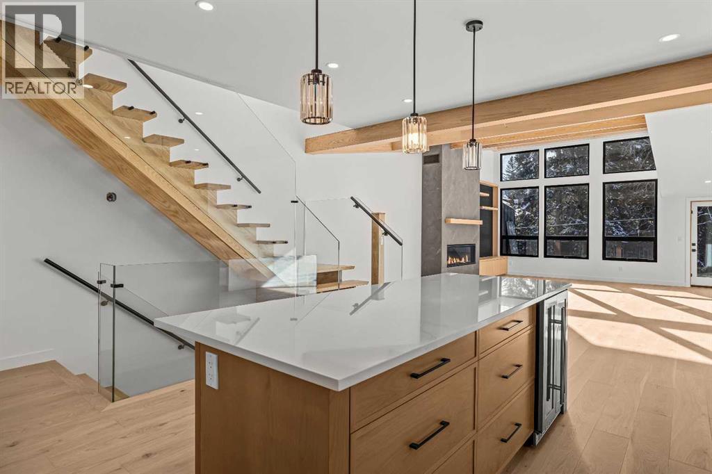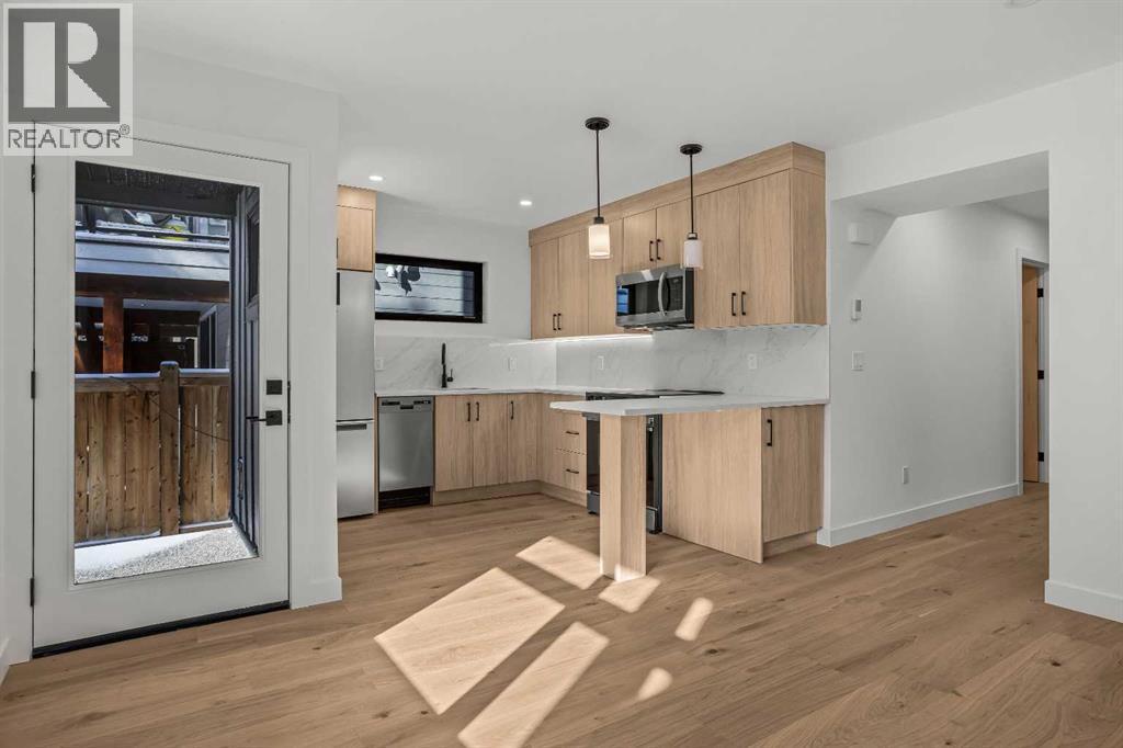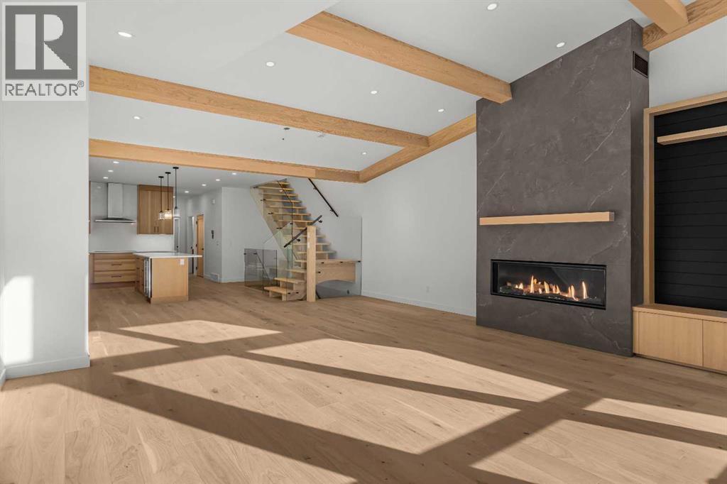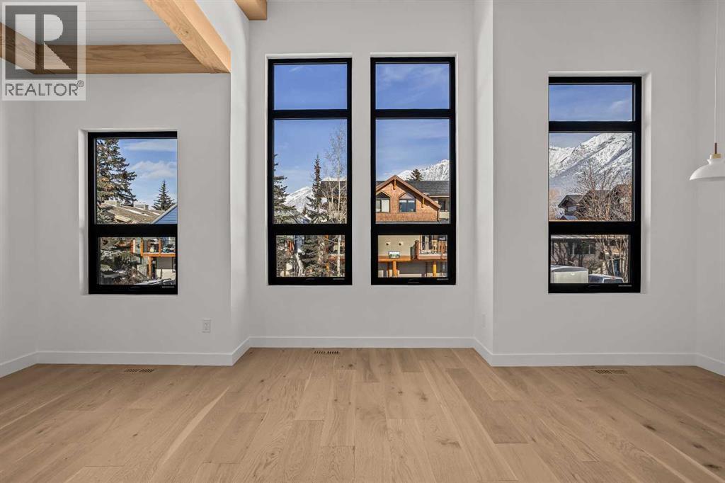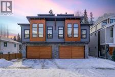 Experience modern mountain living in this brand new stunning 5-bedroom, 5-bathroom duplex, perfectly situated in the heart of South Canmore. Built by the renowned Lakusta Homes, this architectural gem features a sleek shed roof design and a thoughtfully crafted floor plan, offering both style and functionality. With a legal suite featuring a private entrance, it's ideal for generating rental income or accommodating extended family. The heated double car garage provides convenience and comfort, especially during chilly mountain mornings. Designed for easy accessibility, the main floor offers one-level living, while the south-facing orientation ensures year-round natural light and breathtaking mountain views. Located just steps from the Bow River and scenic walking trails, this exceptional home combines modern design with mountain charm, offering the perfect retreat in one of Canmore's most desirable neighborhoods. (id:6769)