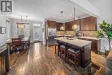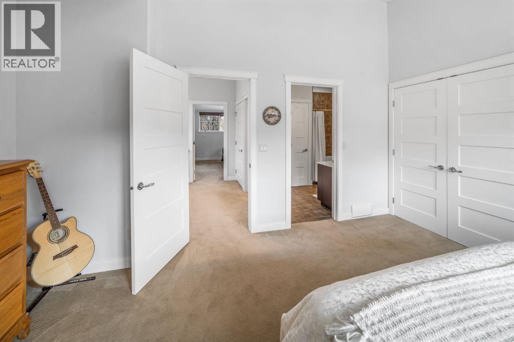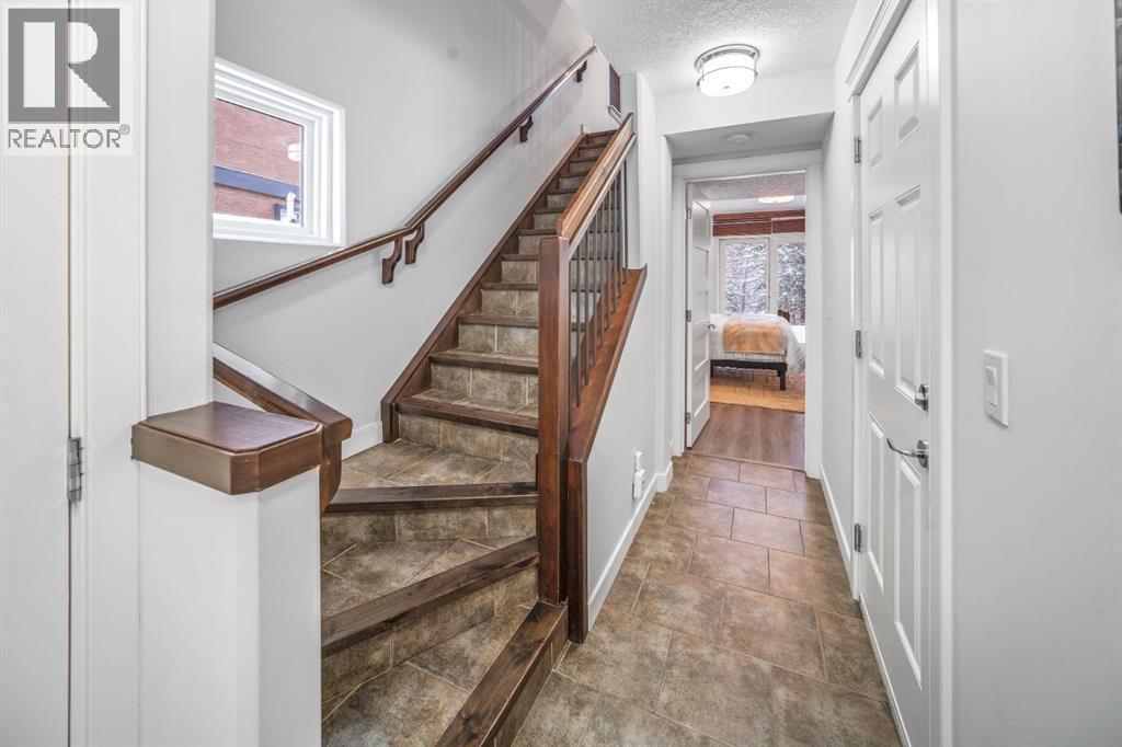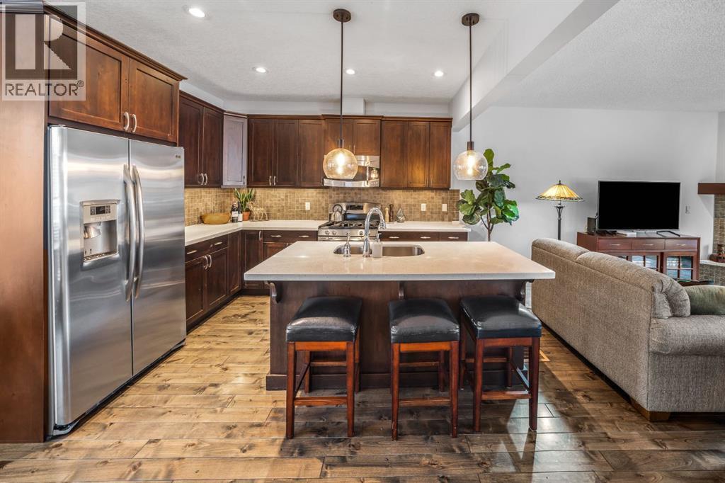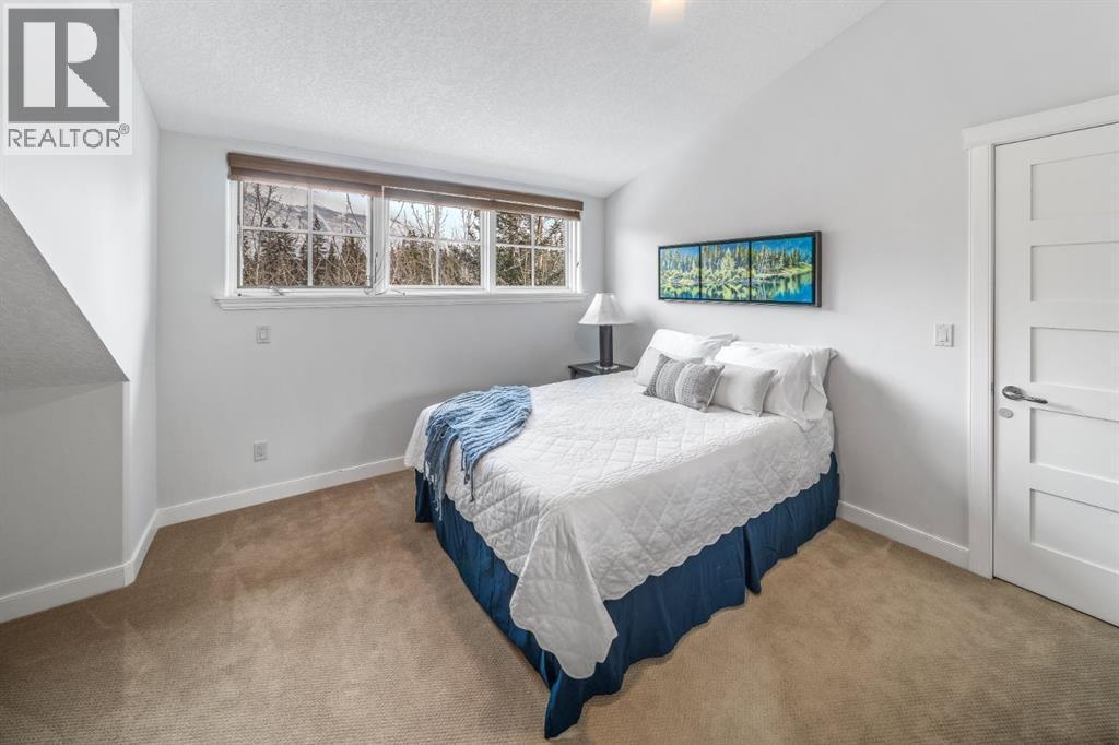 Tucked into a central original stretch of Canmore, 105 Rundle Drive offers a refined take on low-maintenance mountain living. This end-unit townhome backs onto a forested corridor that gently unfolds toward the Bow River, creating a rare sense of privacy just steps from town. From both the front and rear of the home, mountain views frame daily life—an ever-present reminder of why you’re here.The architecture is layered and intentional. The main living space is elevated to the second level, where an open-concept kitchen and living room draw in natural light and open sightlines to the peaks beyond. Front and back decks extend the living area outdoors, inviting morning coffee in the sun and evening dinners against an alpine backdrop.Upstairs, two spacious bedrooms and a full bath form a calm retreat above it all. On the walkout grade level, a flexible space adapts easily as a third bedroom, media room, or office—complete with its own full bathroom and direct access to the backyard. A private hot tub on the rear patio offers a quiet place to unwind beneath the trees after a day on the trails.A single-car garage keeps gear organized and ready, while the location places you within walking distance of Main Street, the river pathway, and an extensive trail network that defines life in Canmore.For those seeking a lock-and-leave home without sacrificing connection to nature, this is mountain living—edited, simplified, and thoughtfully composed. (id:6769)