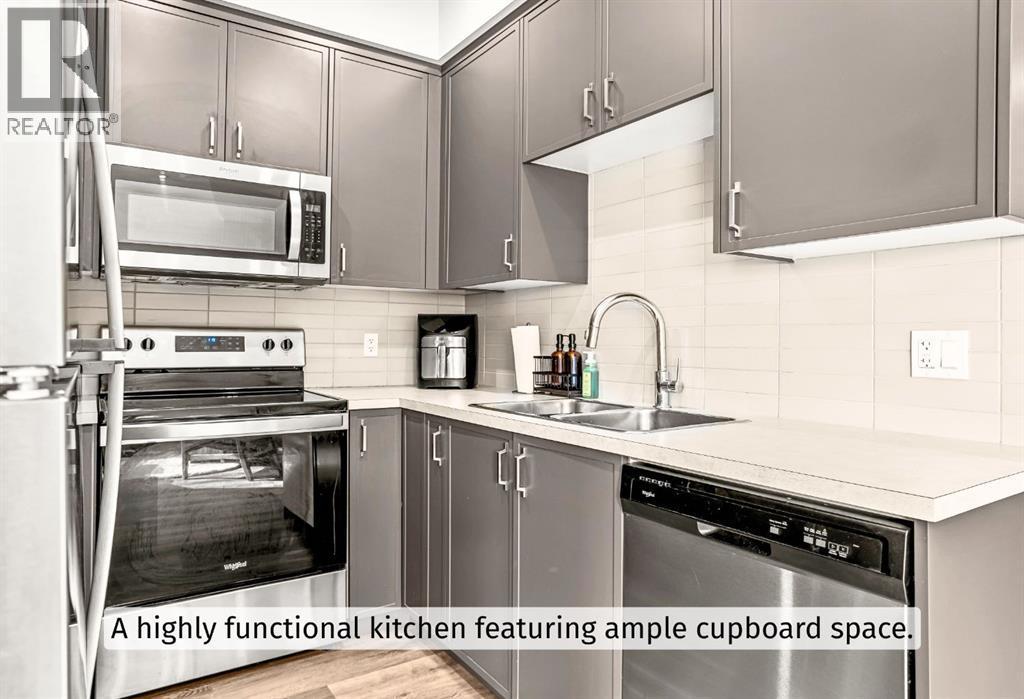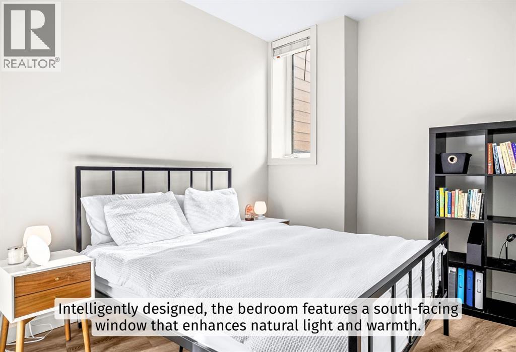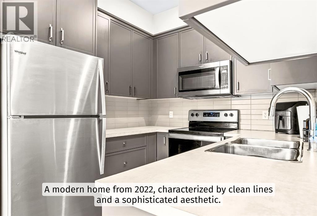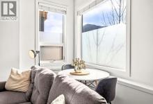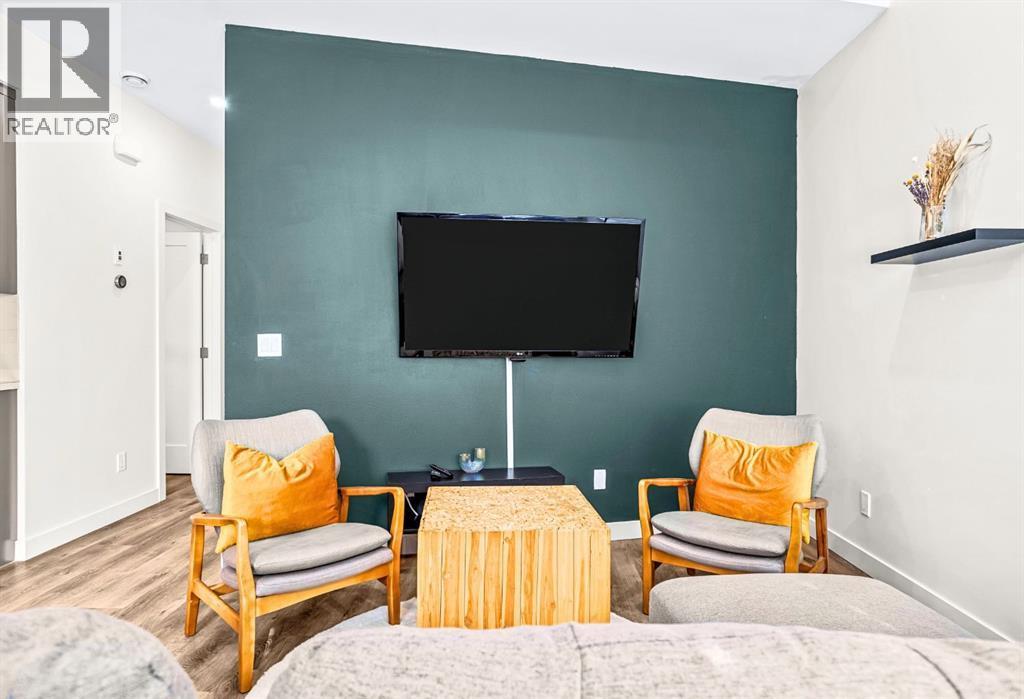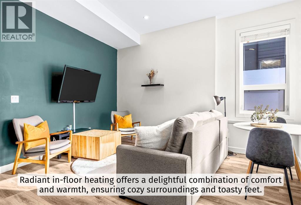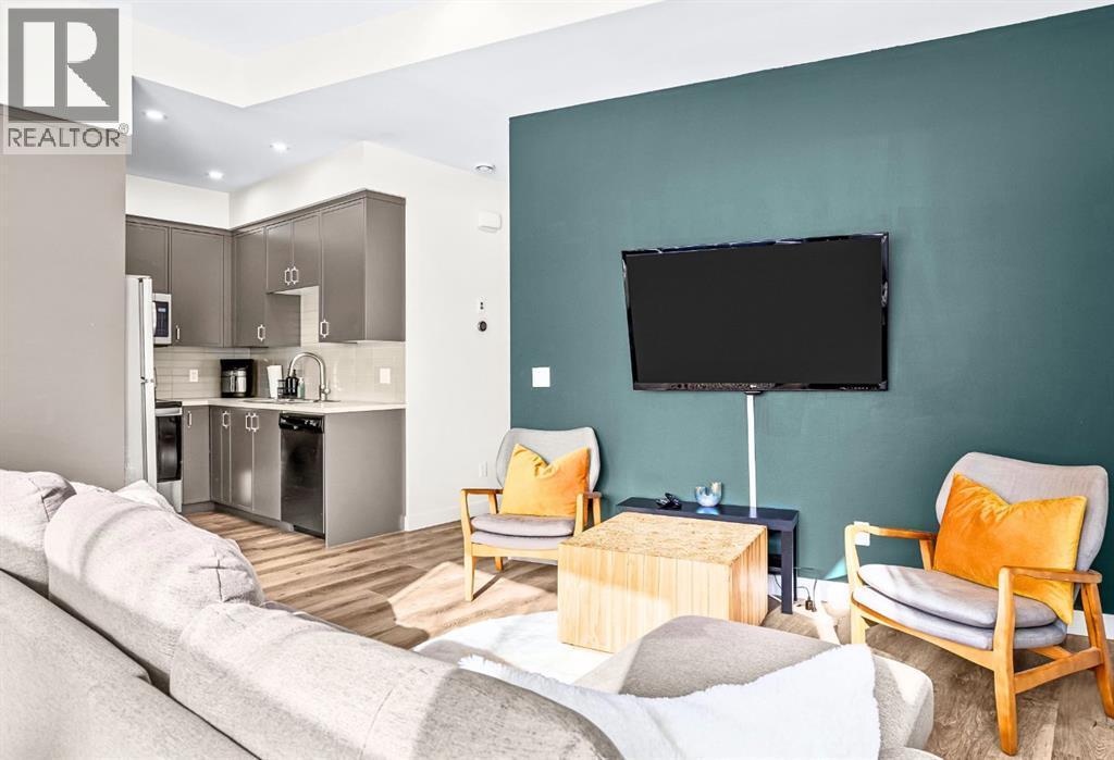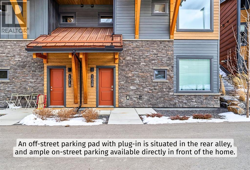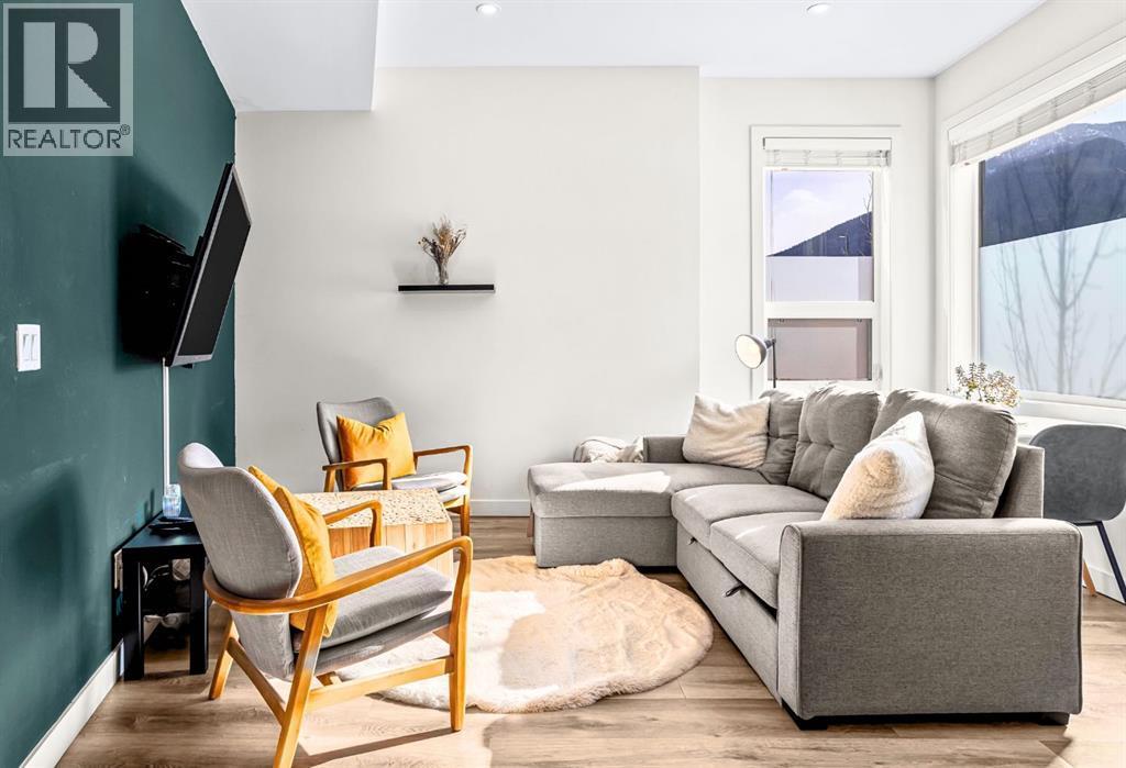 Welcome to a refined mountain escape nestled at the base of the iconic Three Sisters Mountains in beautiful Canmore. Built in 2022 and presenting like new, this thoughtfully designed 1-bedroom home offers 680 square feet of elevated living—where contemporary style meets the raw beauty of the Canadian Rockies. From the moment you arrive, the setting captivates. Framed by breathtaking mountain vistas and tucked into a charming, peaceful neighbourhood, this property offers the rare blend of serenity and walkable convenience. Step inside and feel the difference. Tall ceilings enhance the sense of space, while an abundance of natural light pours in throughout the day, illuminating the home’s clean architectural lines and sophisticated modern aesthetic. Every detail reflects intentional design and effortless comfort.Radiant in-floor heating creates a warm foundation underfoot—delivering cozy surroundings and toasty feet all winter long. It’s a subtle luxury that transforms everyday living into a daily indulgence. The highly functional kitchen is both beautiful and practical, featuring ample cupboard space to keep everything organized and within reach. Whether preparing a quiet breakfast before a mountain adventure or hosting an intimate evening in, this space performs with ease. The intelligently designed bedroom is a private sanctuary, complete with a south-facing window that welcomes in sunlight and natural warmth. Wake each morning to soft light and mountain calm—a gentle reminder of where you are. Practicality meets convenience outside as well. An off-street parking pad with plug-in is located in the rear alley, while generous on-street parking sits directly out front for guests. 5-minute walk to Canmore’s free transit system, 14-minute walk to the new Gateway Shopping Centre, 10-minute walk to Our Lady of the Snows School. This is mountain living without compromise—modern, efficient, and immersed in natural beauty. (id:6769)