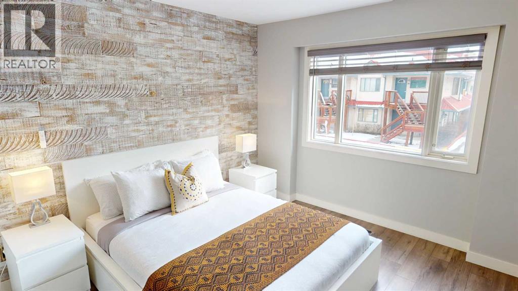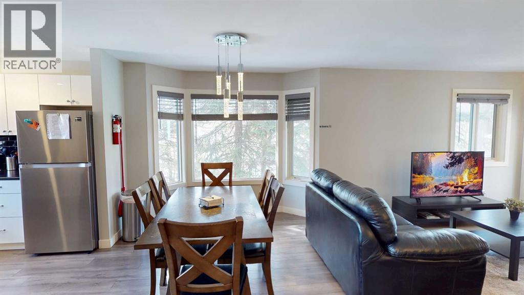 This Turnkey Ready **2 bedroom** HOTEL/CONDO** is a 2nd floor corner *END* unit with *spectacular mountain views*. This unit is an active AIRBNB unit great revenues. Located in Canmore on the the West side of Bow Valley Trail. Close to Downtown. Unit has newer furnace/hot water/tank and comes with all the furnishing and contents. Nicely updated with newer appliances and decor, Large windows and large Bay Window in Dining area, updated light fixtures with built in fans. Parking spot right in front of unit. Visitor parking available. The complex has newer 2 decks and stairs. Back deck is 100 sq ft. and Front Deck is 72 sq. ft.. Take a look at the 3D Tour in listing. The listing price **INCLUDES GST** (id:6769)