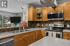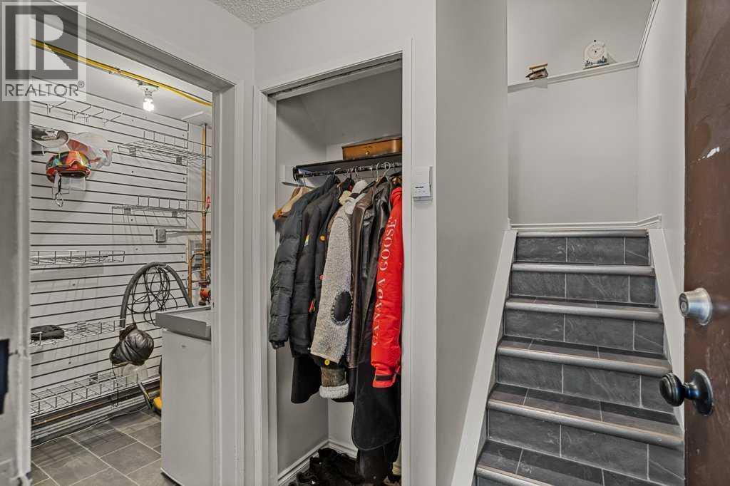 A thoughtfully designed and updated townhouse just steps to the Bow River, walking and biking trails, and all downtown amenities. The kitchen has been opened up to the main living space, offering all day light and views through the entire main floor. Hardwood floors and additional cabinetry bring convenience and comfort to this preferred location. Check out the fabulous south facing views to Three Sisters and Ha Ling. With visitor parking stalls right out the front door, your friends can pop right in to enjoy a coffee from the coffee station and it's easy to load groceries right into the kitchen. The middle level features two bedrooms, full bath, and laundry in the most practical space. The walkout level provides additional storage, utility room, and covered carport, with access to storage for your gear right at the parking level. No more scraping your windshield in the morning! Lots of built in storage areas.A comfortable and cozy condo right on the valley floor with views galore! (id:6769)