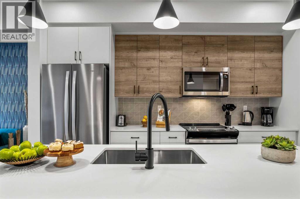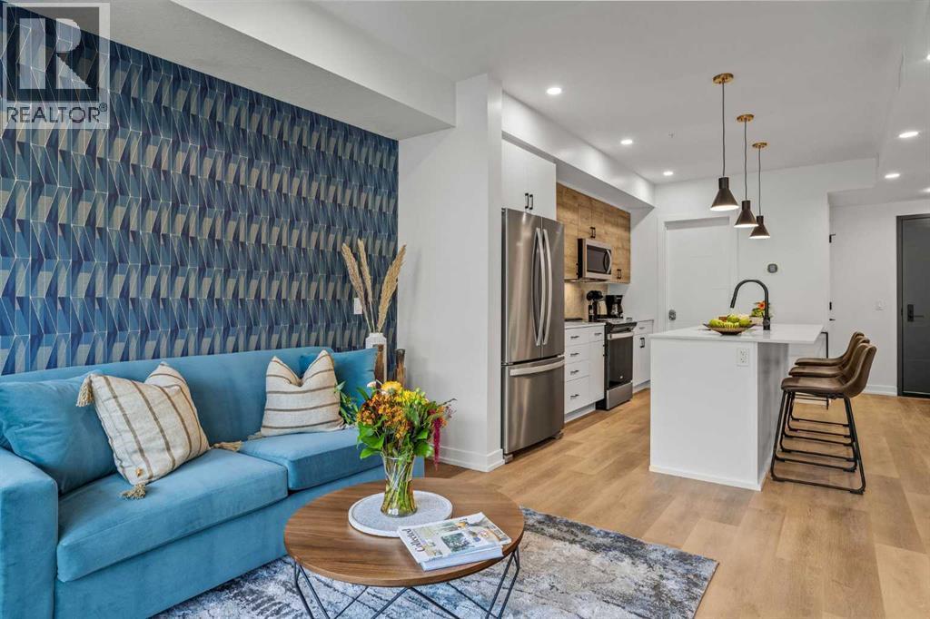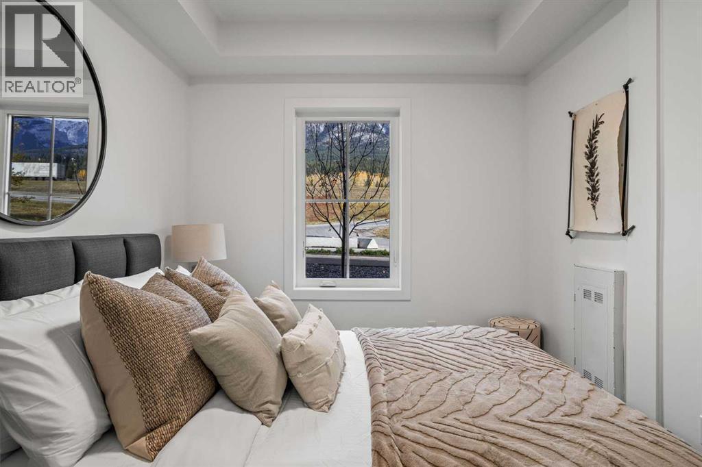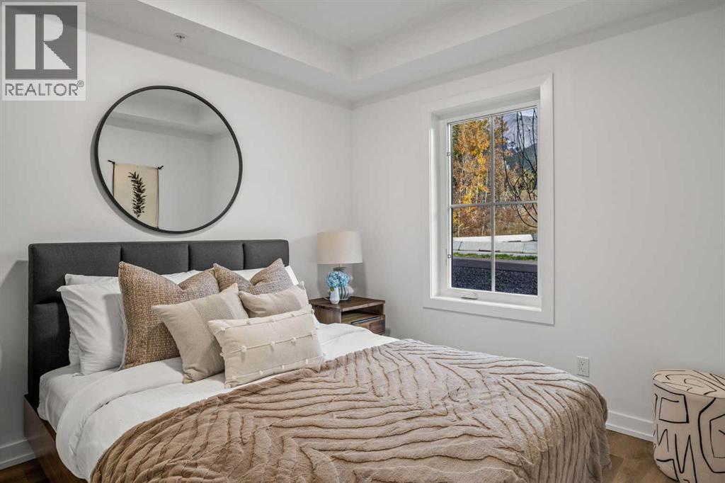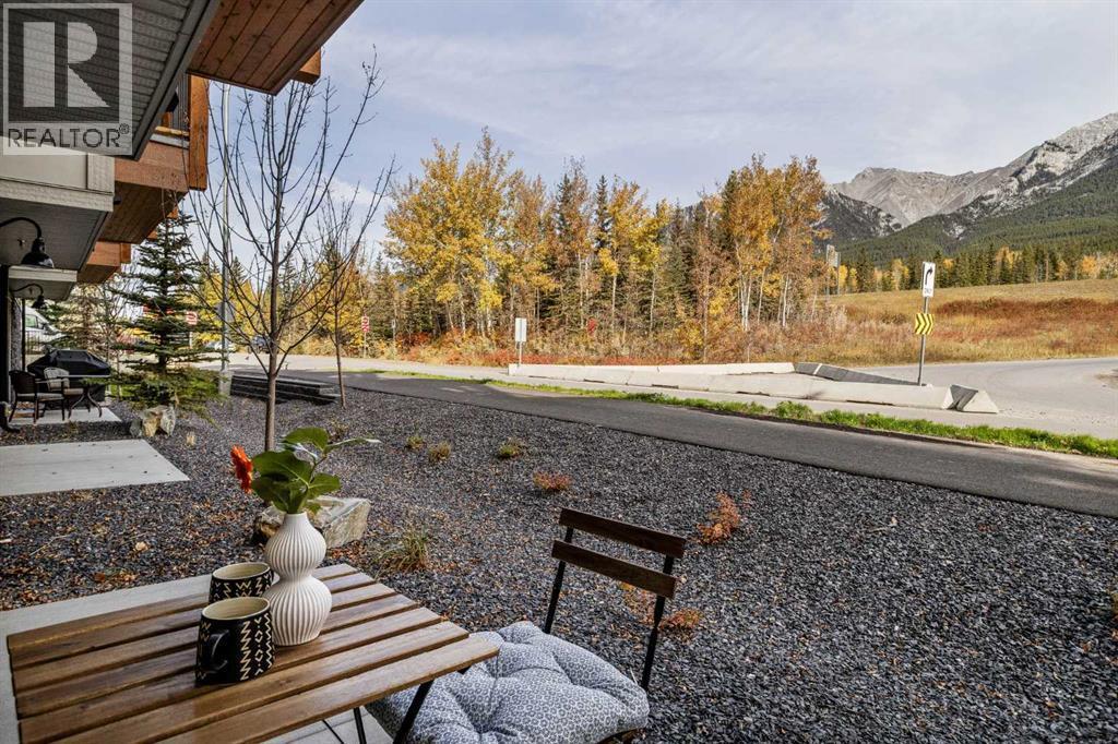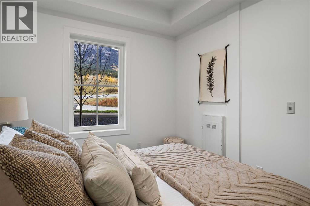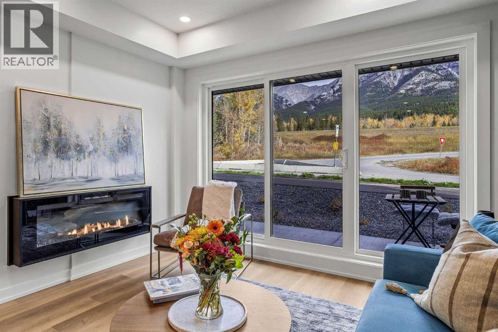 Wake up to breathtaking Rocky Mountain views in this beautifully designed one-bedroom retreat, perfectly positioned in a peaceful mountain setting. Thoughtfully designed with an open-concept layout, the home features a warm and inviting living space with large windows that fill the home with natural light. The living room offers the perfect place to unwind beside the cozy fireplace after a day exploring the mountains, while a convenient sofa bed provides additional sleeping space for guests. The modern kitchen is both stylish and functional, featuring sleek finishes, stainless steel appliances, and a spacious island. Guests will enjoy exclusive access to shared rooftop hot tubs with stunning northeastern mountain views along with a relaxing sauna, providing the ultimate alpine retreat. This unit comes fully furnished and turn-key ready, making it an incredible opportunity to capture Canmore's lucrative short term rental market. The list price includes GST. Consult an Accountant to discuss deferral options. (id:6769)