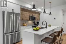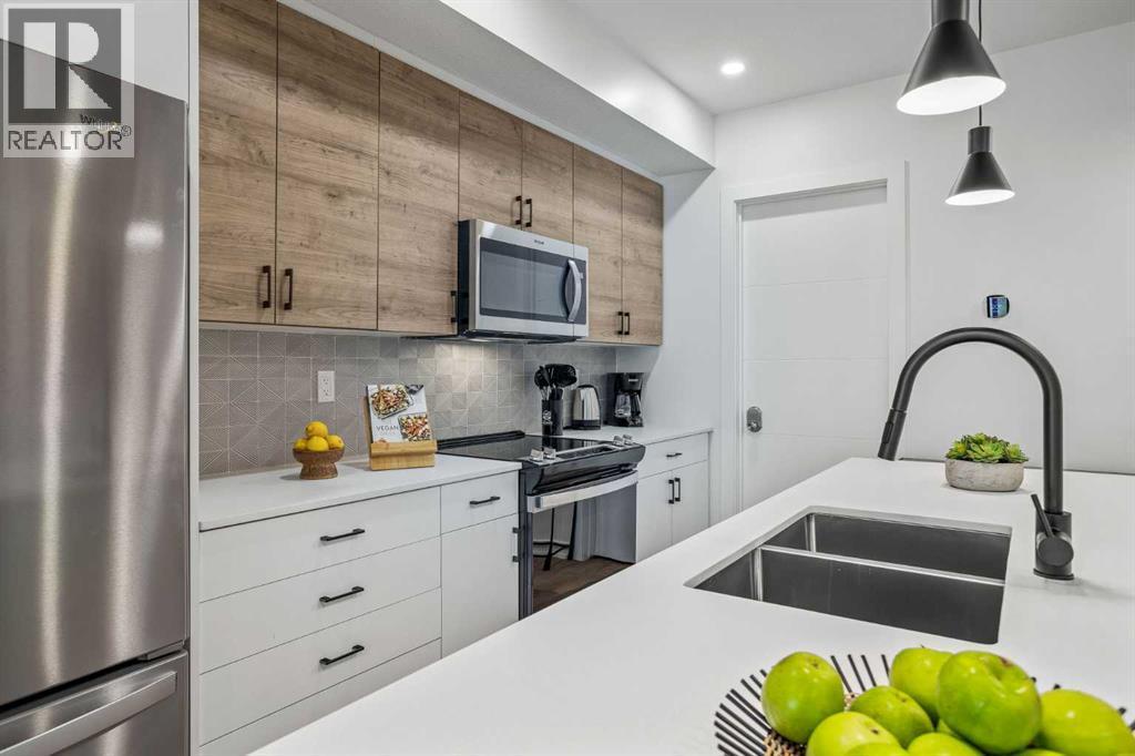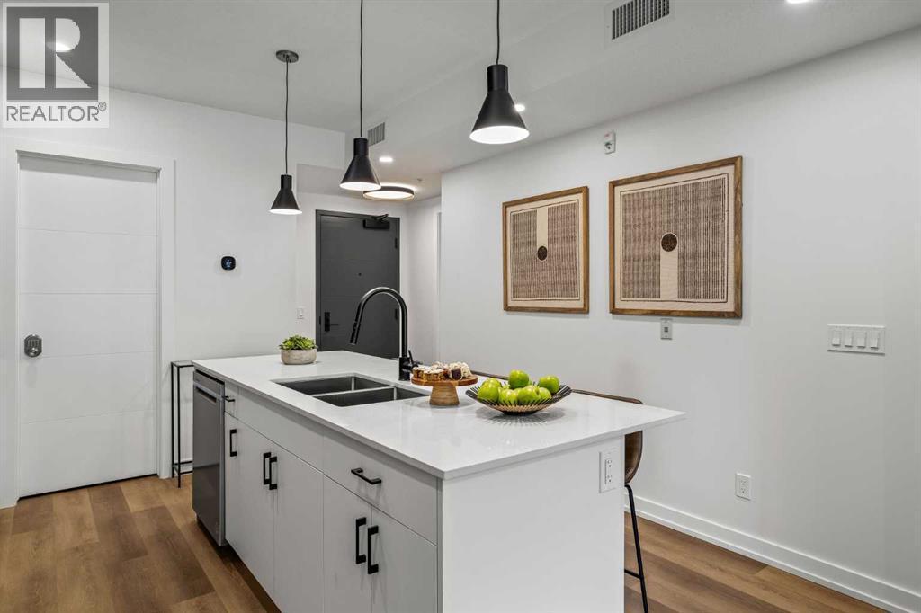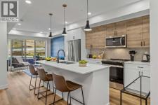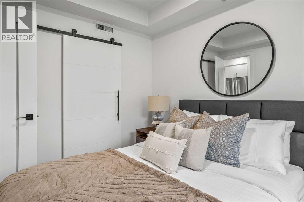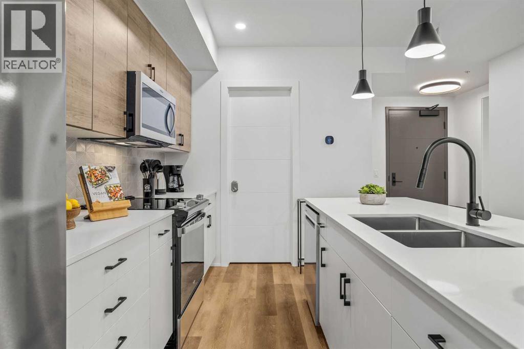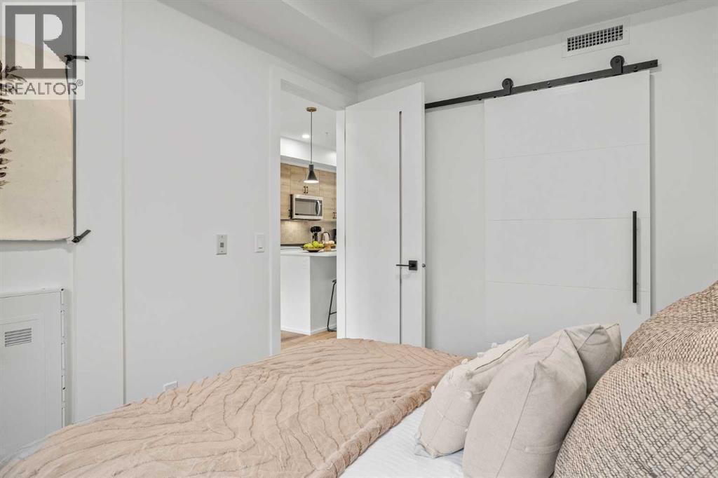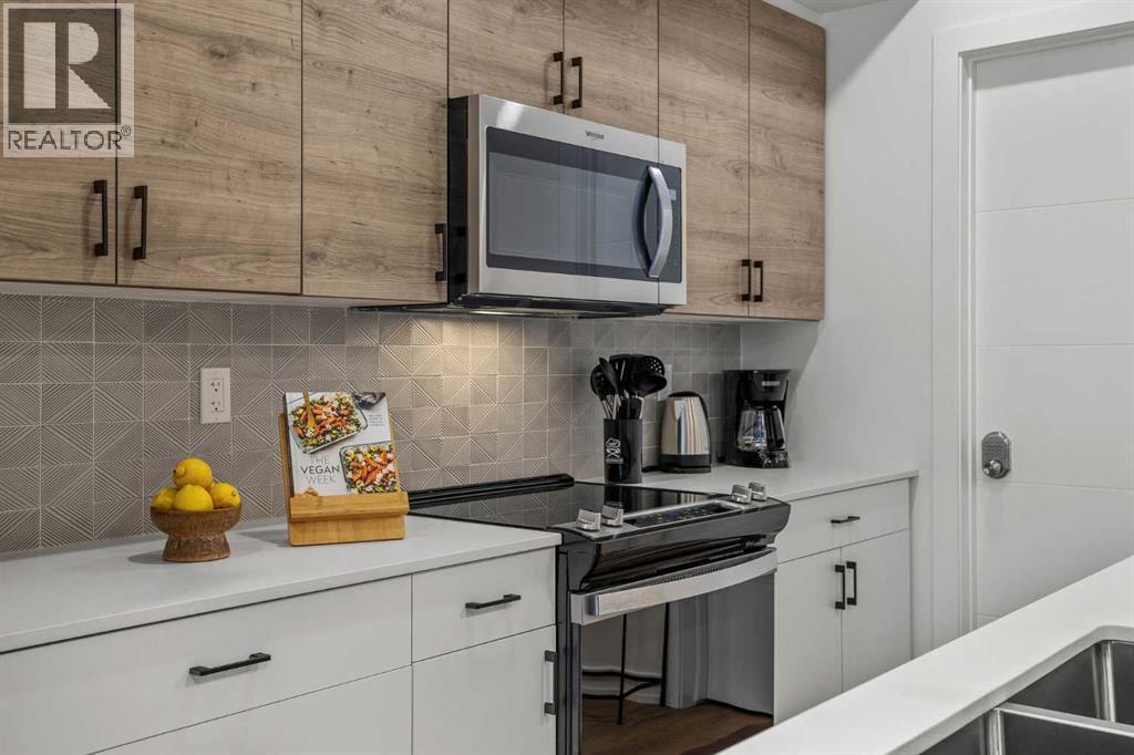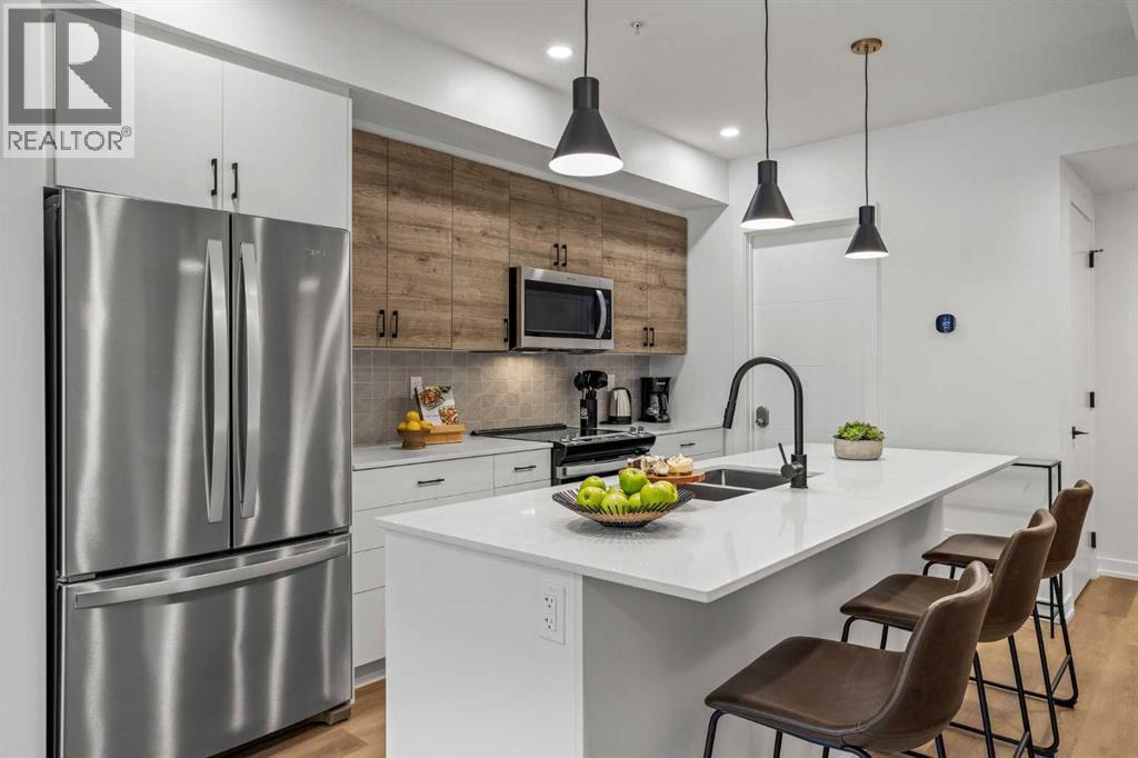 Wake up to breathtaking Rocky Mountain views in this beautifully designed one-bedroom retreat, perfectly positioned in a peaceful mountain setting. Thoughtfully designed with an open-concept layout, the home features a warm and inviting living space with large windows that fill the home with natural light. The living room offers the perfect place to unwind beside the cozy fireplace after a day exploring the mountains, while a convenient sofa bed provides additional sleeping space for guests. The modern kitchen is both stylish and functional, featuring sleek finishes, stainless steel appliances, and a spacious island. Guests will enjoy exclusive access to shared rooftop hot tubs with stunning northeastern mountain views along with a relaxing sauna, providing the ultimate alpine retreat. This unit comes fully furnished and turn-key ready, making it an incredible opportunity to capture Canmore's lucrative short term rental market. The list price includes GST. Consult an Accountant to discuss deferral options. (id:6769)