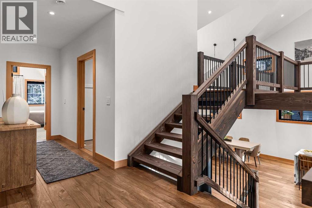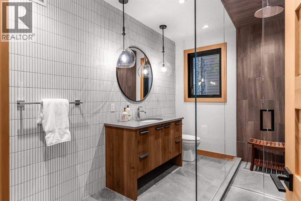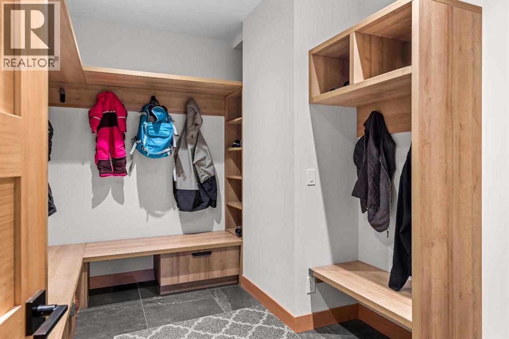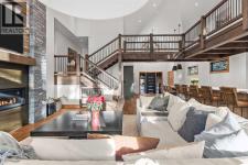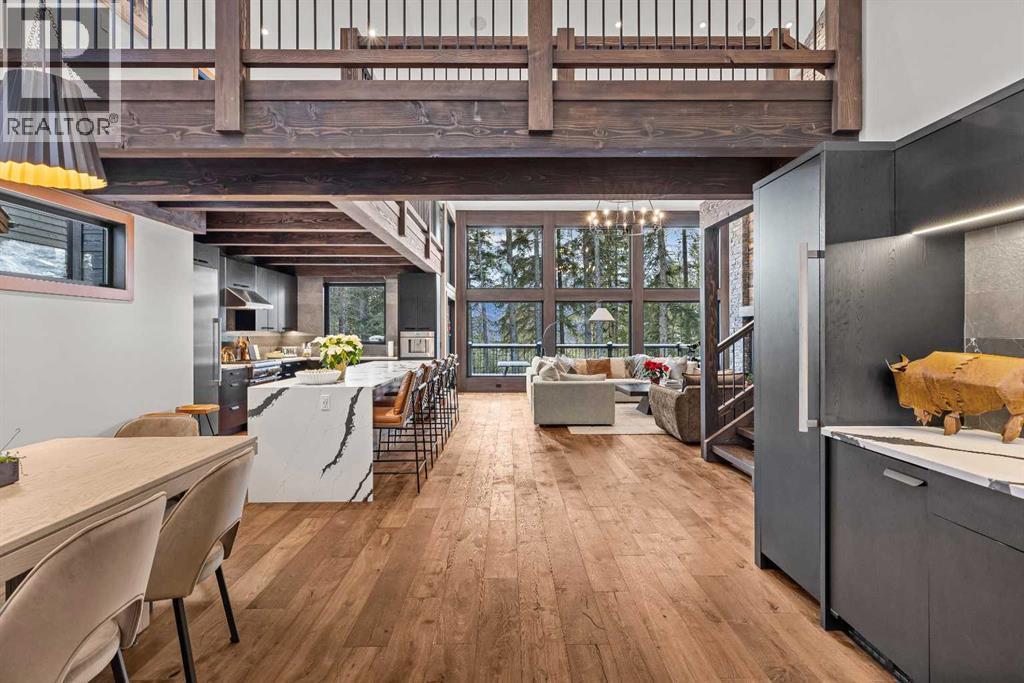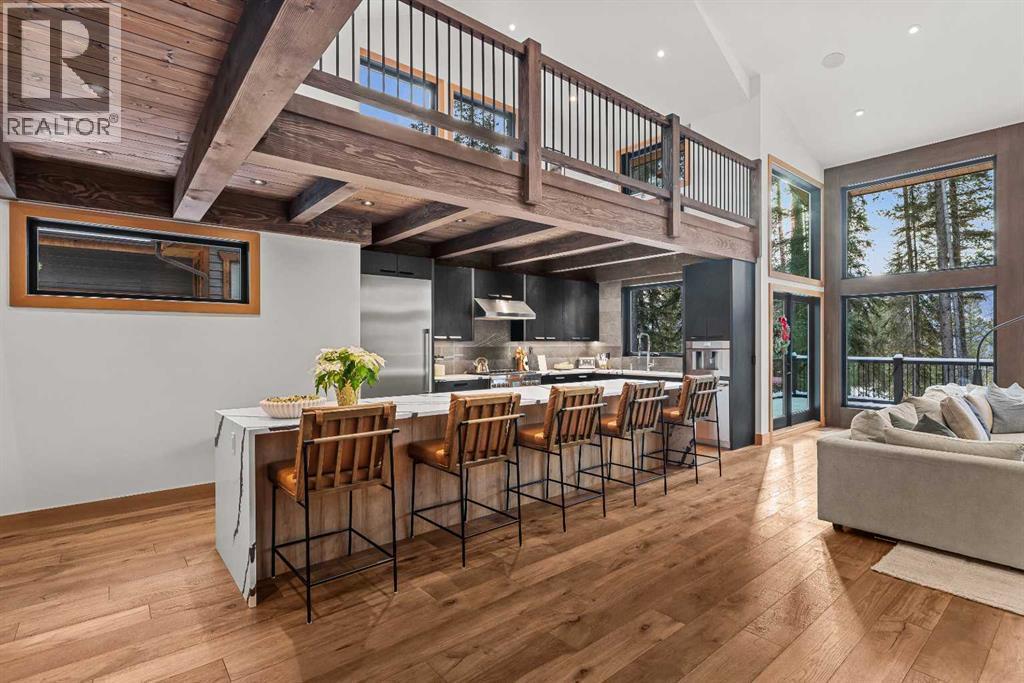 Constructed by Kidner Construction, this exceptional Silvertip near new residence blends refined mountain architecture with modern comfort, backing directly onto the 8th hole of the Silvertip Golf Course. Designed for both entertaining and large gatherings, the home features 5 bedrooms sleeping up to 14 guests, 4 bedrooms with private ensuites and a large bunk room with 2 sets of bunks. At the heart of the home, a dramatic timber-frame loft crowns the living space, creating a striking architectural focal point that complements the surrounding mountain setting.Expansive living areas open seamlessly to the outdoors, where a large main deck, two additional decks, and an expansive patio overlook the golf course and surrounding alpine landscape. Inside, the home is finished with triple-pane windows, Control4 whole-home automation, and carefully designed spaces that balance luxury, comfort, and performance.Additional lifestyle spaces include a family room, dedicated gym, and a fully outfitted garage with epoxy floors, providing both functionality and high-end finishing throughout. Offering just under 4,900 SF the home is thoughtfully distributed across multiple levels to provide excellent separation for family and guests. Located in the prestigious Silvertip community, this Kidner-built home combines exceptional craftsmanship with one of Canmore’s most sought-after golf course settings. Surrounded by world-class golf, mountain scenery, and the natural beauty that defines Silvertip, this property offers elevated mountain living in one of the Bow Valley’s most exclusive neighbourhoods. (id:6769)
