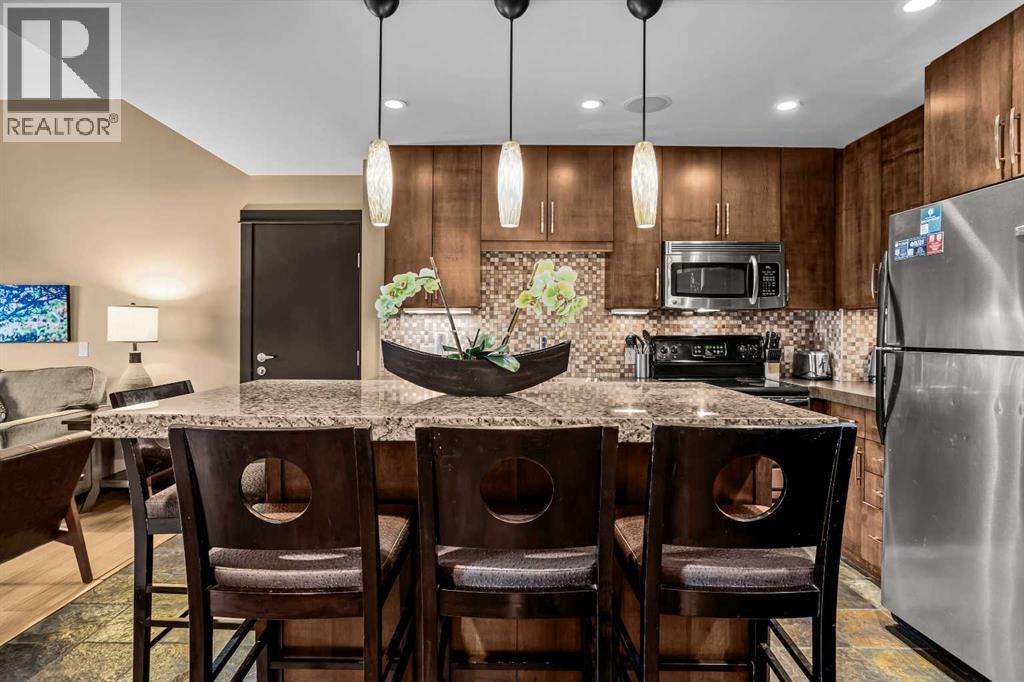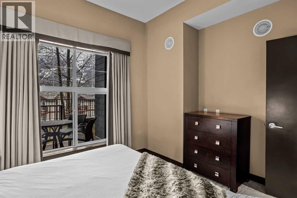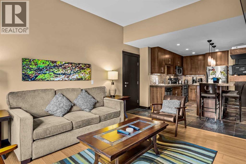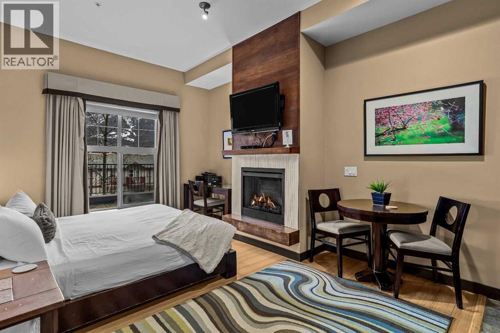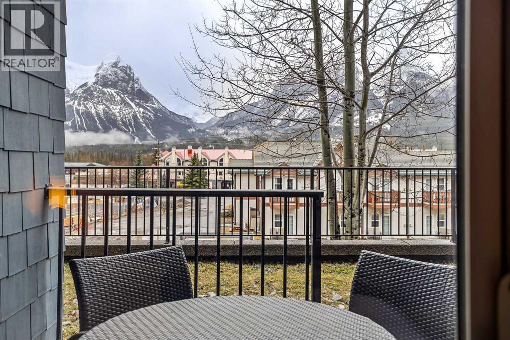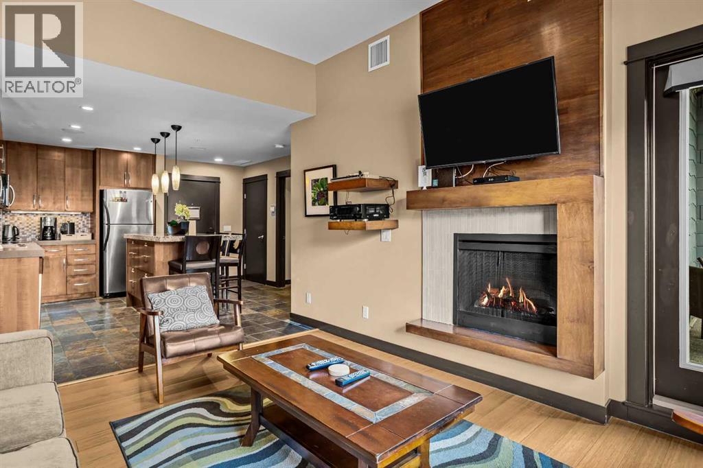 106 Rotation D -1818 Mountain Ave | Silver Creek Lodge. 12 weeks per yearYour Canmore Ownership at a Fraction of the Price. Well-positioned in Silver Creek Lodge, this 2-bedroom lock-off unit offers flexibility, functionality, and one of the most sought-after features in the building—ground floor access with pet-friendly convenience.This layout is ideal for both personal use and revenue generation, with a self-contained lock-off configuration that allows for separate rental of each side. Inside, the unit features a warm and inviting mountain aesthetic with stone countertops, stainless steel appliances, and a cozy fireplace, creating a comfortable space for guests and owners alike.What truly sets this unit apart is its direct walk-out to green space, providing easy outdoor access for pets and eliminating the need for elevators or common hallways—an increasingly desirable feature for both short-term guests and long-term stays.Silver Creek Lodge amenities include a fitness area, steam room, and outdoor hot tub, enhancing the overall guest experience and supporting strong rental appeal.Ground floor, lock-off, pet-friendly units are among the most desirable and limited opportunities in the building—making this a smart choice for investors and lifestyle buyers alike. (id:6769)