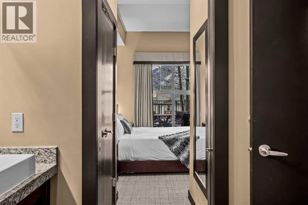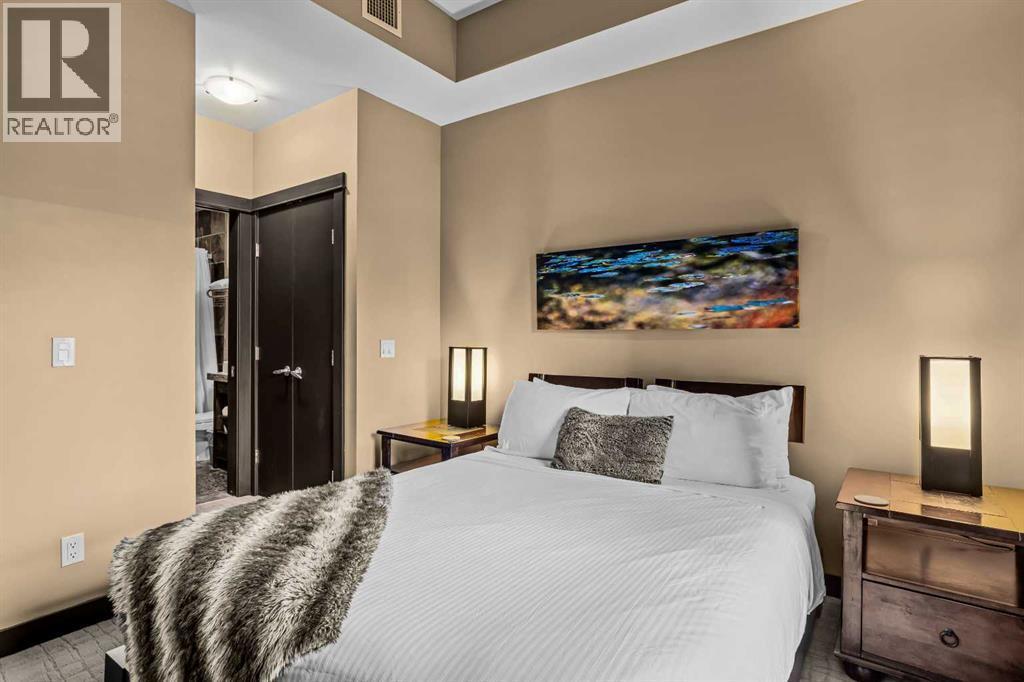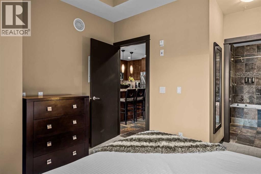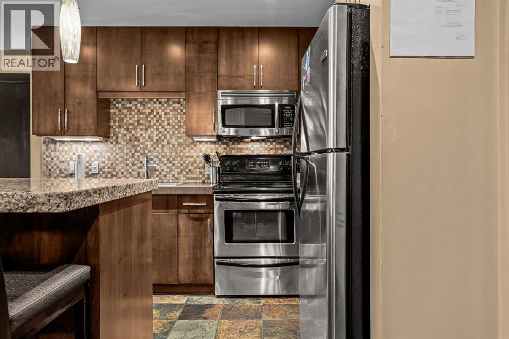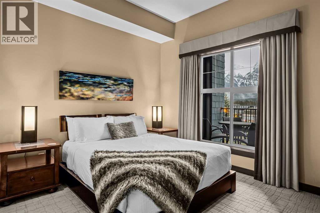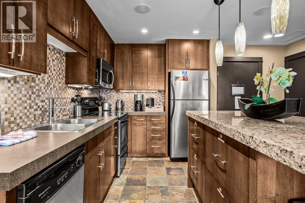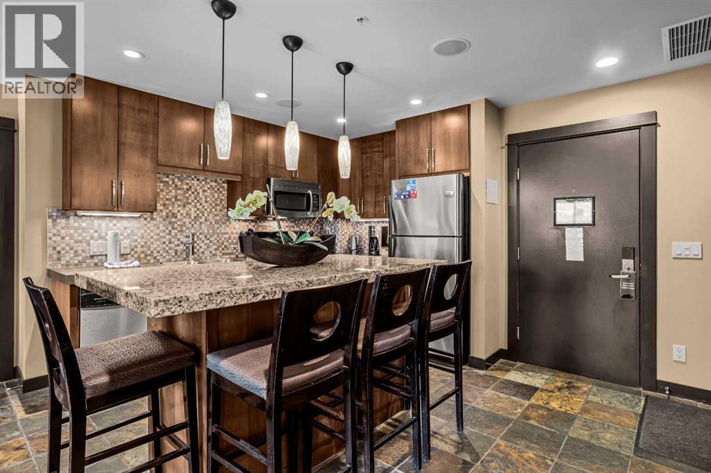 106 Rotation D -1818 Mountain Ave | Silver Creek Lodge. 12 weeks per yearYour Canmore Ownership at a Fraction of the Price. Well-positioned in Silver Creek Lodge, this 2-bedroom lock-off unit offers flexibility, functionality, and one of the most sought-after features in the building—ground floor access with pet-friendly convenience.This layout is ideal for both personal use and revenue generation, with a self-contained lock-off configuration that allows for separate rental of each side. Inside, the unit features a warm and inviting mountain aesthetic with stone countertops, stainless steel appliances, and a cozy fireplace, creating a comfortable space for guests and owners alike.What truly sets this unit apart is its direct walk-out to green space, providing easy outdoor access for pets and eliminating the need for elevators or common hallways—an increasingly desirable feature for both short-term guests and long-term stays.Silver Creek Lodge amenities include a fitness area, steam room, and outdoor hot tub, enhancing the overall guest experience and supporting strong rental appeal.Ground floor, lock-off, pet-friendly units are among the most desirable and limited opportunities in the building—making this a smart choice for investors and lifestyle buyers alike. (id:6769)