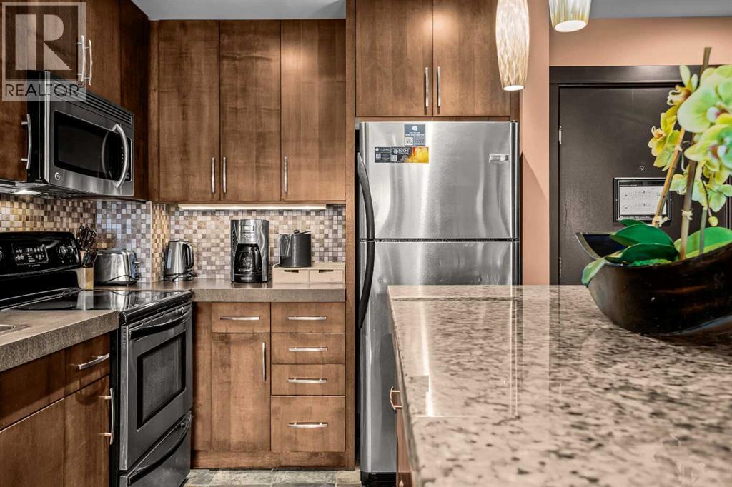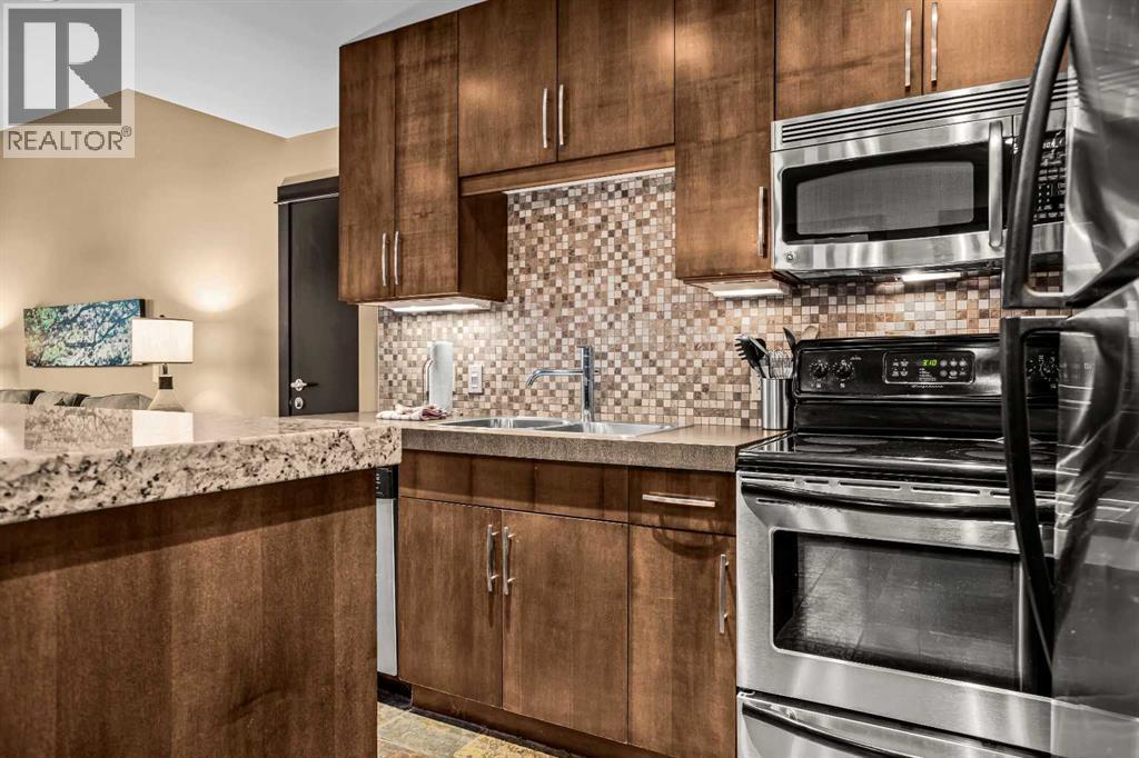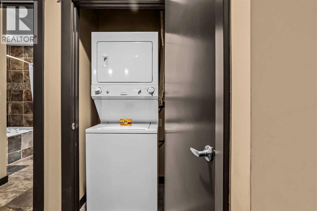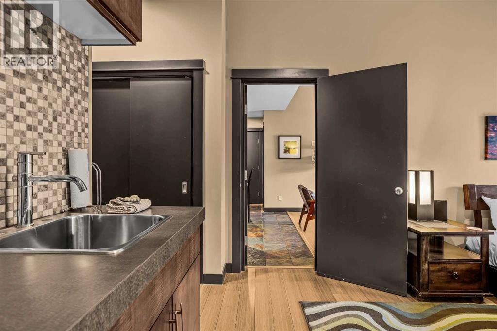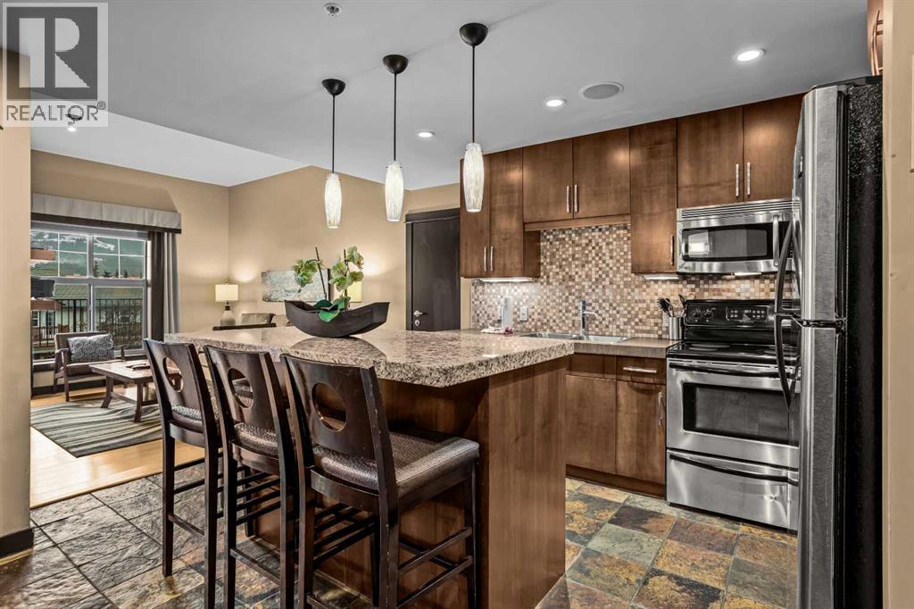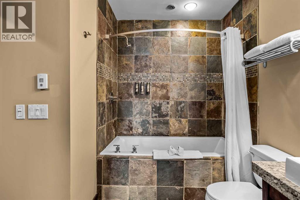 106 Rotation D -1818 Mountain Ave | Silver Creek Lodge. 12 weeks per yearYour Canmore Ownership at a Fraction of the Price. Well-positioned in Silver Creek Lodge, this 2-bedroom lock-off unit offers flexibility, functionality, and one of the most sought-after features in the building—ground floor access with pet-friendly convenience.This layout is ideal for both personal use and revenue generation, with a self-contained lock-off configuration that allows for separate rental of each side. Inside, the unit features a warm and inviting mountain aesthetic with stone countertops, stainless steel appliances, and a cozy fireplace, creating a comfortable space for guests and owners alike.What truly sets this unit apart is its direct walk-out to green space, providing easy outdoor access for pets and eliminating the need for elevators or common hallways—an increasingly desirable feature for both short-term guests and long-term stays.Silver Creek Lodge amenities include a fitness area, steam room, and outdoor hot tub, enhancing the overall guest experience and supporting strong rental appeal.Ground floor, lock-off, pet-friendly units are among the most desirable and limited opportunities in the building—making this a smart choice for investors and lifestyle buyers alike. (id:6769)