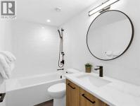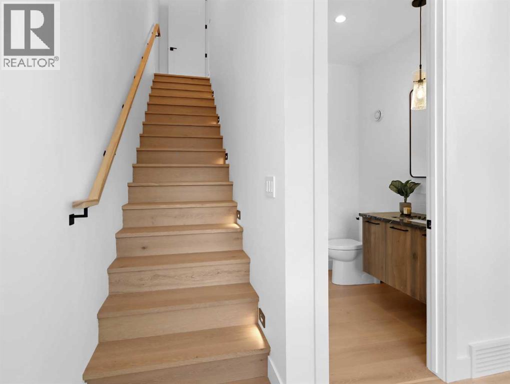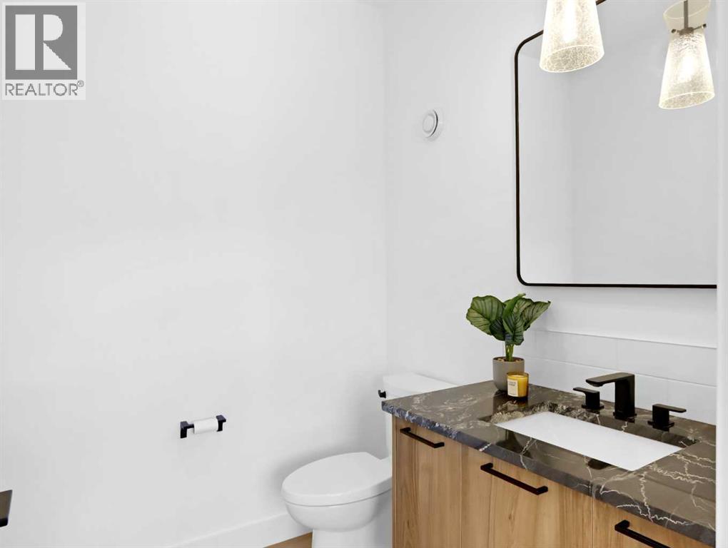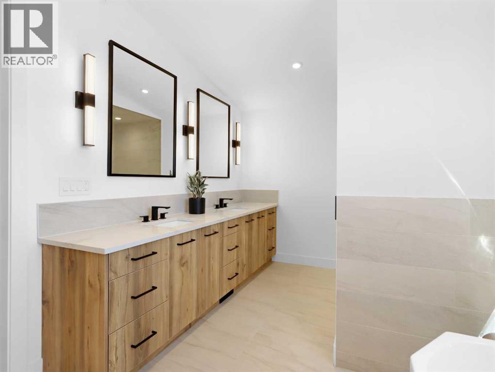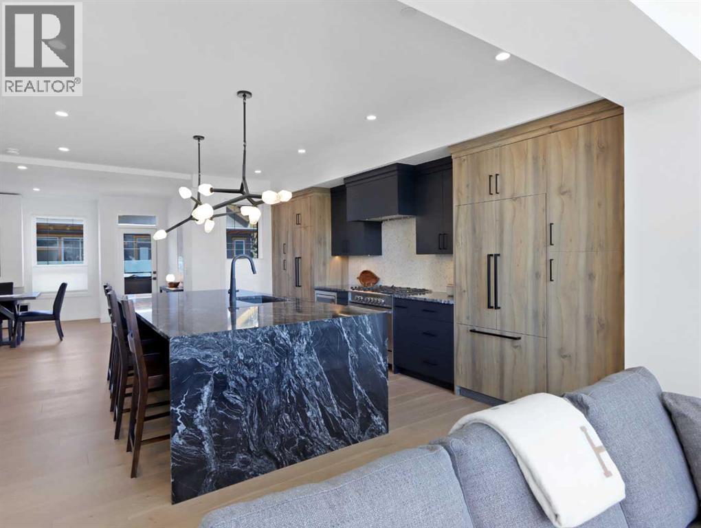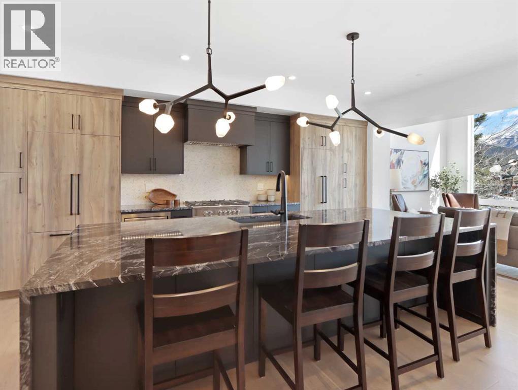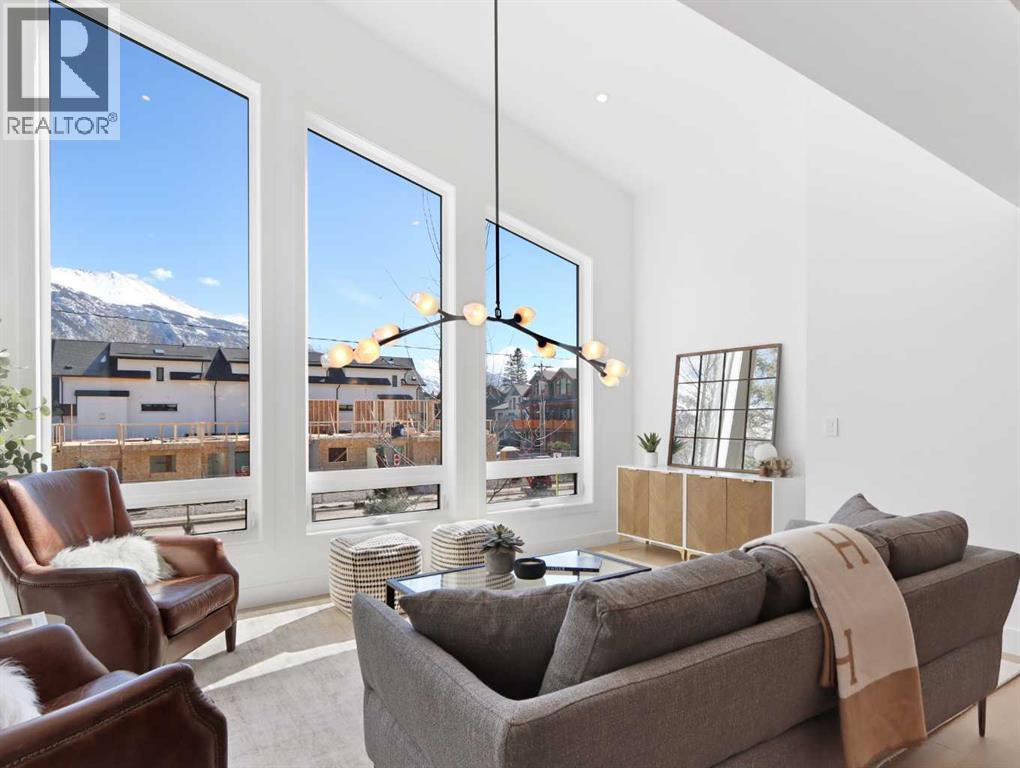 This stunning, never lived in 2,461 sq ft half duplex is a rare offering that blends luxury craftsmanship, thoughtful design, and breathtaking mountain views into one exceptional home. With 3 bedrooms, 4 baths, and an uncompromising level of finish throughout, this residence is purpose built for both elevated entertaining and peaceful everyday living. The main level welcomes you with an impressive open concept living space anchored by soaring vaulted ceilings and a dramatic wall of windows that frame the surrounding peaks. A true chef’s kitchen stands at the heart of the home, featuring premium appliances including two counter depth fridges and freezers, dual dishwashers, a sprawling island with custom organizers, and an abundance of workspace and storage. The dining area is designed for hosting, complemented by a warm, inviting electric fireplace and seamless access to the large view deck—perfect for morning coffee, evening cocktails, or simply soaking in the scenery. Also on the main level is a bright office nook with mountain views, a generous walk in pantry, and a stylish 2 piece powder room. Upstairs, the private primary retreat offers a serene escape with a spa inspired 5 piece ensuite, heated tile floors, and a spacious walk in closet complete with its own laundry. Every detail has been considered to maximize comfort and convenience. The ground level features a spacious and welcoming entry foyer leading to a well designed mud/gear room with built in cubbies and bench seating—ideal for mountain living. This level also includes a second laundry area with sink, two additional bedrooms (one with its own 3 piece ensuite), a separate 4 piece bath, and access to the epoxy finished double garage, all fully heated with in floor heat. The home’s mechanical systems are equally impressive, offering high efficiency performance with three independent thermostats—one for each floor—ensuring personalized comfort throughout.Additional highlights include:• Under tile heating in the primary ensuite• Rough in for EV charger• Low maintenance landscaping and exterior• No condo fees or bylaws• Exceptional natural light from oversized windows• Easy access to Canmore’s river pathways and a short walk to Main StreetThis home delivers the perfect blend of luxury, functionality, and low maintenance mountain living. Every finish, fixture, and design choice reflects quality and attention to detail. A truly exceptional opportunity in one of Canmore’s most desirable locations. (id:6769)