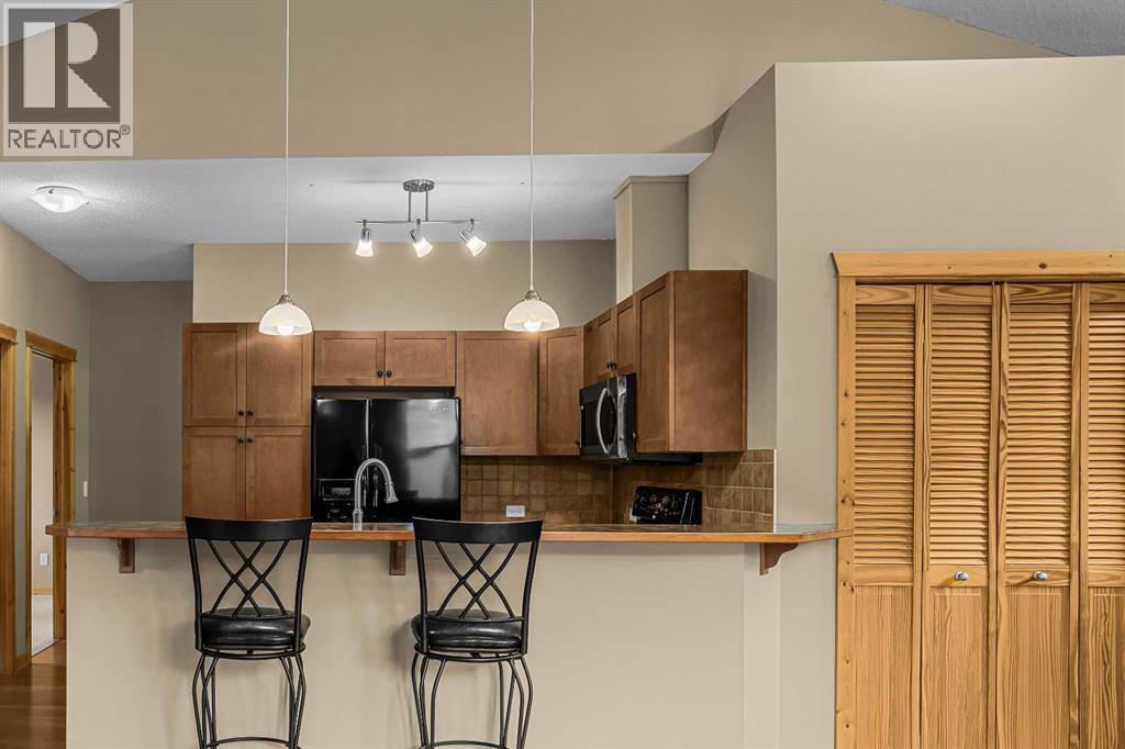 This thoughtfully designed 3 bedroom, 2 bathroom townhome offers the rare convenience of single-level living, with all primary living spaces set on one level. From the entry where you’ll find access to the single car garage, you’re welcomed upstairs to a bright and open main living space. Vaulted ceilings and large windows create an airy feel, while bringing in plenty of natural light and offering beautiful mountain views. The open-concept layout flows seamlessly from the kitchen to the dining and living areas, leading out to a private balcony an ideal spot to relax and take in the surrounding scenery and mountain views. With three well-appointed bedrooms and two full bathrooms all on the main level, the home offers excellent flexibility for full-time living all with the ease of one-floor functionality. Practical features like the single car garage and additional storage ensure there’s plenty of room for your mountain lifestyle gear, without the upkeep of a larger home. Located just steps from the future Gateway at Three Sisters, this home is perfectly positioned to enjoy upcoming shopping, dining, and amenities, adding long-term value and everyday convenience. This unit is not zoned for short term rentals. (id:6769)