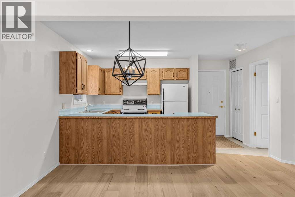 This one bedroom, one bath condo is located in charming St. Michaels Place, a well built 12 unit condo complex located only a block from Main Street in downtown Canmore. Unit 3 is a quiet ground level residence featuring its own private front door entry off a welcoming courtyard. Inside you will find a bright and spacious single level layout. Recent upgrades include beautiful engineered hardwood flooring and durable linoleum. The open concept kitchen, dining and living area are ideal for comfortable everyday living, while the generously sized bedroom offers a peaceful retreat. A laundry/storage room adds valuable functionality. One exterior parking stall is included, entry from the lane. Enjoy easy walking access to trails along the Bow River, nearby park and amenities of downtown Canmore. This property offers a wonderful balance of comfort, quiet, and community in a highly desirable location. Age restriction 40+ (id:6769)