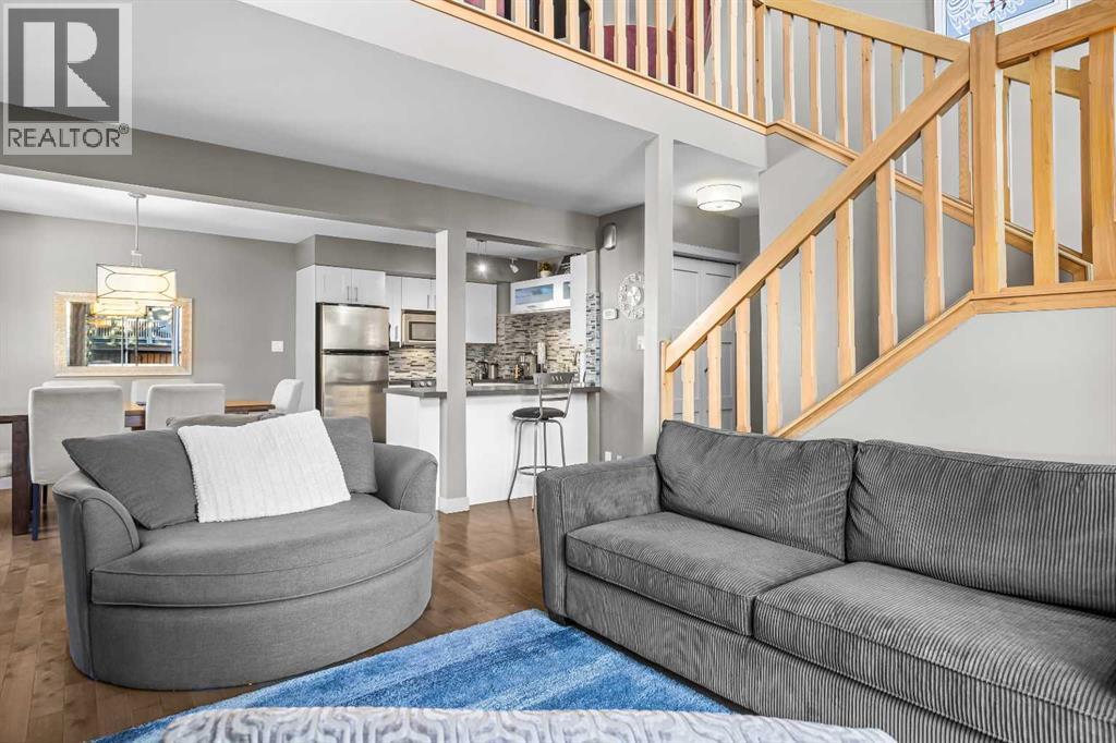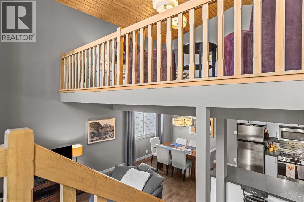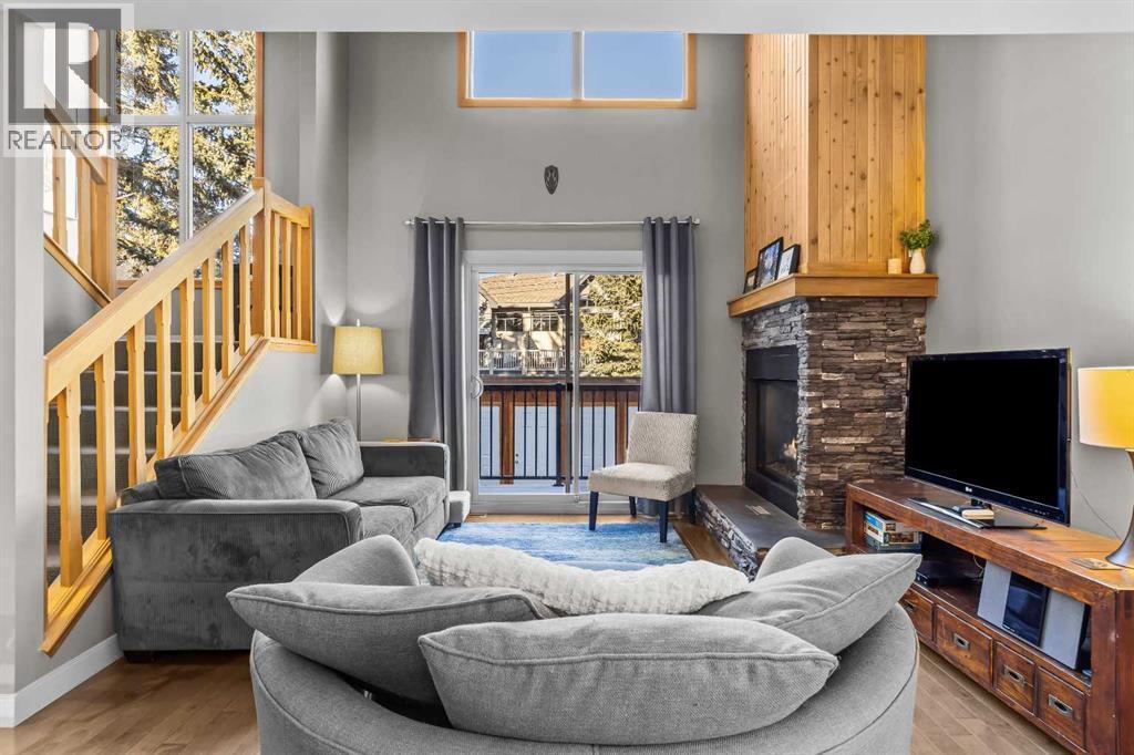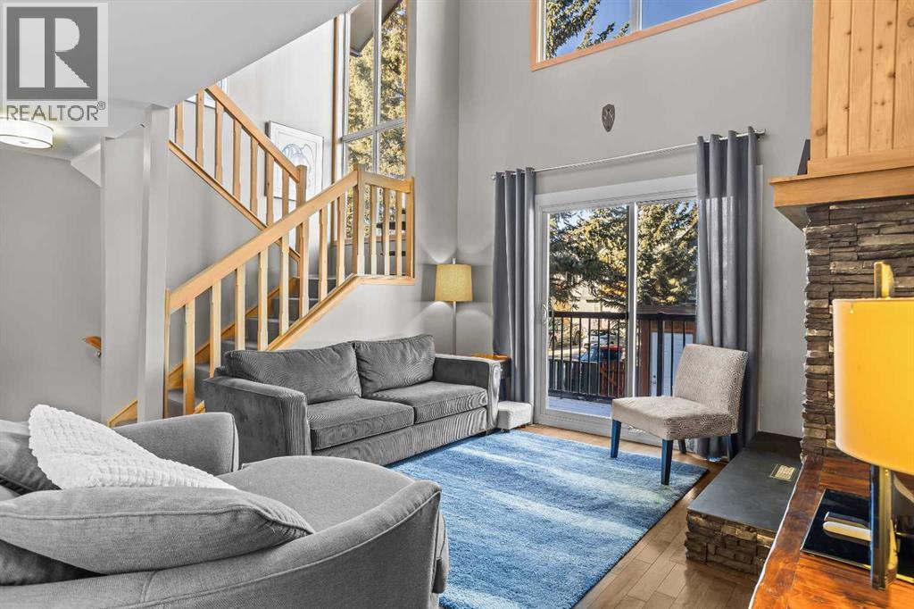 Located in the heart of South Canmore, this 3-level townhome offers an exceptional location just steps from downtown Canmore, the Bow River, and nearby schools. Set in one of the community’s most walkable neighbourhoods, the home provides convenient access to trails, parks, restaurants, and everyday amenities. The main living area features an open-concept layout with large windows that bring in abundant natural light. Hardwood flooring and traditional Canmore mountain finishes create a warm and inviting atmosphere, while the Rundle stone fireplace serves as the focal point of the living room. Above the living area, the lofted primary bedroom adds architectural character while overlooking the living space below, creating a unique and airy retreat. The three-level layout provides comfortable separation of space, ideal for both full-time living or a mountain getaway. Additional features include a parking stall located directly out front and an assigned storage shed, perfect for storing your mountain toys. A fantastic opportunity to own in South Canmore, combining classic mountain character with an unbeatable location close to the Bow River and downtown. (id:6769)