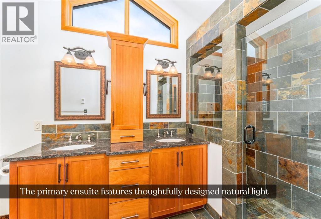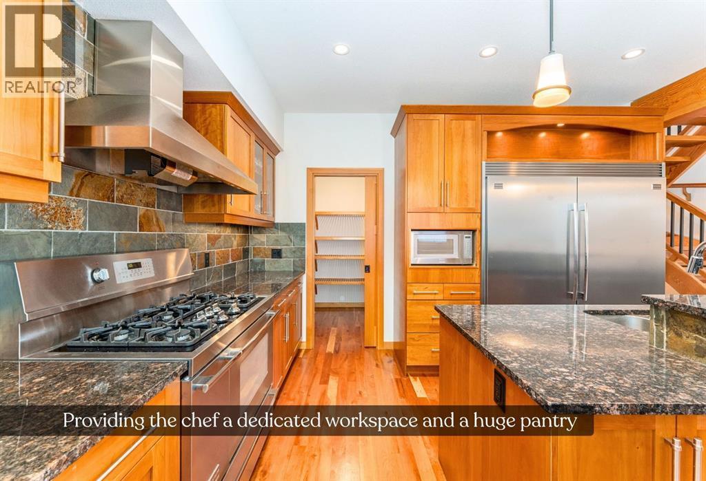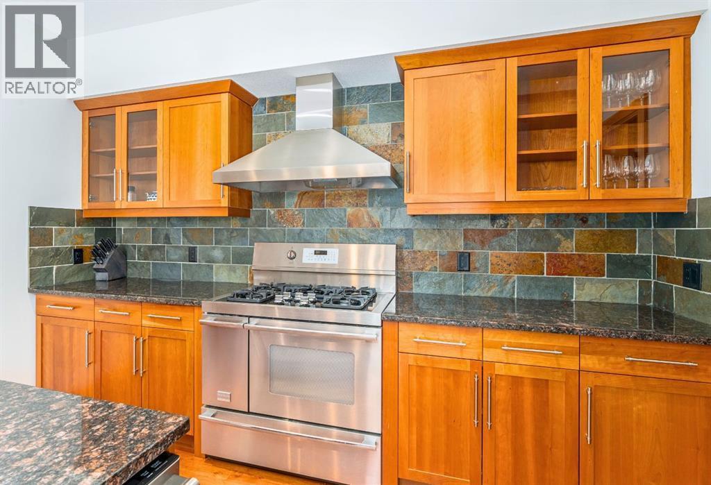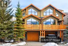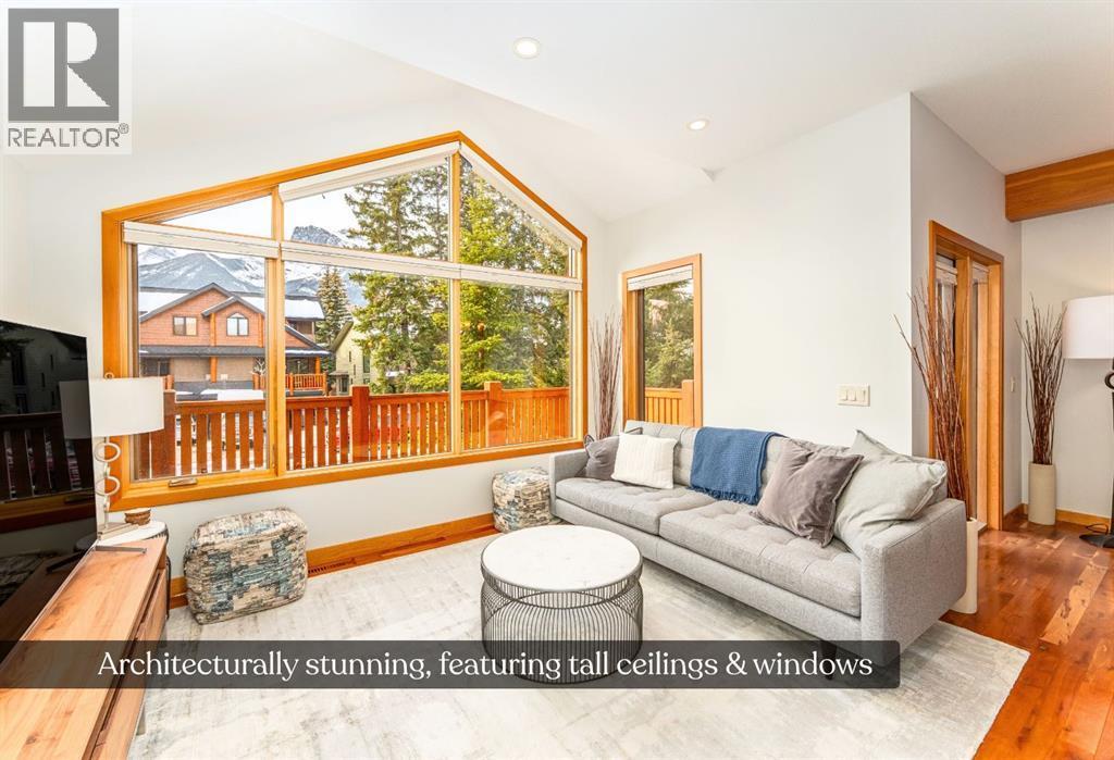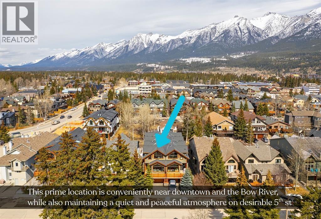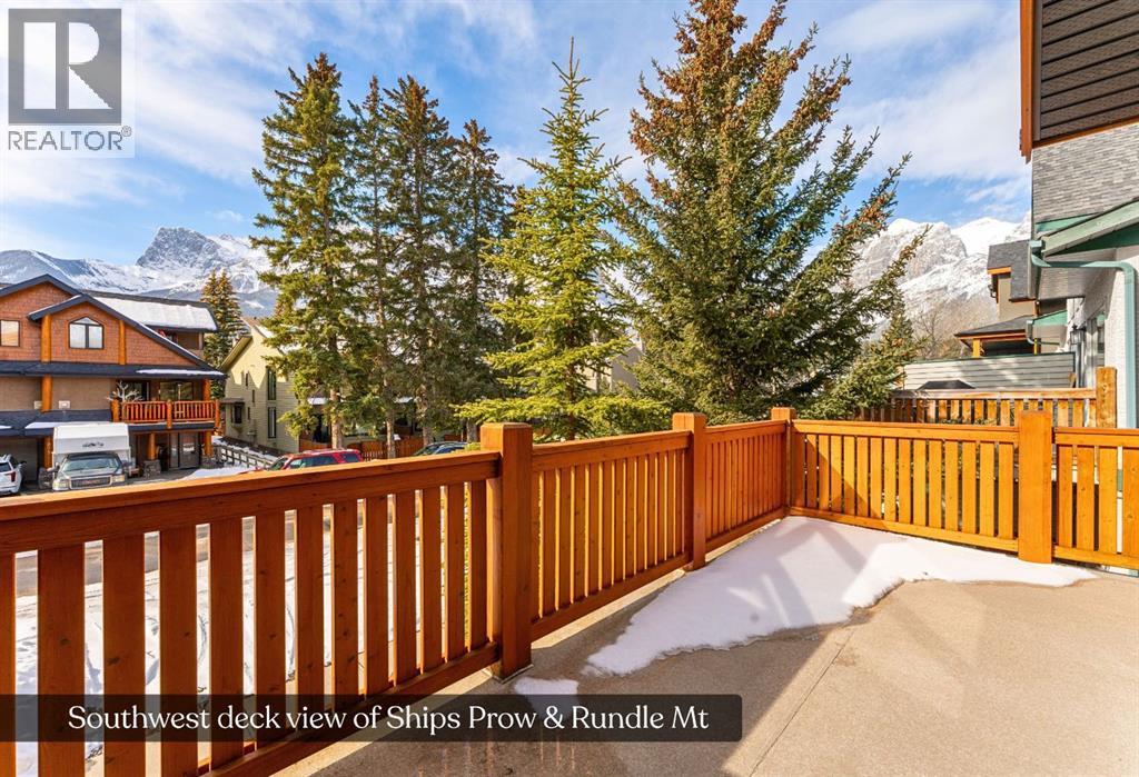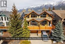 Bathed in sunshine and framed by the drama of the Canadian Rockies, this exceptional south-facing Canmore townhome, built by the local Elk Run Custom Homes is a masterclass in craftsmanship, comfort, and quiet luxury. Perfectly positioned on 5th Street in the highly sought-after, sunny South Canmore, this home offers the rare balance of serenity and accessibility, just steps from the Bow River and a short, easy stroll to downtown Canmore. The main floor welcomes you with soaring vaulted ceilings and a flood of natural light pouring through expansive windows, illuminating the open-concept living space and the open wood staircase. The living room is both grand and inviting, anchored by a striking Rundlestone gas fireplace and framed by sweeping mountain vistas that stretch from the iconic Three Sisters to the majestic Rundle Range. Designed for both everyday living and entertaining, the chef’s kitchen is a true showpiece. Outfitted with upgraded appliances—including a full-size fridge and freezer, gas range, dishwasher, and wine fridge—all complemented by granite countertops, abundant prep space, and a generous walk-in pantry that keeps everything effortlessly organized. Each of the three spacious bedrooms is a private retreat, complete with its own ensuite bathroom, offering comfort and privacy for family and guests alike. Thoughtful touches like custom powered triangle blinds in the primary suite and living room enhance both style and function. Step outside onto the expansive deck and take in the breathtaking alpine mountain scenery—your front-row seat to some of Canmore’s most iconic views. Whether it’s a quiet morning coffee or an evening gathering under the stars, this outdoor space is designed to inspire. Additional features include air conditioning, forced air heating, and in-slab heating for ultimate year-round comfort, along with rich hardwood flooring throughout. The attached heated garage ensures convenience in every season, and additional street parking is readily available. This is more than a home—it’s a lifestyle defined by natural beauty, refined design, and effortless access to everything Canmore has to offer.  Call and view today! (id:6769)