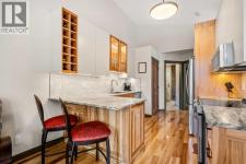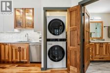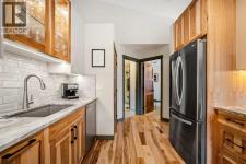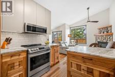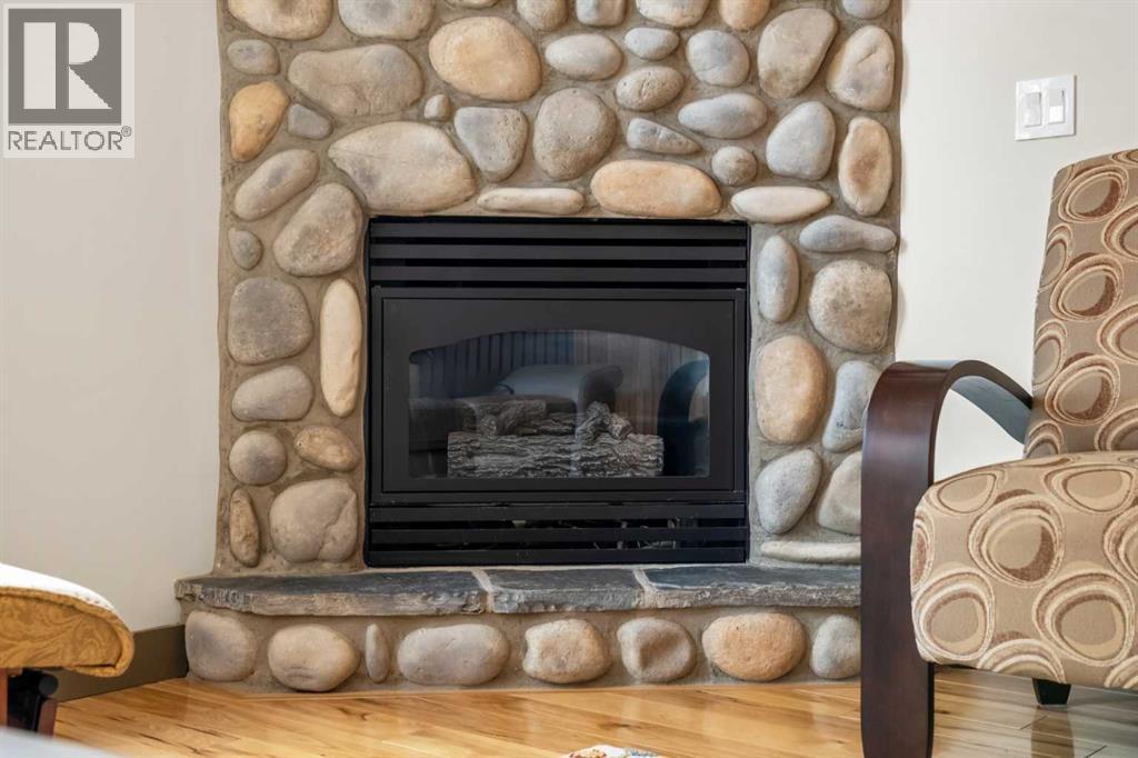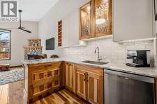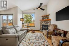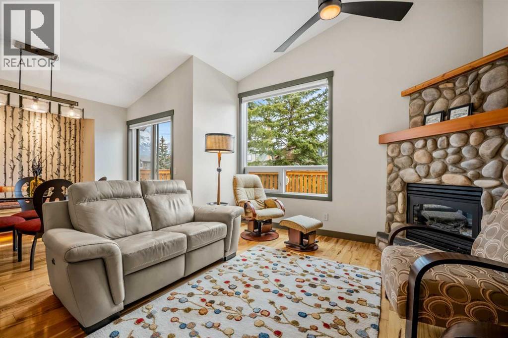 Fully furnished & turn-key, this meticulously renovated executive townhome in coveted South Canmore is a rare find — just steps from the Bow River with breathtaking mountain views and no detail left untouched.Located in one of Canmore's most desirable neighbourhoods, this beautifully updated 4-plex unit has been comprehensively transformed by the original owner with premium finishes throughout. Rich Hickory hardwood floors and custom Hickory interior doors flow through the open-concept living and dining area beneath soaring vaulted ceilings, anchored by a stunning river rock fireplace. The private deck and living room frame spectacular Rocky Mountain views year-round.The custom chef's kitchen is a true showpiece featuring quartzite countertops, under-cabinet lighting, and a full suite of premium appliances including an LG induction range, Bosch dishwasher, French door LG refrigerator, and Whirlpool microwave. Thoughtful design details include all-lower-drawer cabinetry, a dedicated spice cabinet, integrated recycling, garburator, and a custom pantry complete with wine racks and dedicated electrical outlets.The main floor hosts the primary bedroom alongside same-floor laundry — offering effortless everyday living. The lower level features a generous guest bedroom with private ensuite and the added luxury of in-floor radiant heating. Both bathrooms are completely new with quartzite countertops and all-new plumbing fixtures throughout. Pre-wiring in the stairwell for a future chair lift, USB-integrated outlets, and night light receptacles reflect the thoughtful, forward-thinking nature of this renovation.All-new Hunter Douglas window coverings, custom-built railings, new fans, all-new light fixtures, fresh interior paint, and a new hot water heater complete this exceptional package. Street-side access with an attached garage and low-maintenance stucco exterior round out a property designed for sophisticated, lock-and-leave mountain living.South Canmore offers walk able access to the Bow River pathways, boutique dining, and world-class recreation. Sold fully furnished — simply arrive and enjoy everything the Canadian Rockies have to offer. *Note: No Nightly/short term rentals allowed* (id:6769)