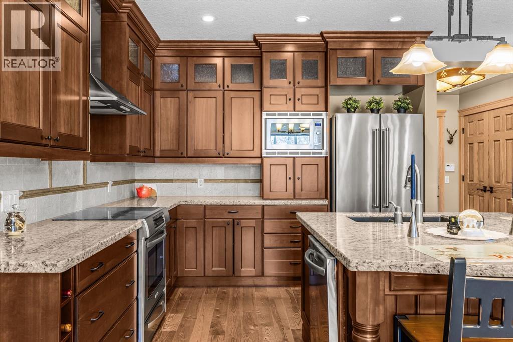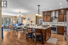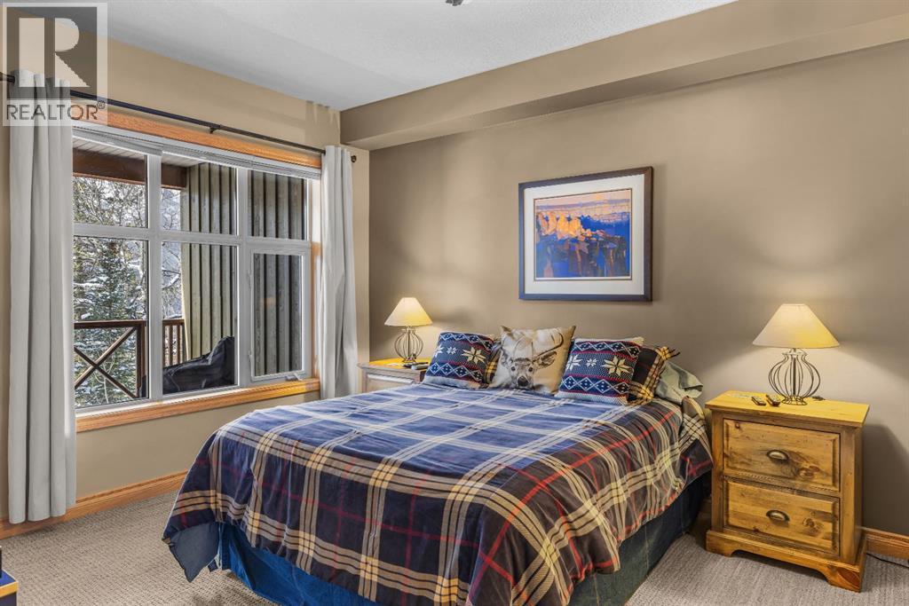 The perfect definition of a Rocky Mountain retreat, this beautifully finished 3-bedroom, 2-bathroom condo in Silvertip pairs stunning southwest mountain views with warmth, privacy, and exceptional lifestyle appeal. Located in one of the most peaceful parts of Canmore, with views from every window and two private covered balconies, this home is immersed in the beauty of Canmore.The open-concept living space is warm and inviting, featuring gorgeous hardwood floors, custom woodwork, a cozy fireplace, and large windows that keep the views front and centre. The kitchen is both stylish and functional, with cherry wood cabinetry, granite countertops, a large island, travertine backsplash, and stainless steel appliances.The spacious primary suite is a true retreat, complete with a walk-in closet, private view deck, and an ensuite that adds a rare wellness element to condo living, with an infrared sauna and hot tub as well as dual vanities and a walk-in shower. Thoughtfully designed, the second and third bedrooms are set apart from the primary by the living area, offering excellent privacy for family or guests. A well appointed second full bath is located between the two guest rooms. Rounding out this rare offering are a spacious laundry room, 2 underground titled parking stalls and 2 storage lockers. Whether you’re looking for a full-time home or the perfect mountain escape, this is a standout opportunity in one of Canmore’s most desirable communities. (id:6769)