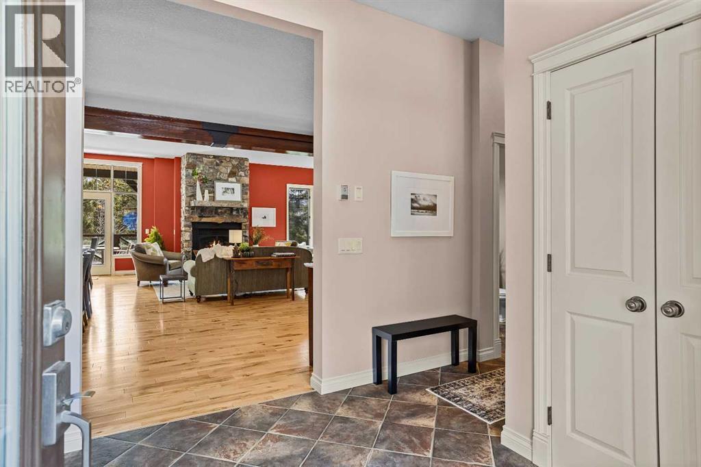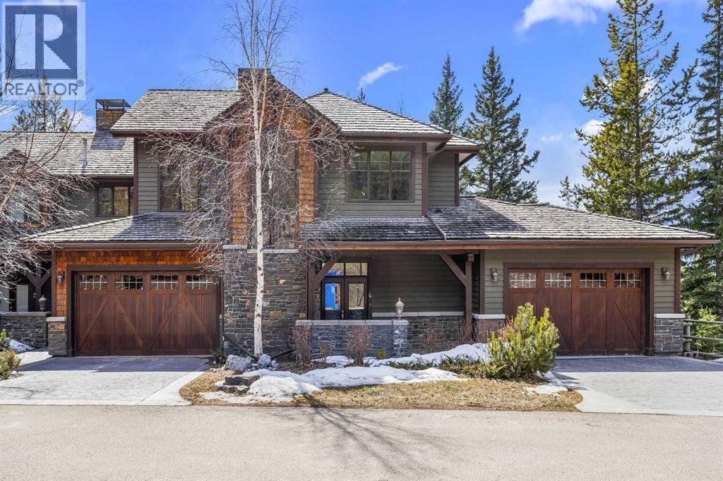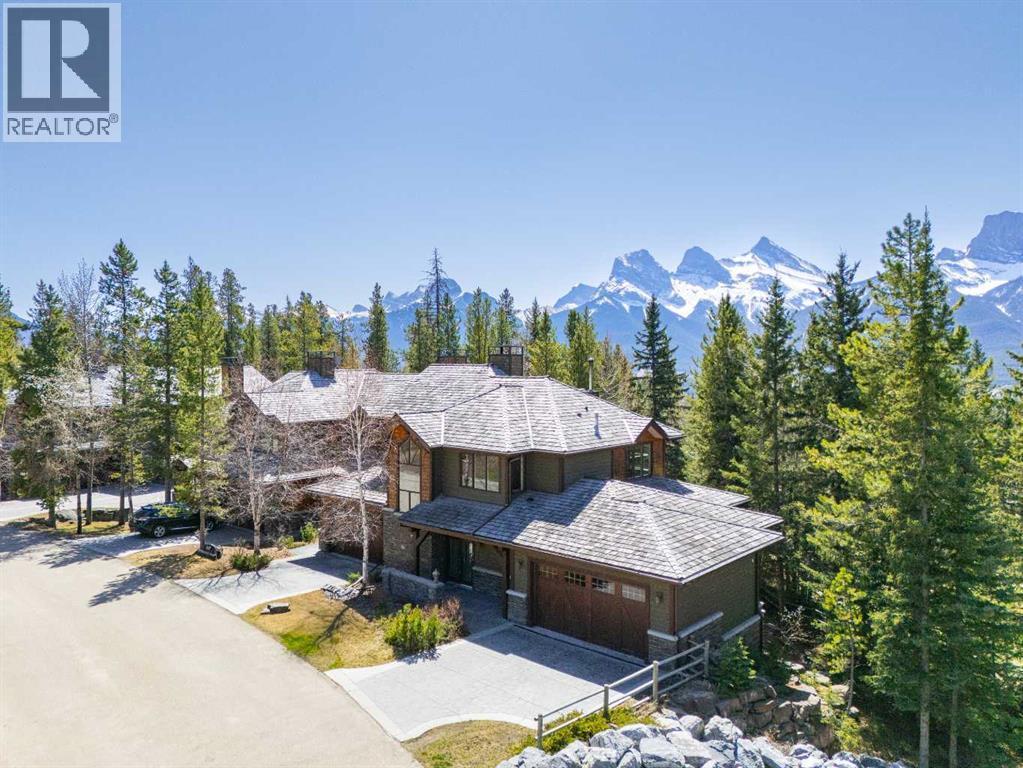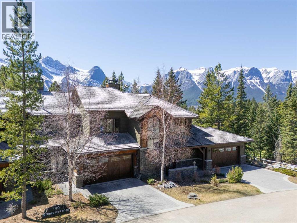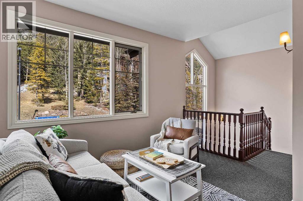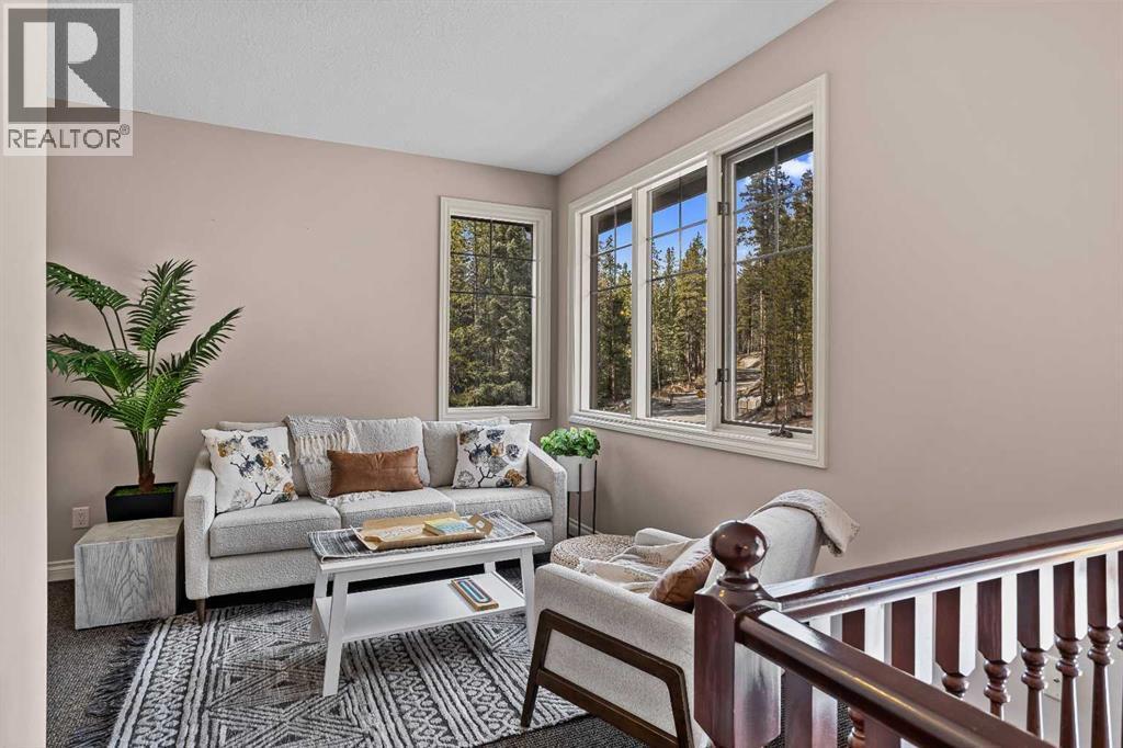 Some properties in Canmore have a great view. This one has the whole picture.Sitting at the quiet end of Stone Creek Road, this 3,000+ sq ft southwest-facing end-unit is perched up in the trees above the Bow Valley, looking out over the 9th tee of Silvertip Golf Course and the full south range beyond. Walk out your front door and you are straight onto the trail network. No neighbours behind, no traffic coming through, just the creek, the trees, and the mountains in every direction.From the moment you step inside, the pace of life slows down. The main floor is anchored by a Rundlestone fireplace, with big windows that bring the outside in and an open-concept kitchen and dining area designed for easy entertaining, framing uninterrupted views of the valley below from morning through to sunset. Tucked into the trees on the main level, a window-wrapped office offers a genuinely inspiring place to spend a morning.Upstairs, a tranquil sitting area gazes over the creek bed toward the peaks, alongside 2 spacious bedrooms and a primary retreat with a private balcony and elevated mountain views. The steam shower ensuite adds a layer of comfort that makes this space feel like a proper escape from the everyday.The walkout lower level includes a 3rd bedroom and a generous unfinished space with in-floor heating already roughed in, offering real potential for a 4th bedroom, media room, or whatever your lifestyle calls for. Large windows and direct patio access keep it bright and connected to the outdoors.With the Silvertip clubhouse, restaurant, and market just a short walk away and Canmore's trail network right at your door, this property offers a balance that is genuinely hard to find in the mountains. Privacy without isolation. Tranquility without compromise. Properties at this end of the road, up in the trees with this kind of setting, do not come available often. (id:6769)