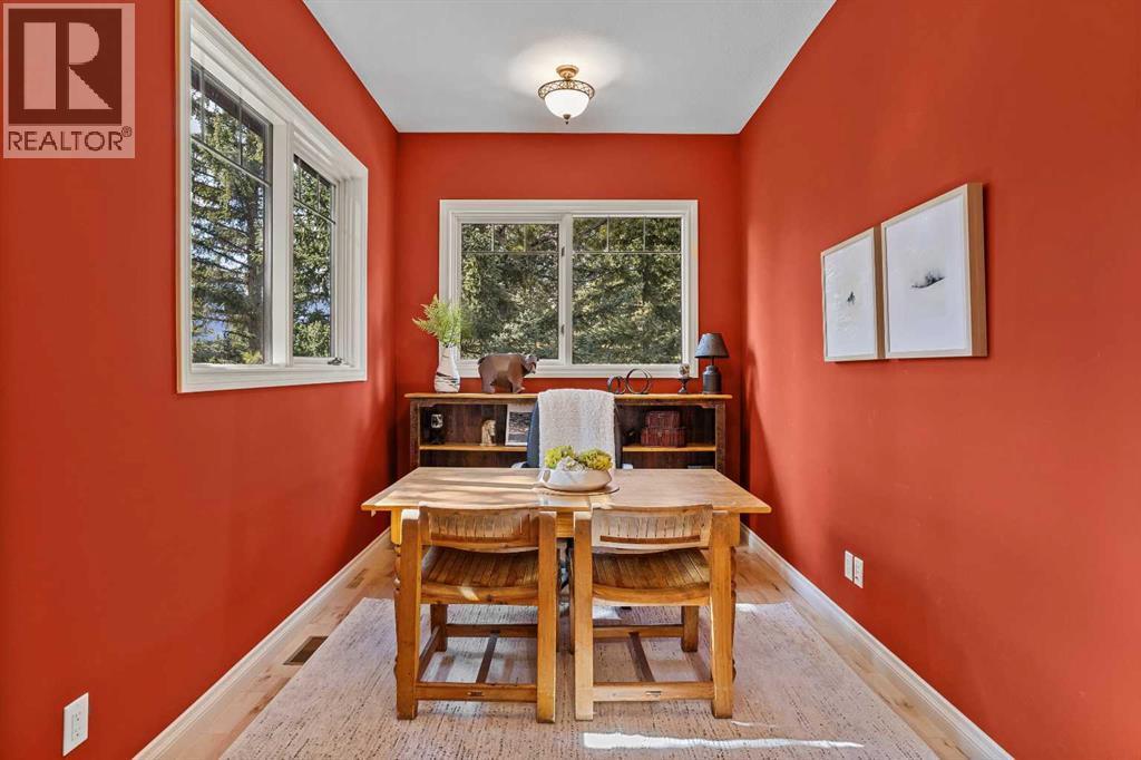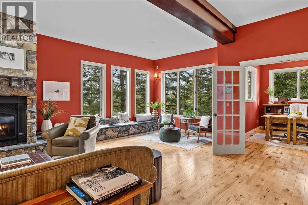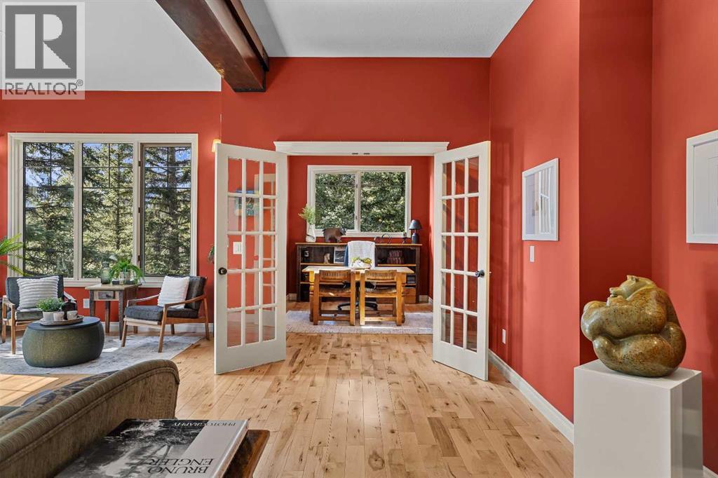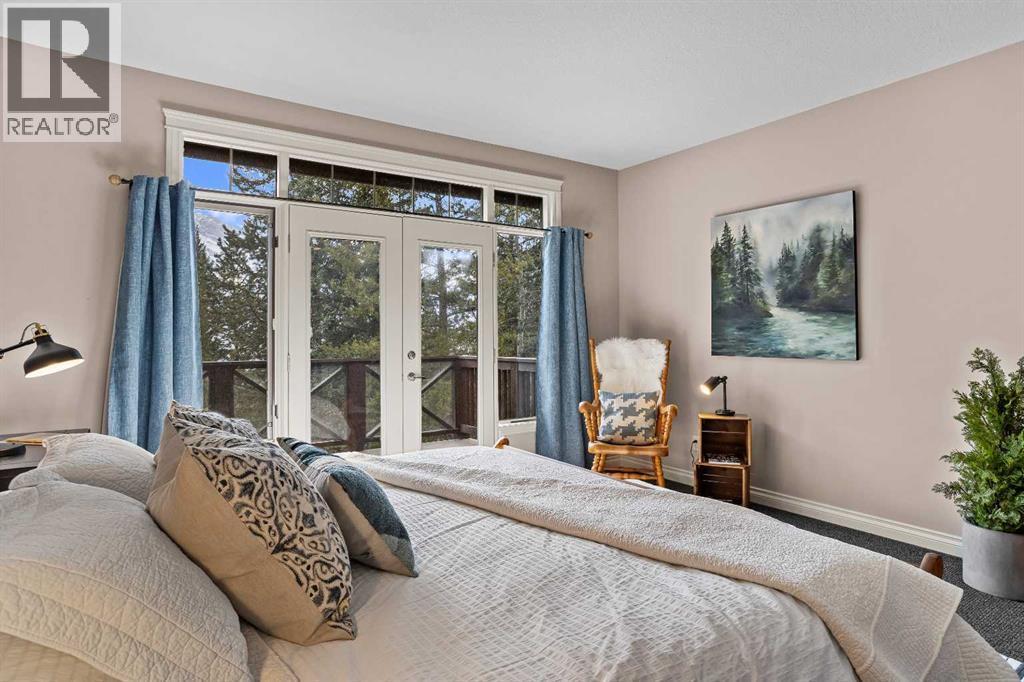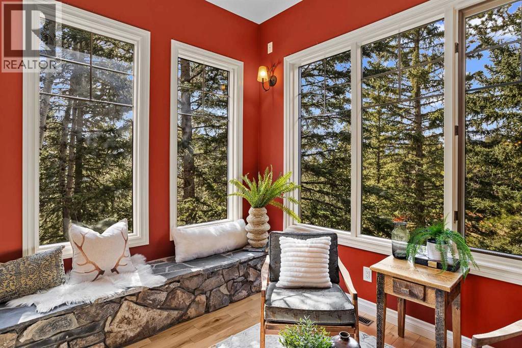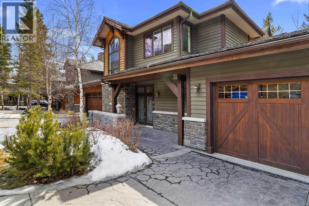 Some properties in Canmore have a great view. This one has the whole picture.Sitting at the quiet end of Stone Creek Road, this 3,000+ sq ft southwest-facing end-unit is perched up in the trees above the Bow Valley, looking out over the 9th tee of Silvertip Golf Course and the full south range beyond. Walk out your front door and you are straight onto the trail network. No neighbours behind, no traffic coming through, just the creek, the trees, and the mountains in every direction.From the moment you step inside, the pace of life slows down. The main floor is anchored by a Rundlestone fireplace, with big windows that bring the outside in and an open-concept kitchen and dining area designed for easy entertaining, framing uninterrupted views of the valley below from morning through to sunset. Tucked into the trees on the main level, a window-wrapped office offers a genuinely inspiring place to spend a morning.Upstairs, a tranquil sitting area gazes over the creek bed toward the peaks, alongside 2 spacious bedrooms and a primary retreat with a private balcony and elevated mountain views. The steam shower ensuite adds a layer of comfort that makes this space feel like a proper escape from the everyday.The walkout lower level includes a 3rd bedroom and a generous unfinished space with in-floor heating already roughed in, offering real potential for a 4th bedroom, media room, or whatever your lifestyle calls for. Large windows and direct patio access keep it bright and connected to the outdoors.With the Silvertip clubhouse, restaurant, and market just a short walk away and Canmore's trail network right at your door, this property offers a balance that is genuinely hard to find in the mountains. Privacy without isolation. Tranquility without compromise. Properties at this end of the road, up in the trees with this kind of setting, do not come available often. (id:6769)