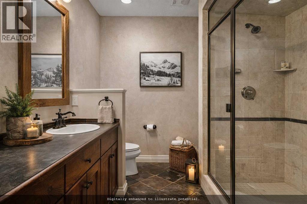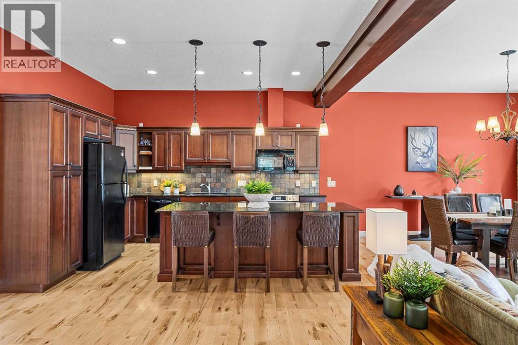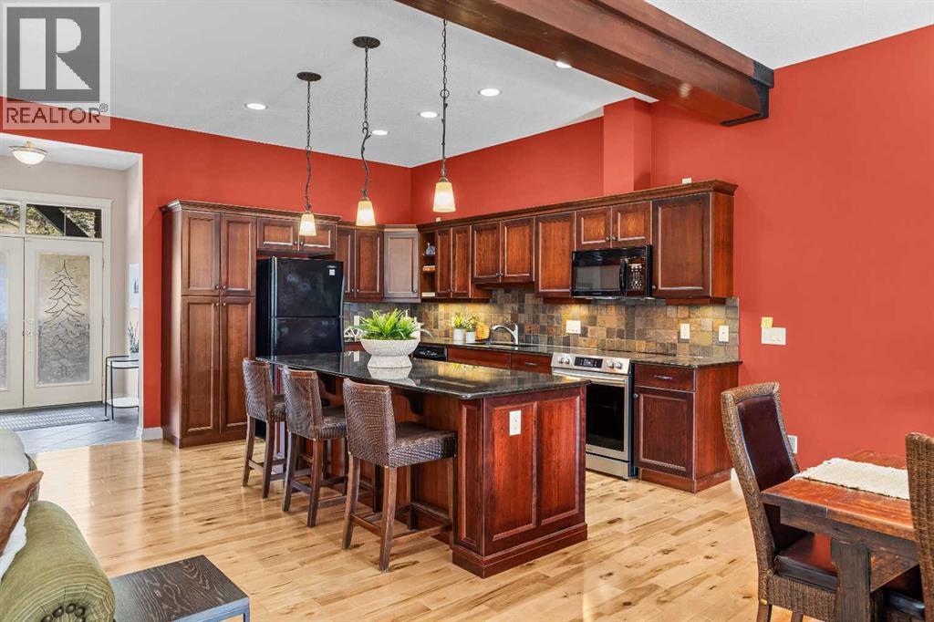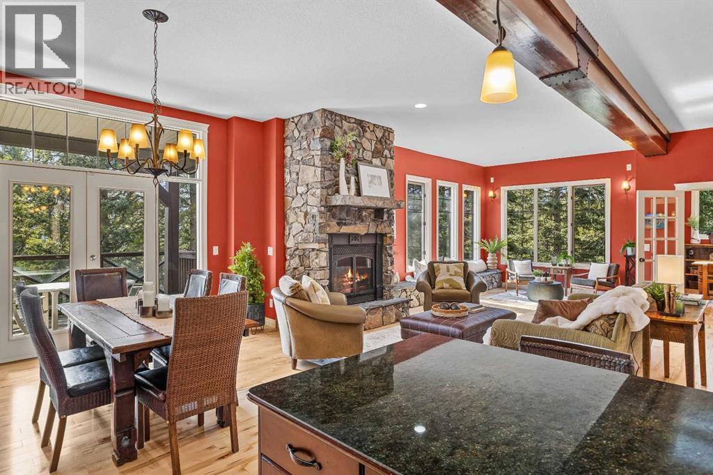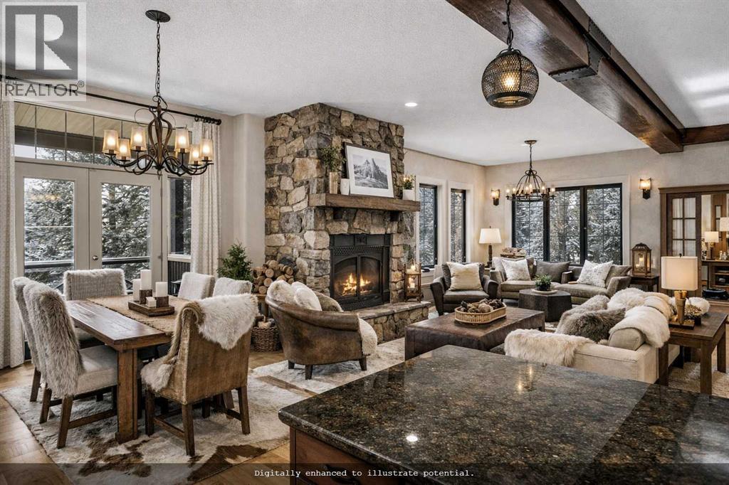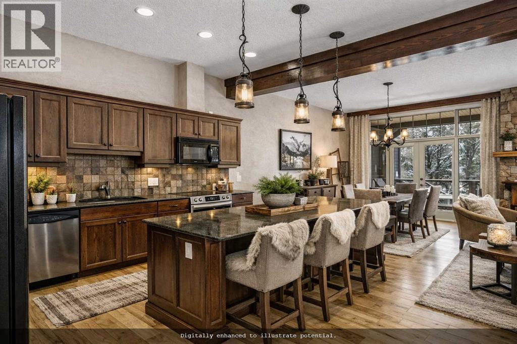 Some properties in Canmore have a great view. This one has the whole picture.Sitting at the quiet end of Stone Creek Road, this 3,000+ sq ft southwest-facing end-unit is perched up in the trees above the Bow Valley, looking out over the 9th tee of Silvertip Golf Course and the full south range beyond. Walk out your front door and you are straight onto the trail network. No neighbours behind, no traffic coming through, just the creek, the trees, and the mountains in every direction.From the moment you step inside, the pace of life slows down. The main floor is anchored by a Rundlestone fireplace, with big windows that bring the outside in and an open-concept kitchen and dining area designed for easy entertaining, framing uninterrupted views of the valley below from morning through to sunset. Tucked into the trees on the main level, a window-wrapped office offers a genuinely inspiring place to spend a morning.Upstairs, a tranquil sitting area gazes over the creek bed toward the peaks, alongside 2 spacious bedrooms and a primary retreat with a private balcony and elevated mountain views. The steam shower ensuite adds a layer of comfort that makes this space feel like a proper escape from the everyday.The walkout lower level includes a 3rd bedroom and a generous unfinished space with in-floor heating already roughed in, offering real potential for a 4th bedroom, media room, or whatever your lifestyle calls for. Large windows and direct patio access keep it bright and connected to the outdoors.With the Silvertip clubhouse, restaurant, and market just a short walk away and Canmore's trail network right at your door, this property offers a balance that is genuinely hard to find in the mountains. Privacy without isolation. Tranquility without compromise. Properties at this end of the road, up in the trees with this kind of setting, do not come available often. (id:6769)