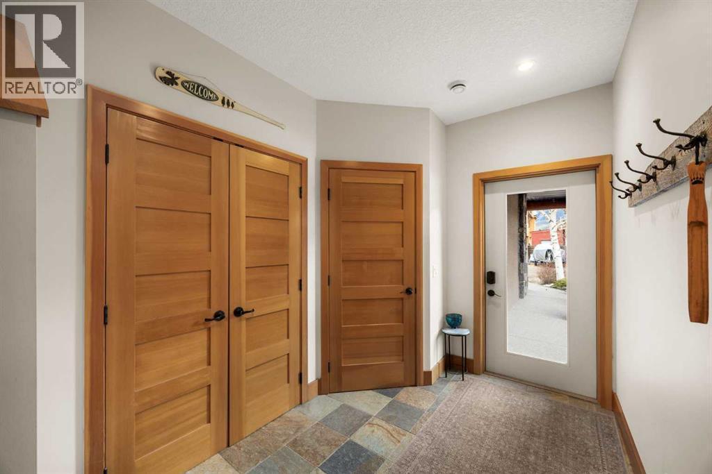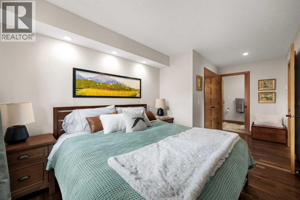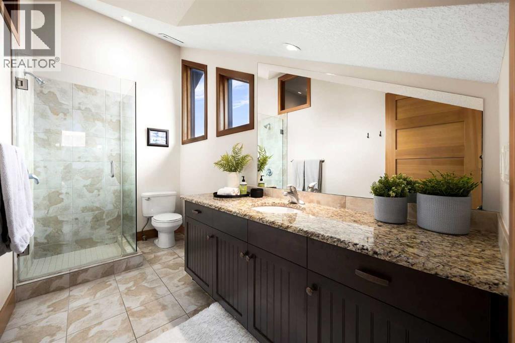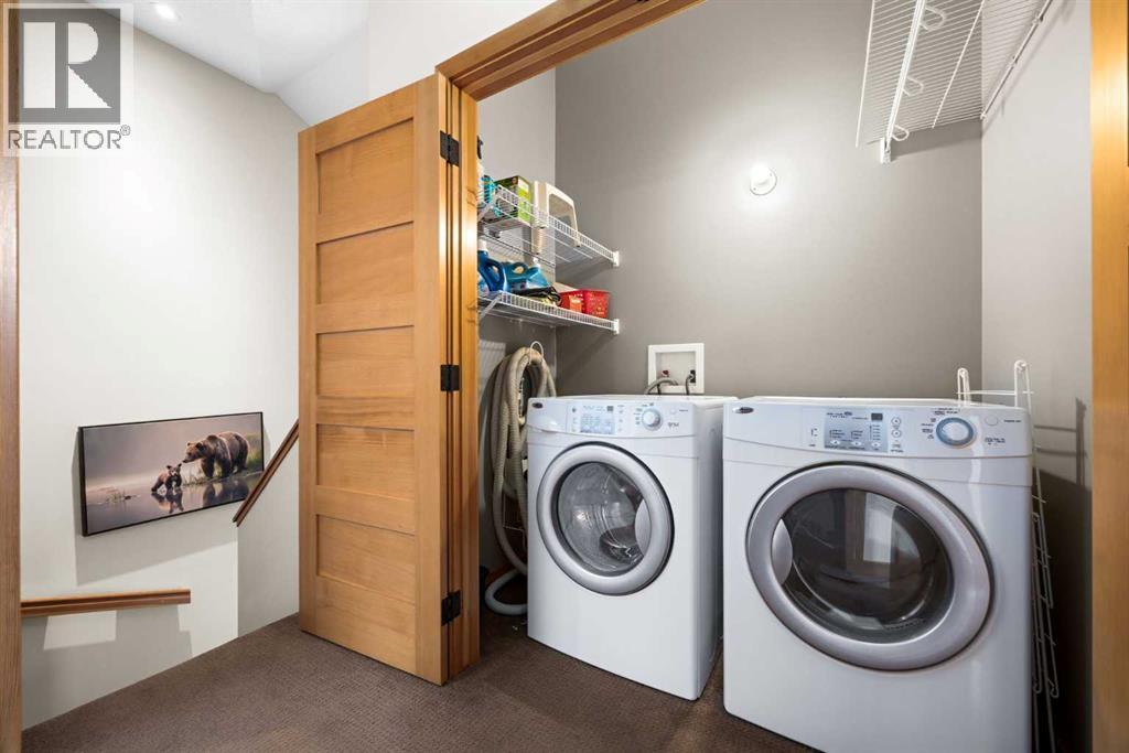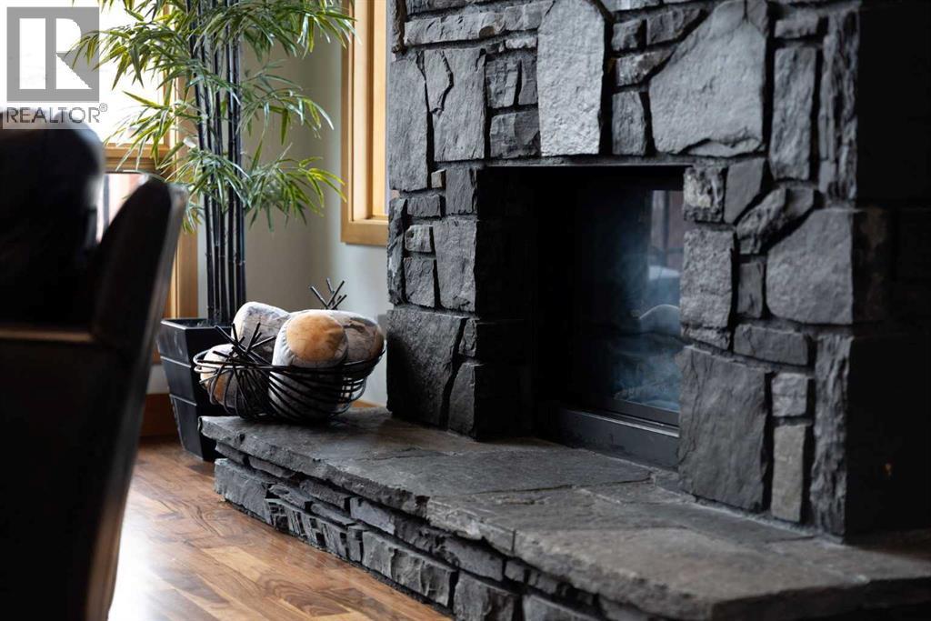 If you've been searching for the idyllic Canmore vacation property or a full-time mountain home that truly has it all, your search ends here. Nestled in the heart of South Canmore just a short walk from Main Street and the river valley, this 3-bedroom, 4-bathroom townhome is one of the finest examples of mountain residential craftsmanship you will find in the Bow Valley.Masterfully built by Fournier Construction, the interior is timeless and elegantly finished throughout. Rich Douglas Fir trim and doors, pristine Walnut hardwood floors, and a heated tile foyer set the tone from the moment you step inside. The dream living room commands your attention with soaring vaulted ceilings centered by a bold Rundle Stone fireplace, oversized view windows that frame the mountains in every direction, and a large wrap-around sundeck that invites you outside to take it all in.The kitchen is appointed with stainless steel appliances, a gas countertop range, and a built-in oven, bar fridge and wine bar, newly installed Quartz countertops, designed for those who love to cook and entertain. A convenient half bath rounds out the main level as well as a private master suite with ensuite. Upstairs, you will find two generous bedrooms each with their own ensuite, plus the added convenience of upper floor laundry. All bedrooms are complete with ensuites ensuring every guest has their own private retreat.With over 1,600 sq ft of meticulously maintained living space, a single car garage, and a spacious entryway, this property shows like new from top to bottom. You will not find a better maintained home in Canmore. Properties of this caliber, in this location, rarely come to market. Reasonable condo fees of $306/monthly and a healthy condo corporation round out your lifestyle investment in Canmore. (id:6769)
