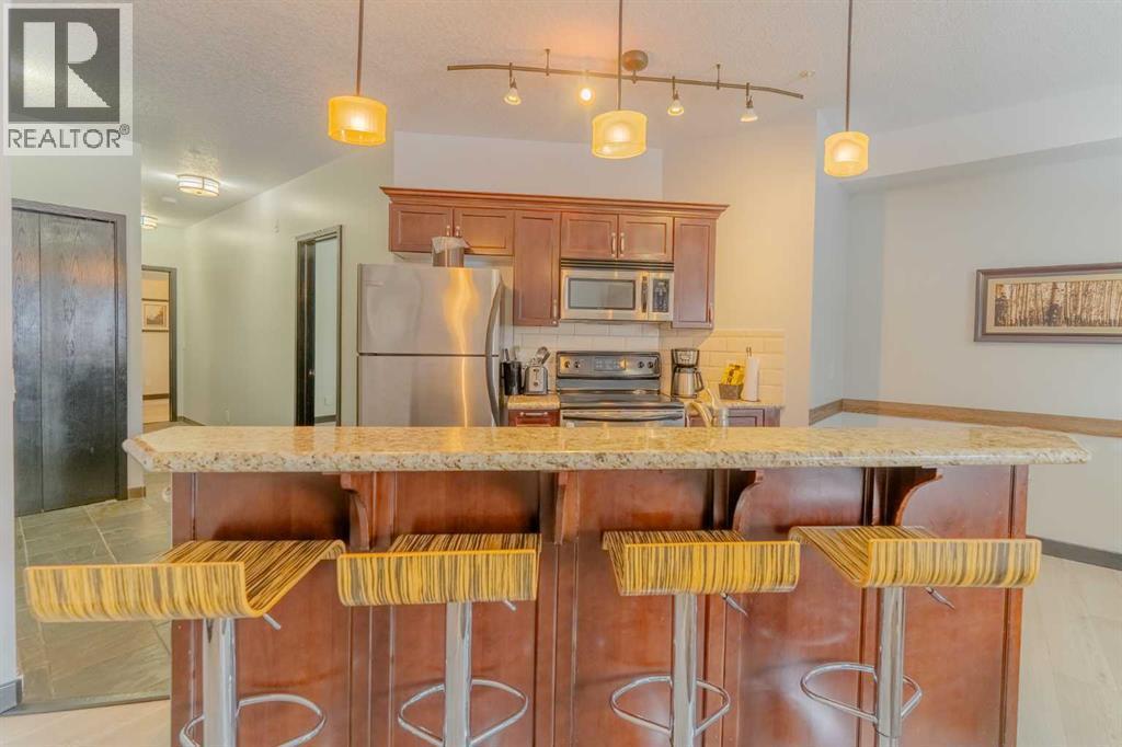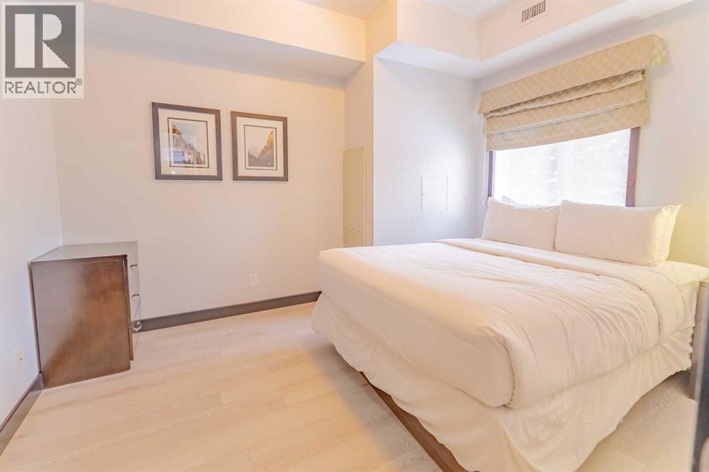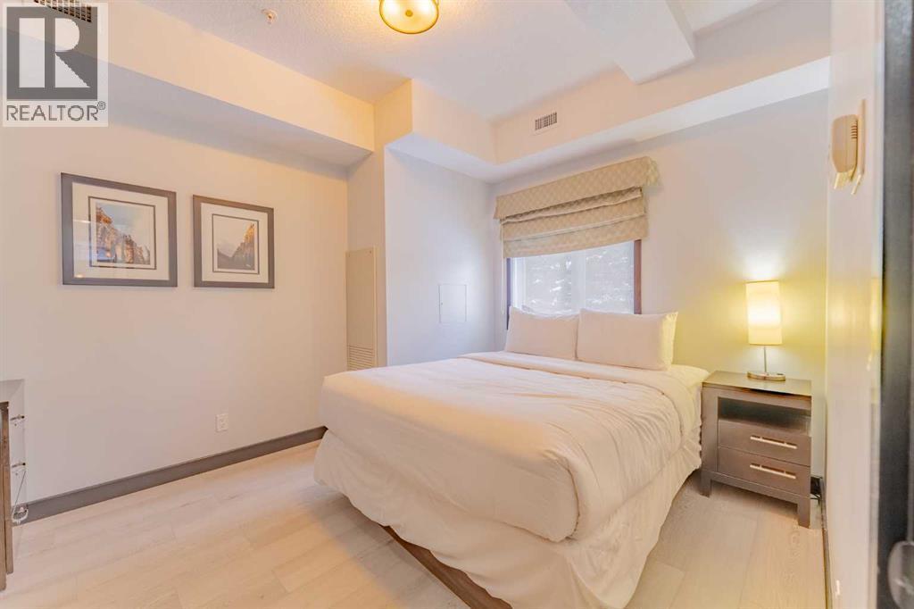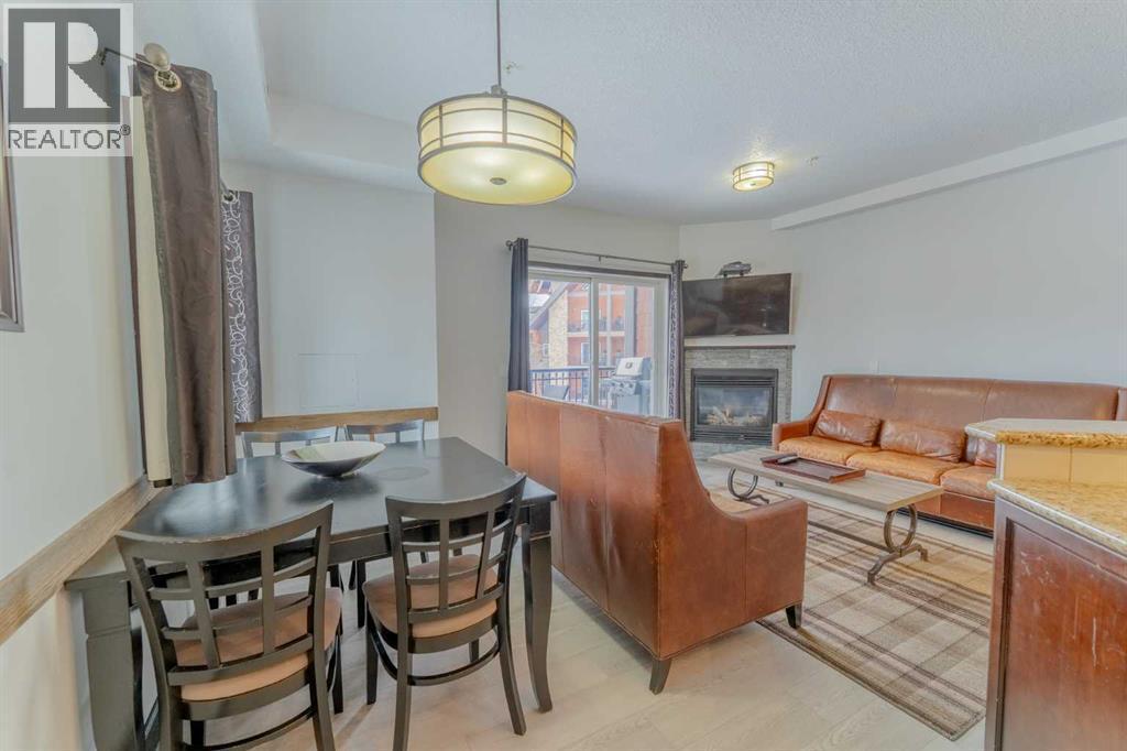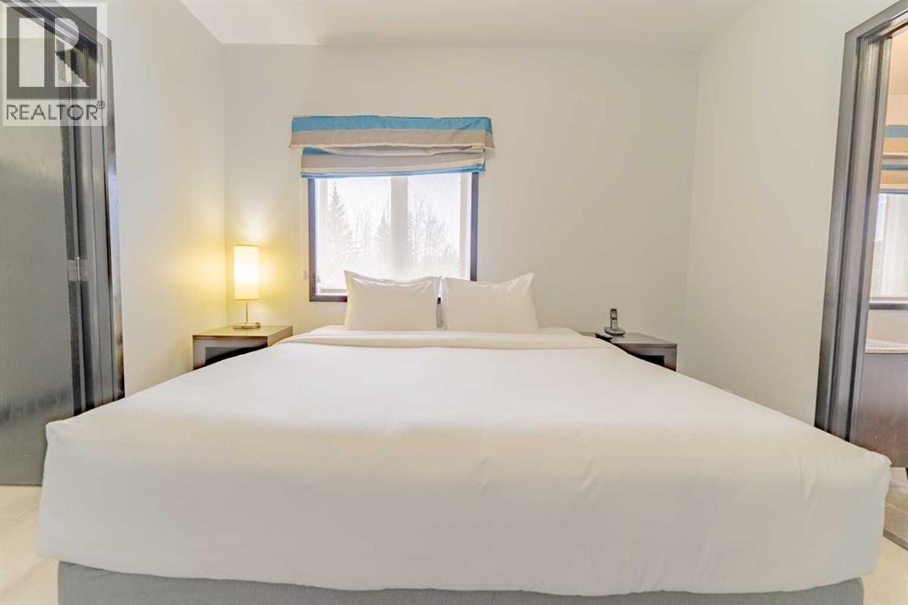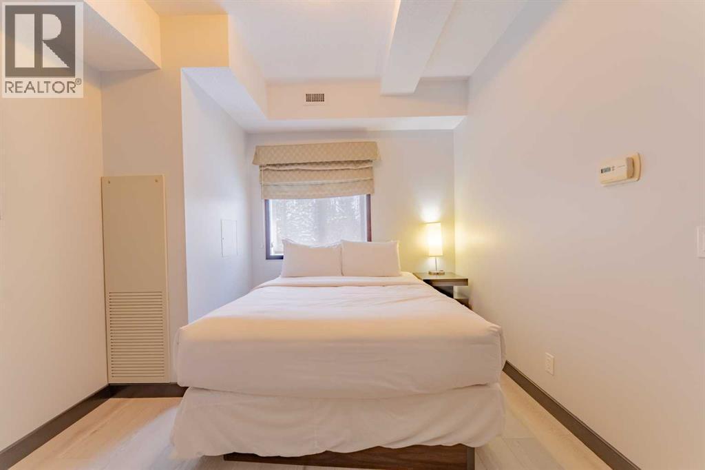 This corner unit at Grande Rockies puts you right in the middle of Canmore’s short-term rental market in an amenities-rich building and an ideal, walkable location. With 908 square feet, two bedrooms and two full bathrooms, it’s a perfect setup for guests and owners alike.The unit is fully turnkey, with a stocked kitchen, an open living space, a gas fireplace, and a private deck facing south and east. That corner exposure makes a noticeable difference. You get more natural light throughout the day and wide views toward the Three Sisters and surrounding ranges. The layout is practical and easy to maintain, which is key when you’re running a rental. This suite is currently part of the in-house rental program, but you have the option to switch to self-management or another provider depending on how hands-on you'd like to be.Grande Rockies has some of the best amenities in town, which helps keep it competitive year-round. Guests and owners have access to a large indoor pool with a waterslide, an indoor/outdoor hot tub, a spacious fitness centre, and an on-site restaurant. The common areas are well-kept and designed with short-term stays in mind.Location is another strong point. You’re a short walk to downtown shops, restaurants, and trails, and about 20 minutes from Banff. One titled underground parking stall is included. GST is included in the list price. Buyers should consult their accountant regarding eligibility for GST deferral. If you’ve been looking for a simple and smart way to enter Canmore’s short-term rental market, this is an excellent option with great positioning. (id:6769)