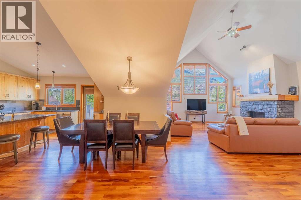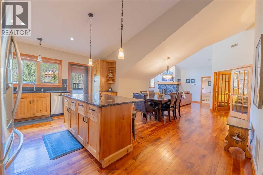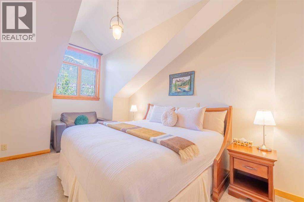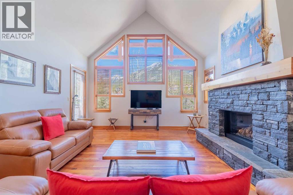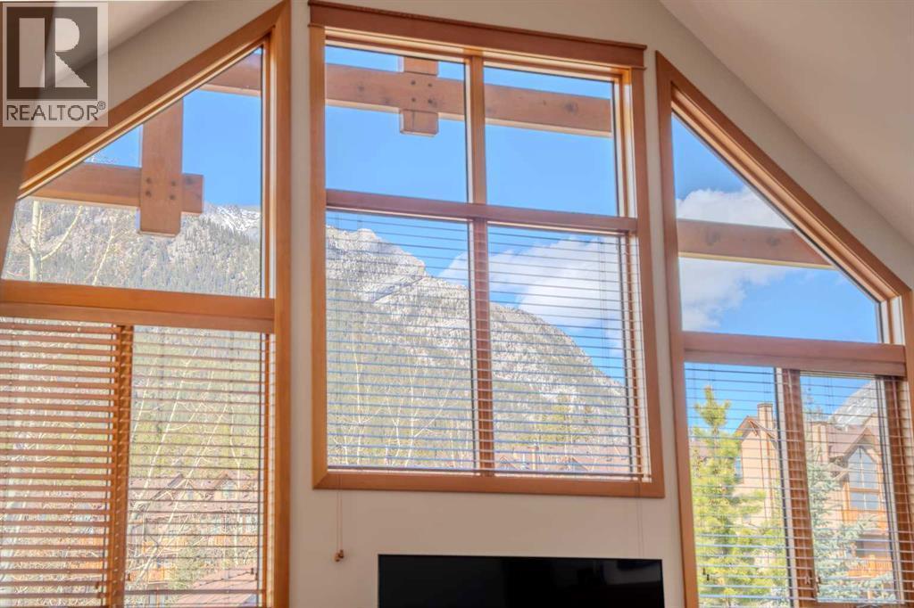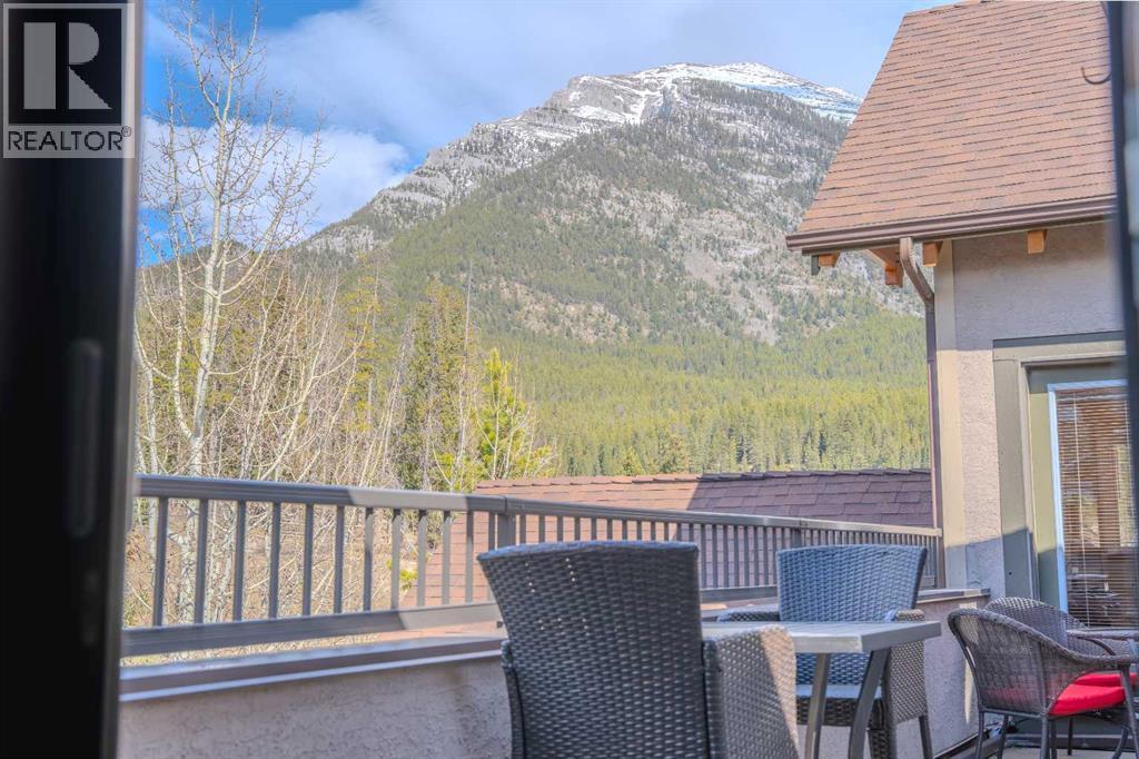 Penthouse living in Eagle Terrace, one of Canmore's most stunning neighbourhoods on Canmore's highly sought-after "sunny side." This expansive top-floor 2-bedroom plus den residence offers 1,595 square feet of single-level mountain living with sweeping, unobstructed northwest views of the Rockies. Filled with natural light throughout the day, the open-concept living and dining areas flow seamlessly to a spacious deck with three access points from the living room, kitchen, and primary bedroom, creating an effortless indoor-outdoor lifestyle rare at this level. An ideal place for your morning coffee or sunset viewing, with the Rockies as your backdrop from every angle. The thoughtfully designed layout features a spacious primary suite with mountain views, a well-appointed second bedroom, and a versatile den ideal for a home office or guest space. The kitchen is functional and well-positioned within the open-plan layout, which lends itself well to hosting and to those who love to cook.Where this property truly stands apart is in the details that matter most to mountain living. You'll find two oversized storage rooms, one conveniently located on the top floor and a second in the underground parkade. These provide exceptional space for gear, bikes, skis, and everything the Rockies lifestyle demands. Two titled underground parking stalls round out a package that is hard to find at this price point in Canmore.Eagle Terrace is one of those neighbourhoods that residents rarely leave. Steps from the Iron Goat, the Eagle Terrace field and playground, and Cougar Creek, with direct access to Canmore's infinite trail network right from your doorstep. Downtown Canmore is minutes away, yet the setting feels private, elevated, and immersed in the natural surroundings that make this valley so special.The building is well managed. Parkade is wired for EV chargers. This is a lock-and-leave mountain home done right, a rare top-floor opportunity in one of Canmore's most enduring and desirable communities. (id:6769)