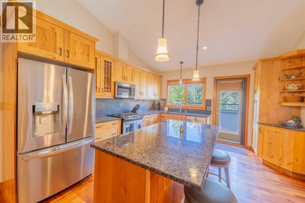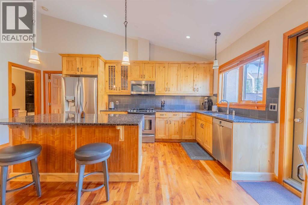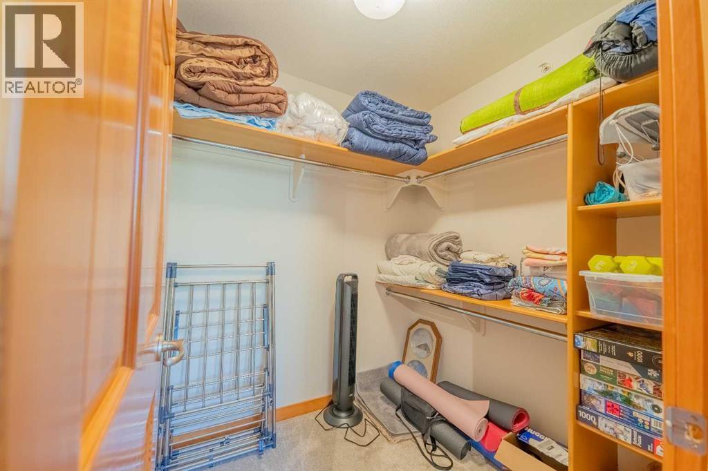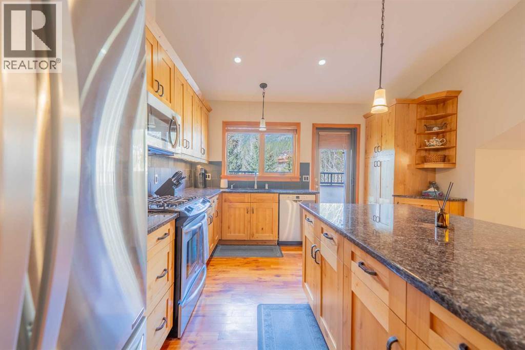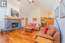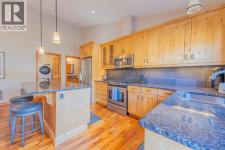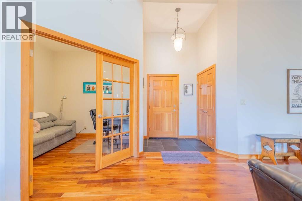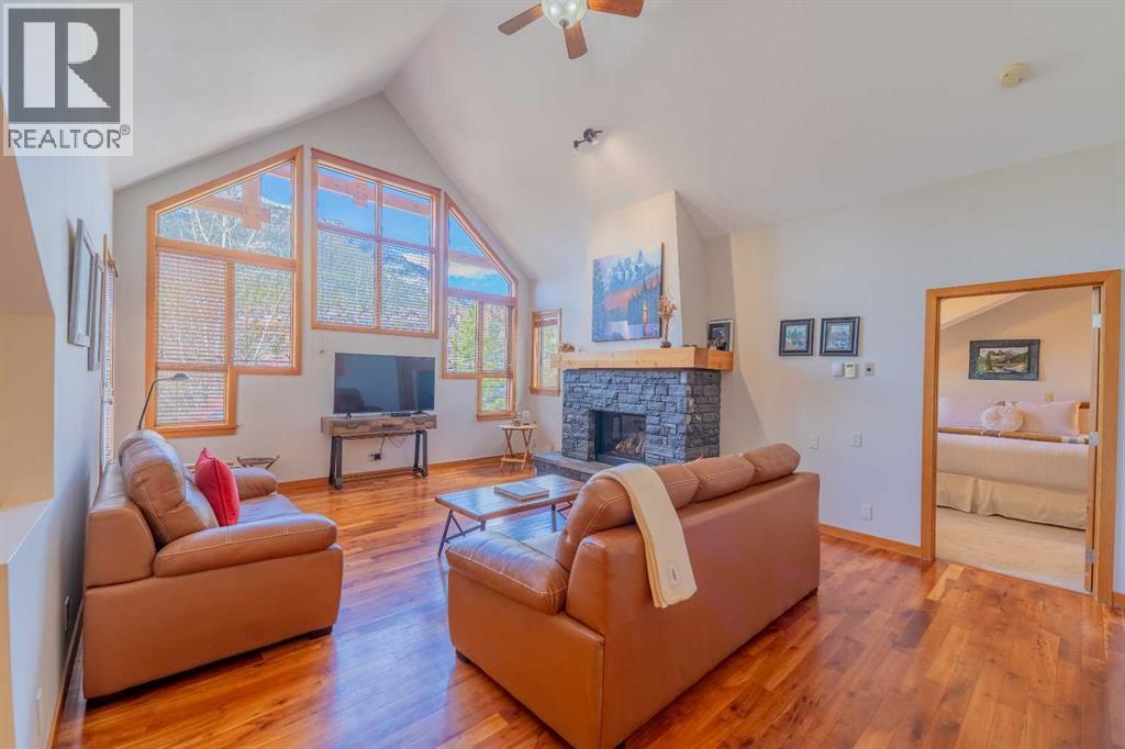 Penthouse living in Eagle Terrace, one of Canmore's most stunning neighbourhoods on Canmore's highly sought-after "sunny side." This expansive top-floor 2-bedroom plus den residence offers 1,595 square feet of single-level mountain living with sweeping, unobstructed northwest views of the Rockies. Filled with natural light throughout the day, the open-concept living and dining areas flow seamlessly to a spacious deck with three access points from the living room, kitchen, and primary bedroom, creating an effortless indoor-outdoor lifestyle rare at this level. An ideal place for your morning coffee or sunset viewing, with the Rockies as your backdrop from every angle. The thoughtfully designed layout features a spacious primary suite with mountain views, a well-appointed second bedroom, and a versatile den ideal for a home office or guest space. The kitchen is functional and well-positioned within the open-plan layout, which lends itself well to hosting and to those who love to cook.Where this property truly stands apart is in the details that matter most to mountain living. You'll find two oversized storage rooms, one conveniently located on the top floor and a second in the underground parkade. These provide exceptional space for gear, bikes, skis, and everything the Rockies lifestyle demands. Two titled underground parking stalls round out a package that is hard to find at this price point in Canmore.Eagle Terrace is one of those neighbourhoods that residents rarely leave. Steps from the Iron Goat, the Eagle Terrace field and playground, and Cougar Creek, with direct access to Canmore's infinite trail network right from your doorstep. Downtown Canmore is minutes away, yet the setting feels private, elevated, and immersed in the natural surroundings that make this valley so special.The building is well managed. Parkade is wired for EV chargers. This is a lock-and-leave mountain home done right, a rare top-floor opportunity in one of Canmore's most enduring and desirable communities. (id:6769)