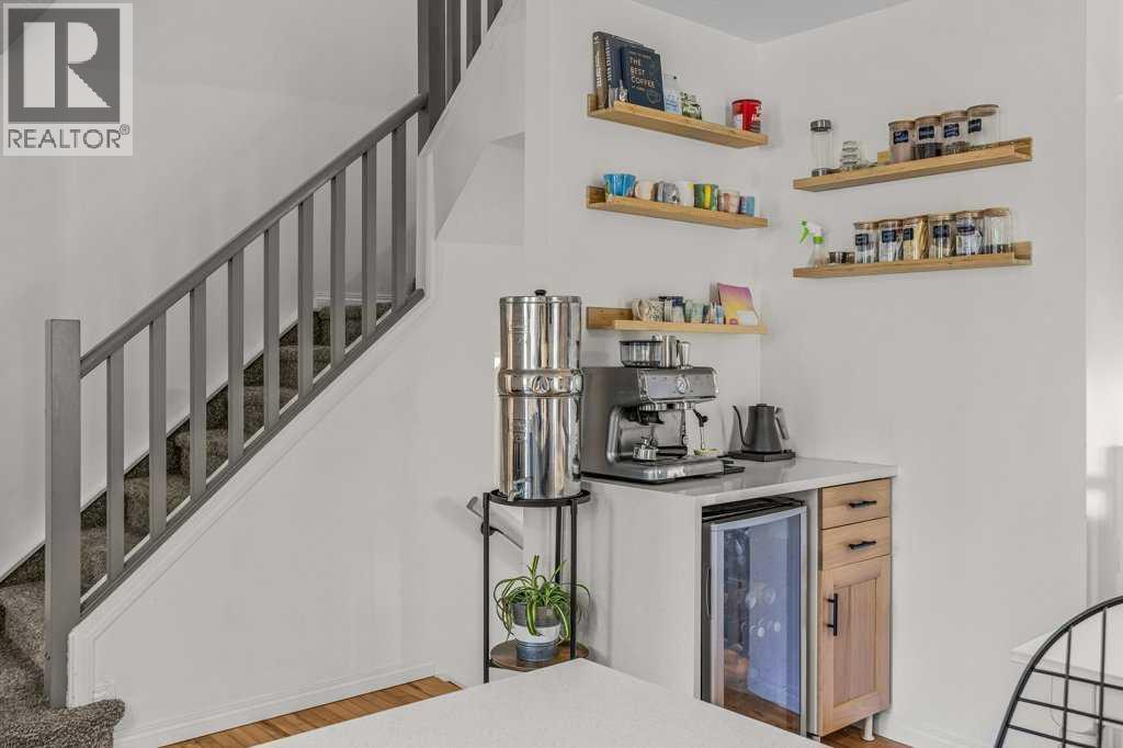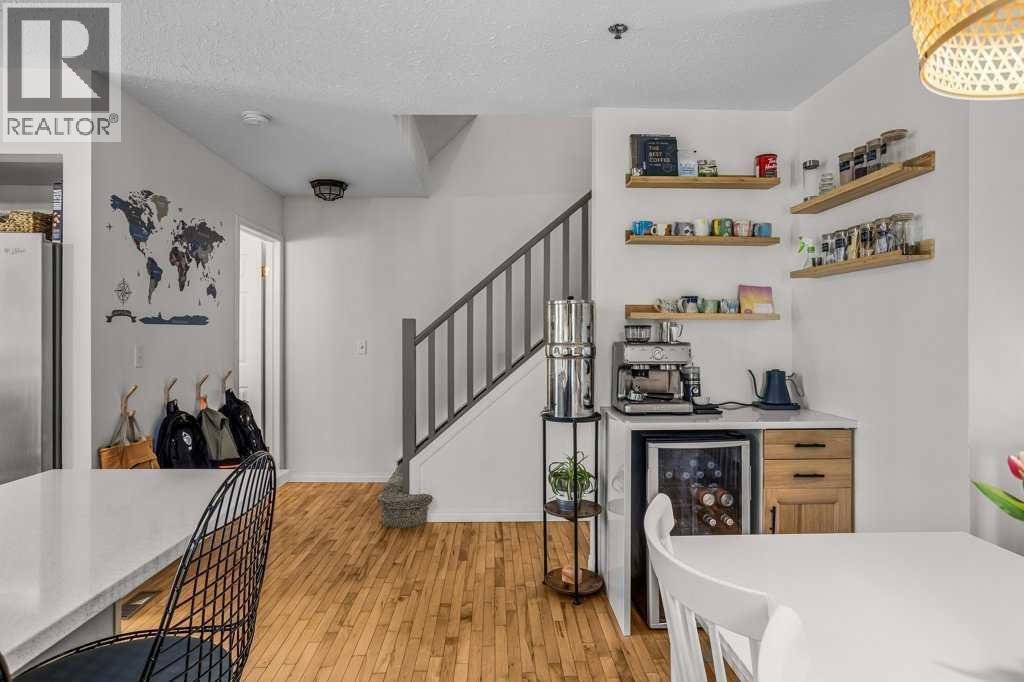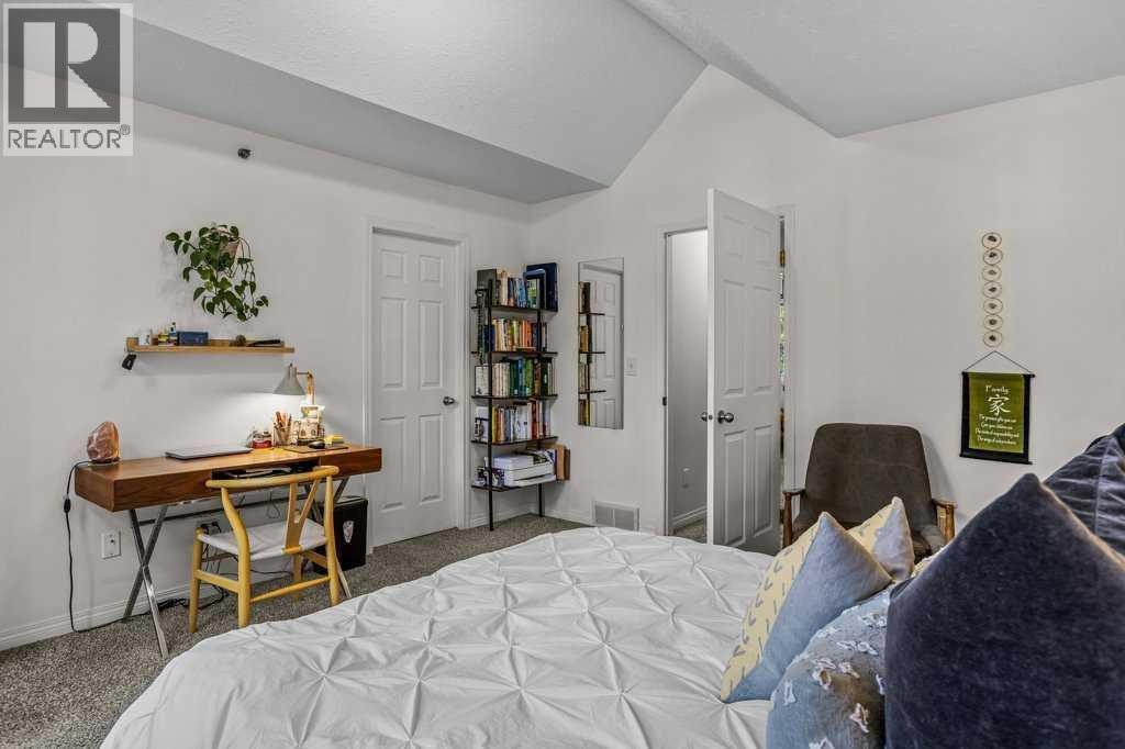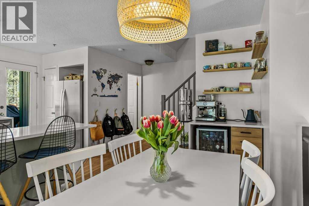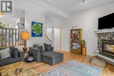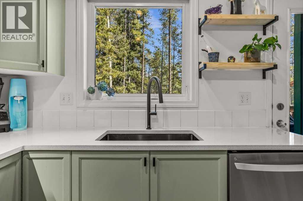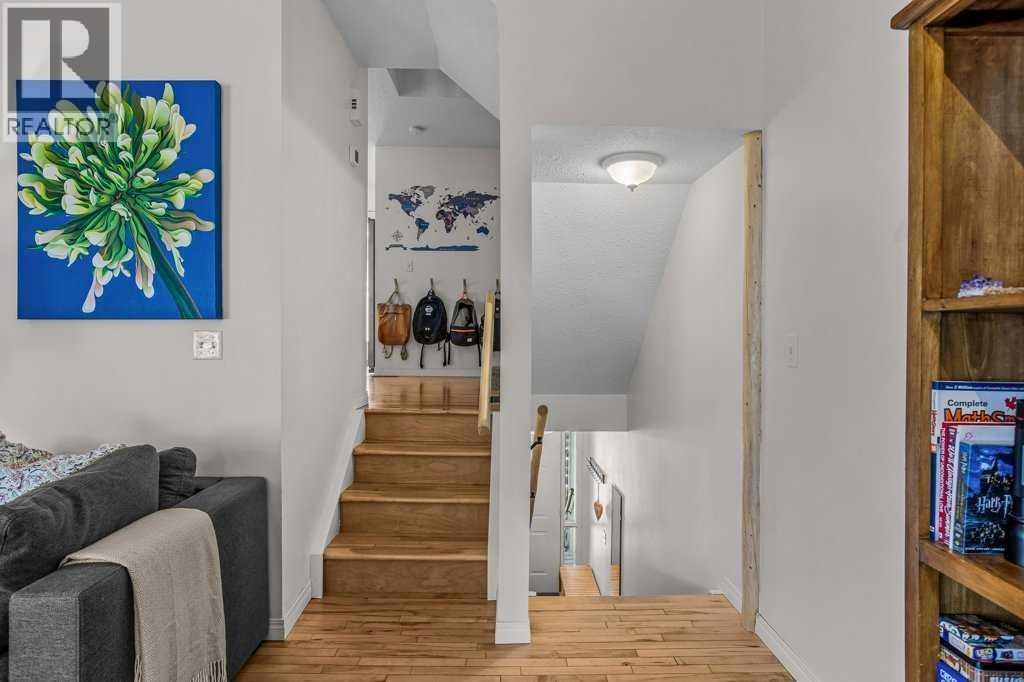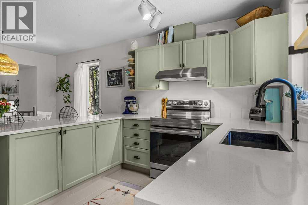 Situated in Rundle Mountain Estates, this well-maintained end-unit townhouse offers a serene forest setting and a quiet, private mountain retreat. With three bedrooms on the upper level and multiple living areas across three levels, the layout is ideal for families or a weekend escape. The bright, open-concept main floor features a functional kitchen, spacious dining area, and inviting living room with a cozy gas fireplace, while large windows bring in natural light and views of the surrounding trees. A two-piece bathroom completes this level. Upstairs, the primary suite includes a walk-in closet, ensuite, and private balcony, alongside two additional bedrooms and a full bath. The lower level provides flexible space for a family room, media area, or extra bedroom, plus laundry and storage. Complete with multiple outdoor spaces, an oversized single garage, and close proximity to Quarry Lake, the Nordic Centre, and downtown amenities. (id:6769)